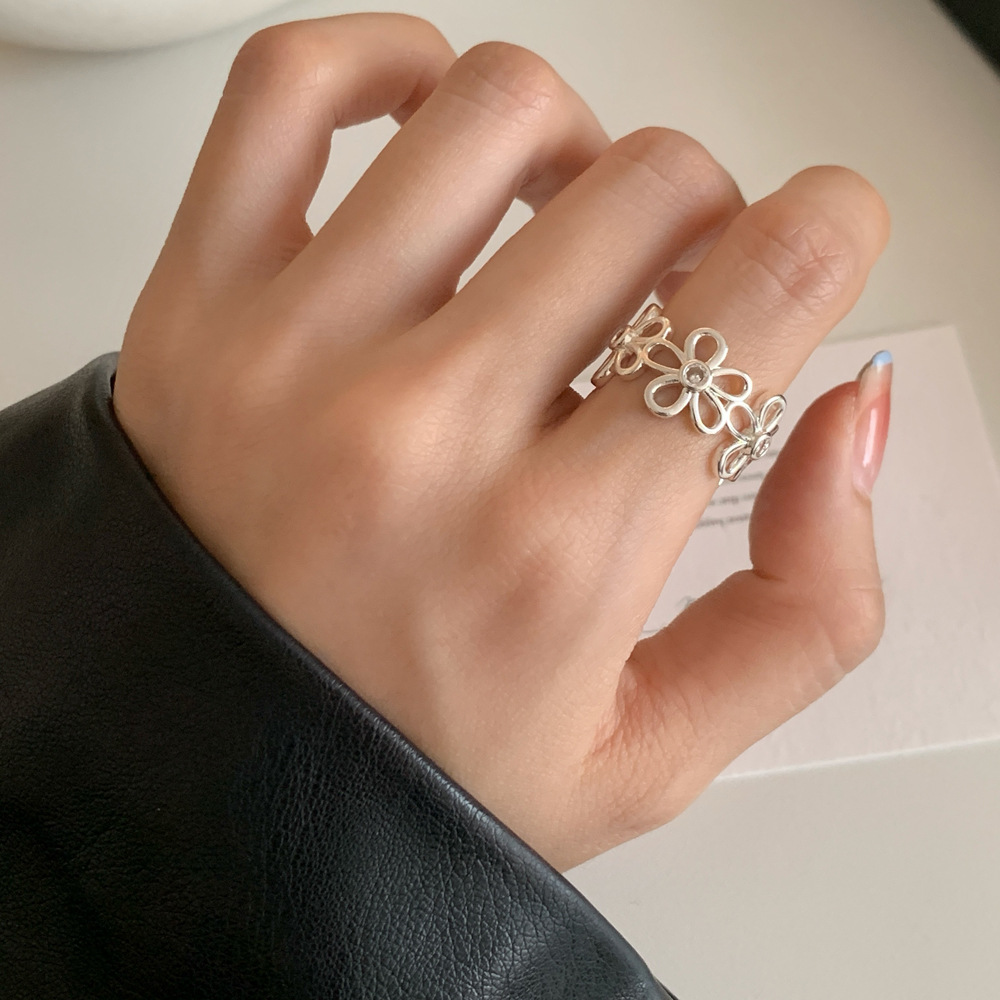 Light Luxury Simple High-end Elegant Metal Hollow Flower Ring Niche Design Commuter All-match Hand Jewelry for Women