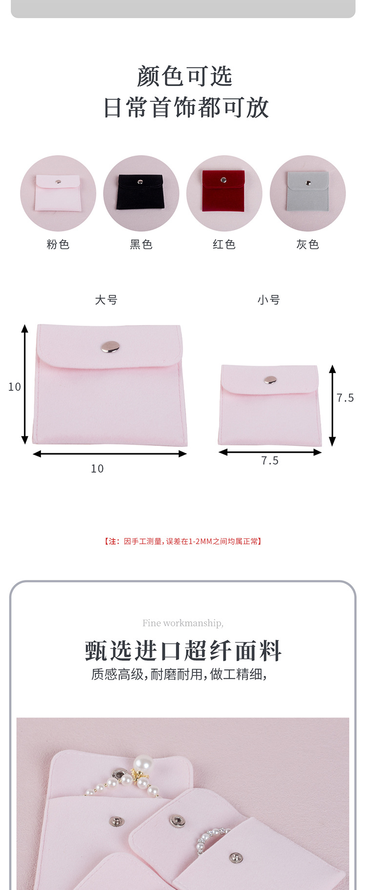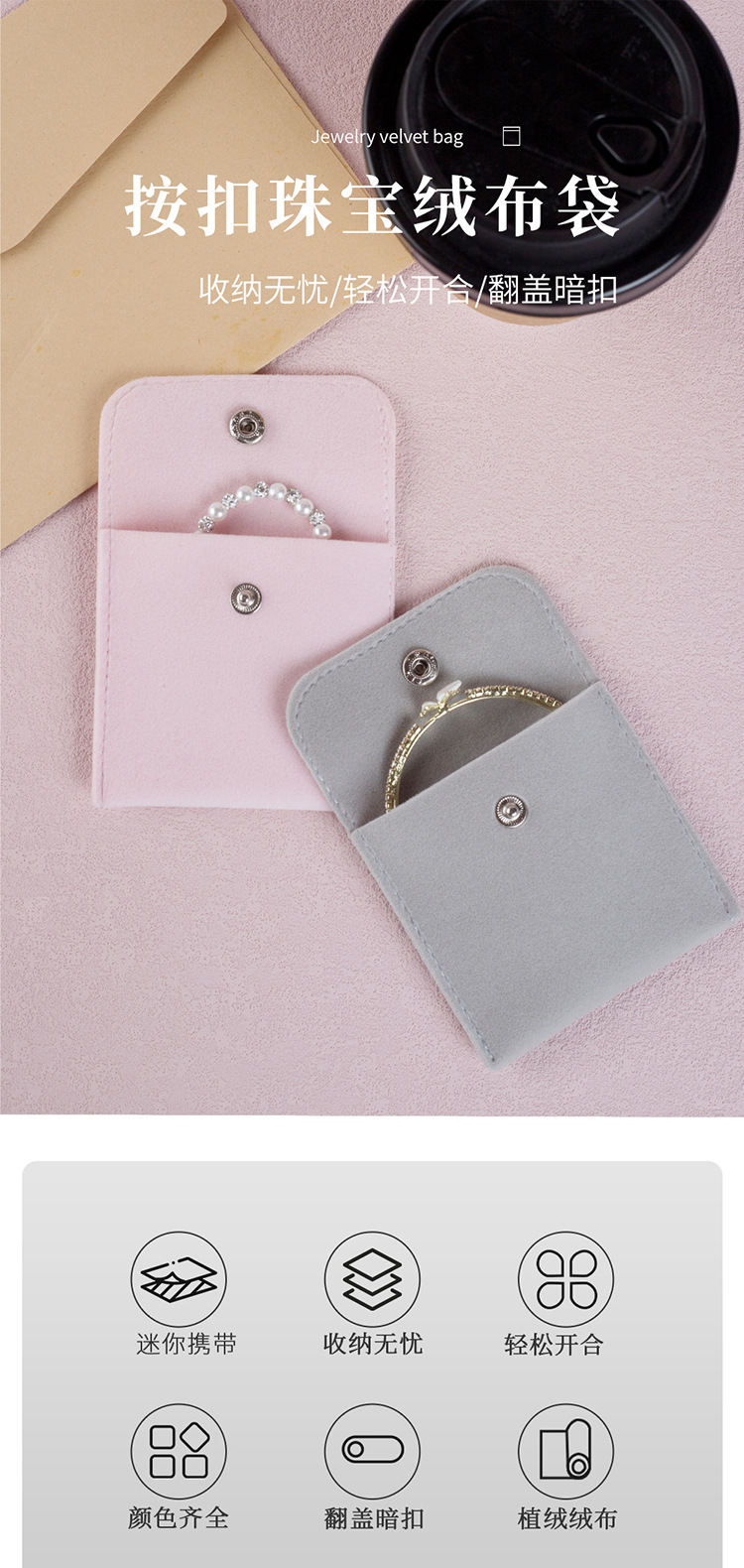 High-end Jewelry Storage Bag Snap Velvet Bag Necklace Ring Jewelry Bag Right Angle Flip Jewelry Packaging Cloth Bag