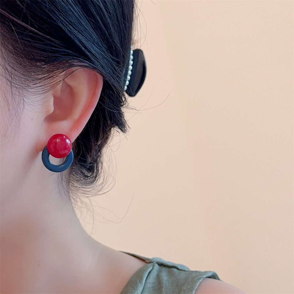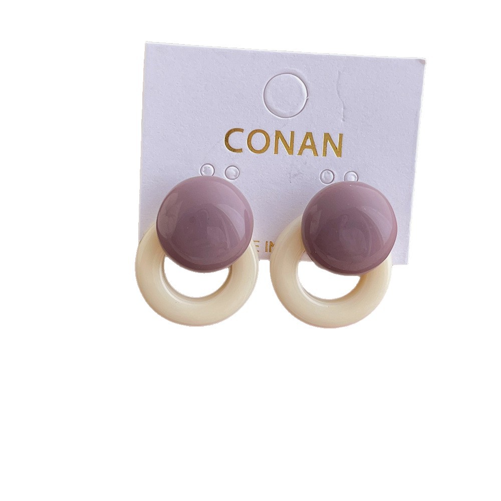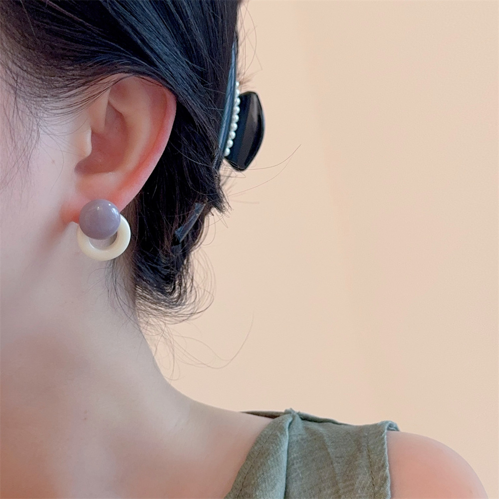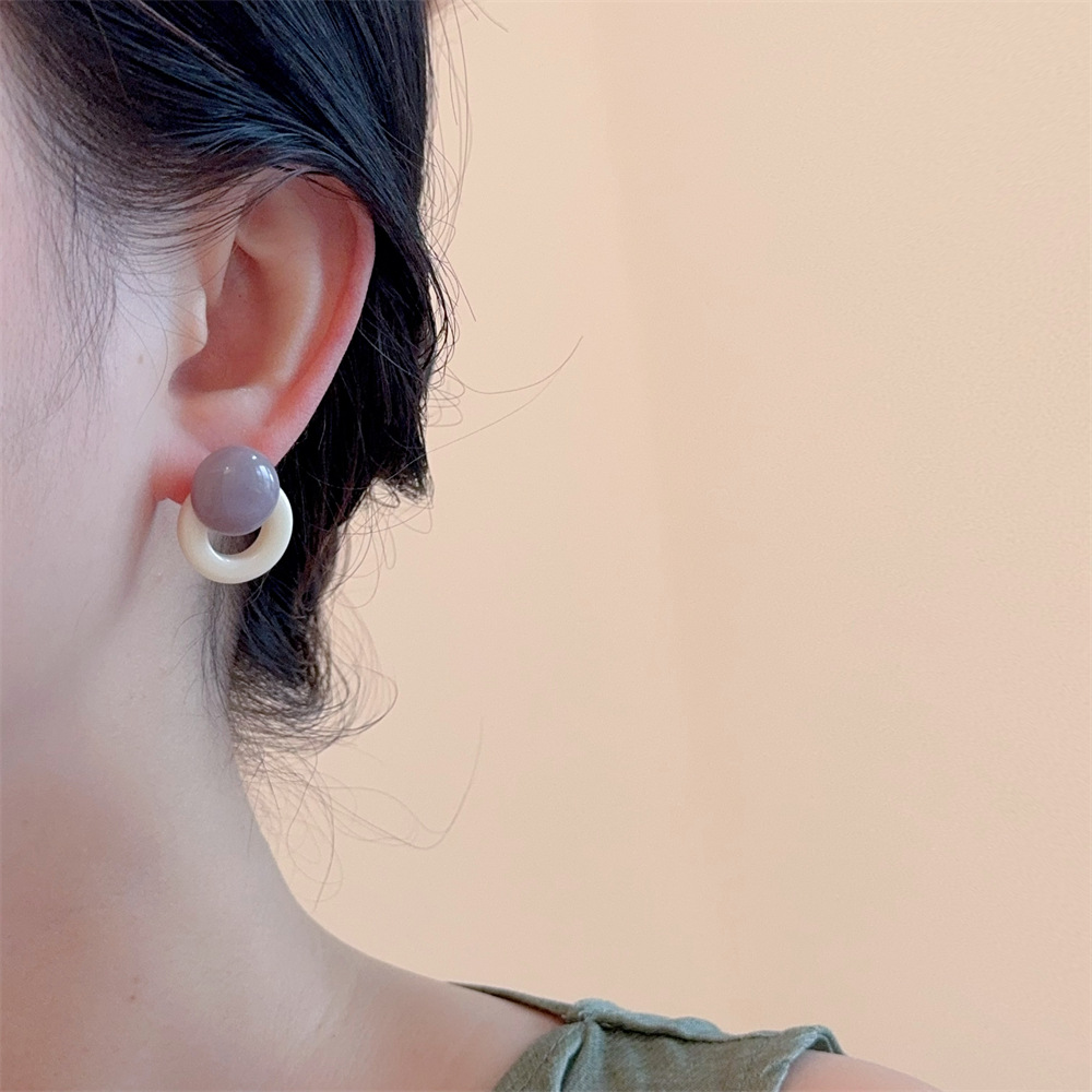 Korean Style Simple Design Resin Contrasting Color Earrings Feminine Accessible Luxury Geometric Round Hoop Earrings Earrings
