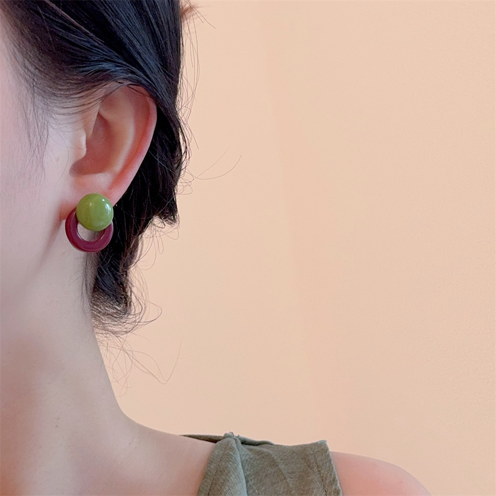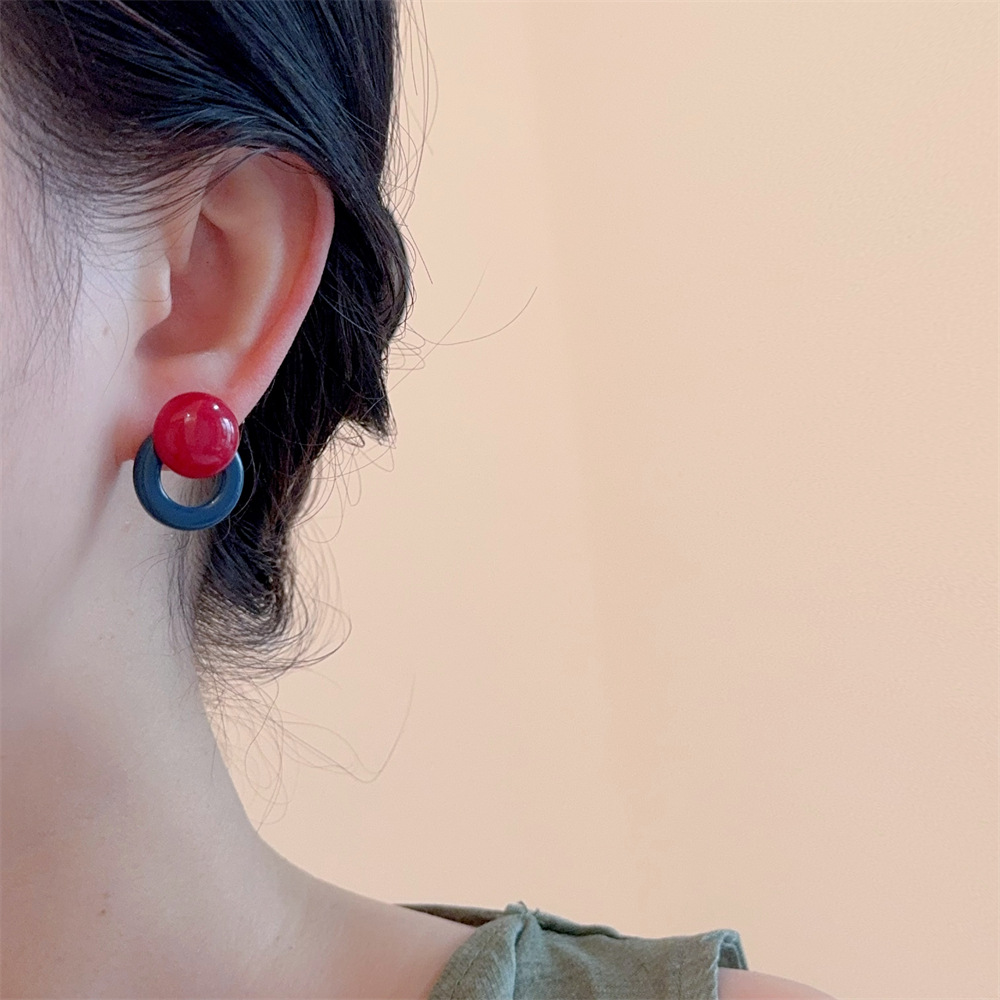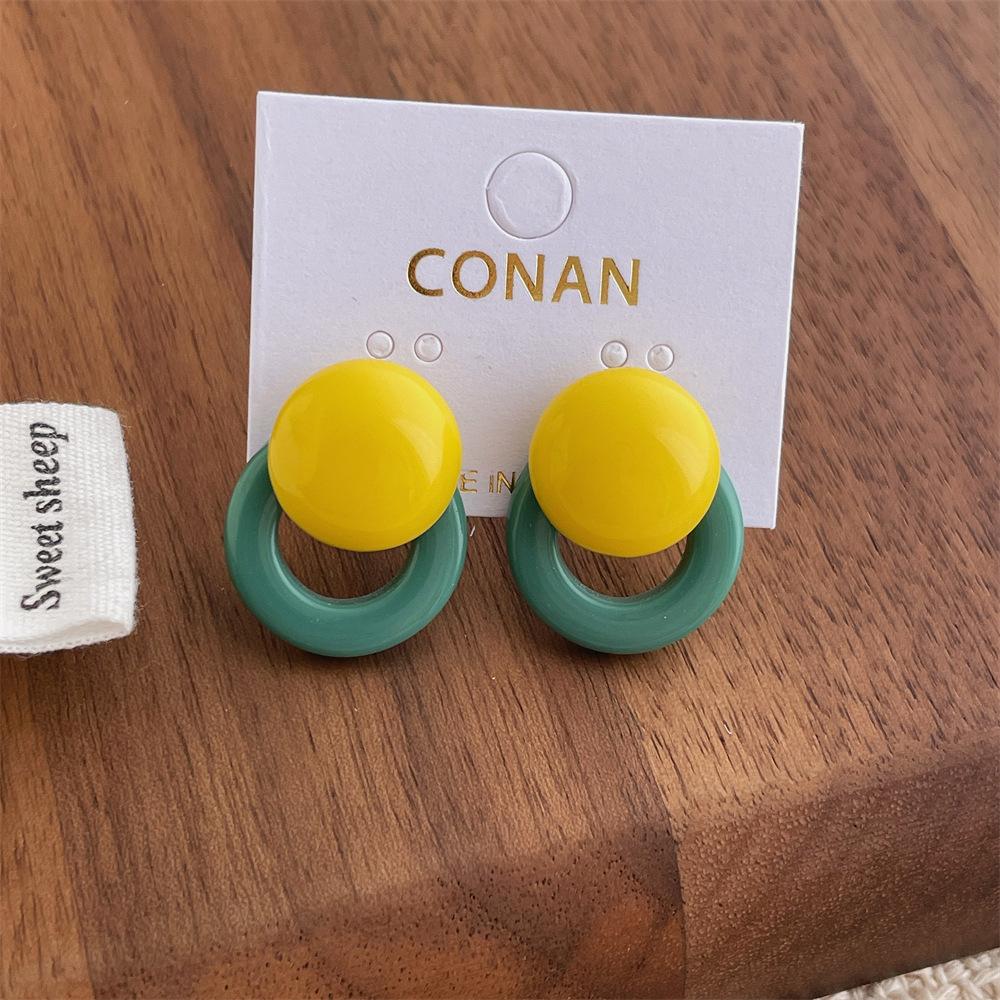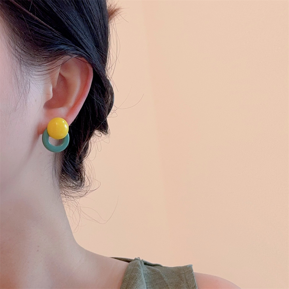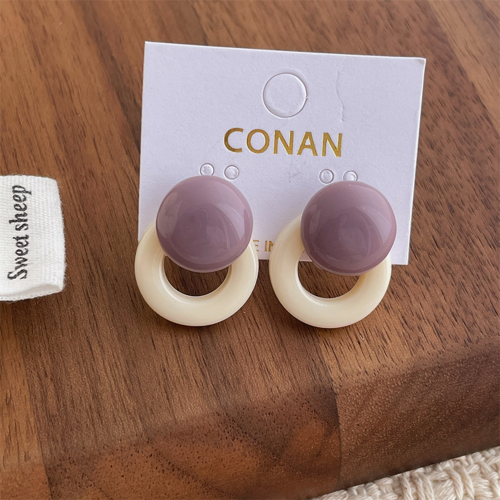 Korean Style Simple Design Resin Contrasting Color Earrings Feminine Accessible Luxury Geometric Round Hoop Earrings Earrings