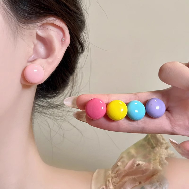 Dopamine Color Macaroon Candy Color Ball Earrings Women's Simple All-match Personality Elegant Exquisite Earrings Earrings