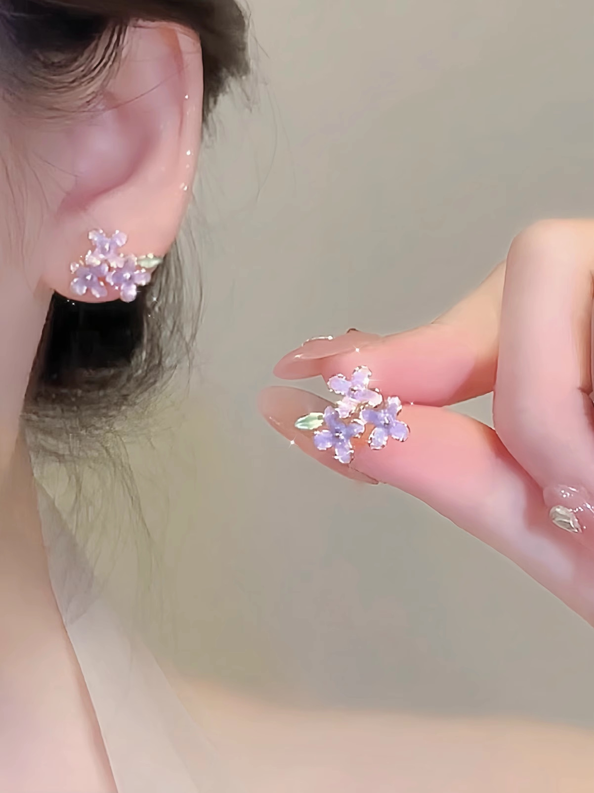 Exquisite Oil Dropping Flower 925 Silver Earrings Female Temperament Gentle Ear-less Mosquito Incense Plate Ear Clip