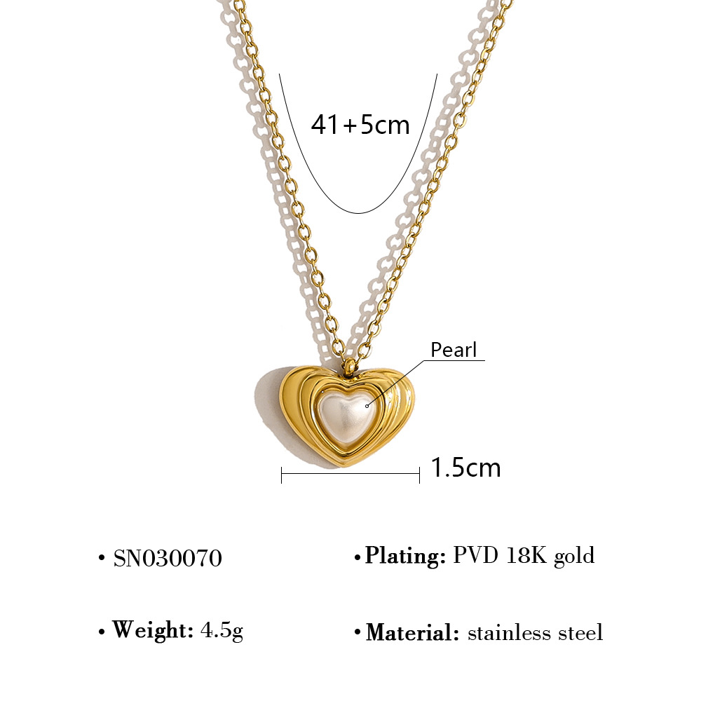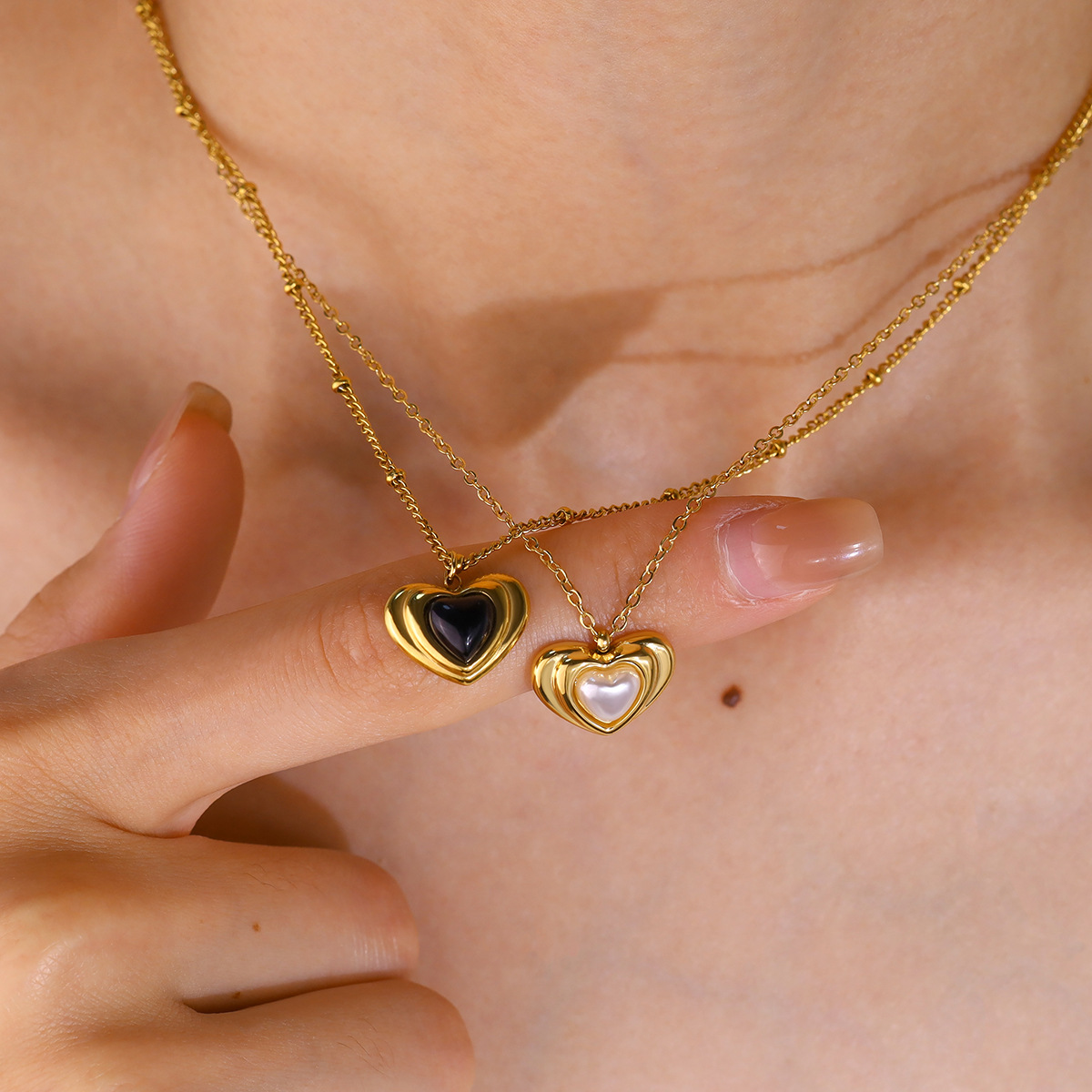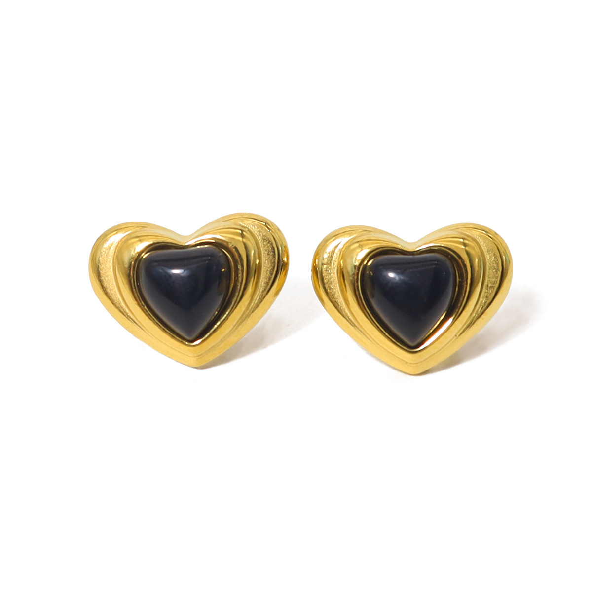 French Retro Heart Shape Inlaid Black Stone Necklace Earrings Set Titanium Steel Plated Real Gold Non-Fading Clavicle Chain for Women