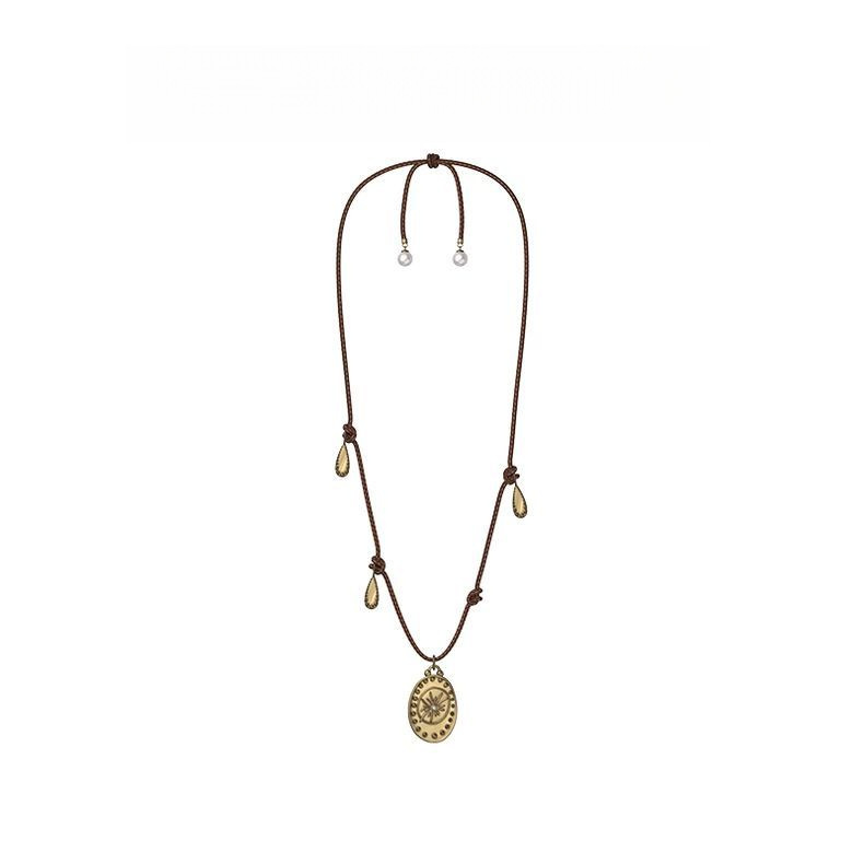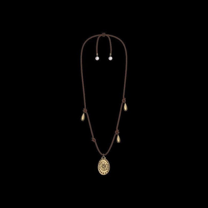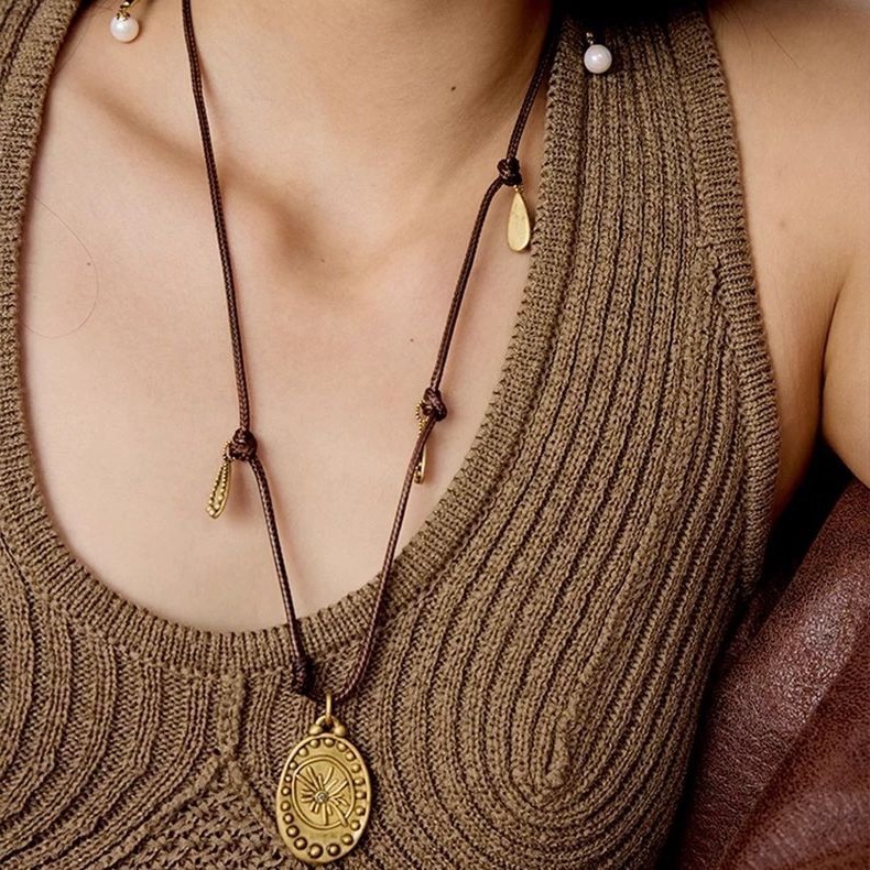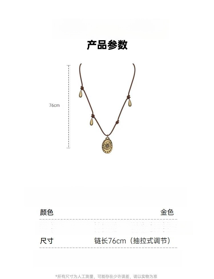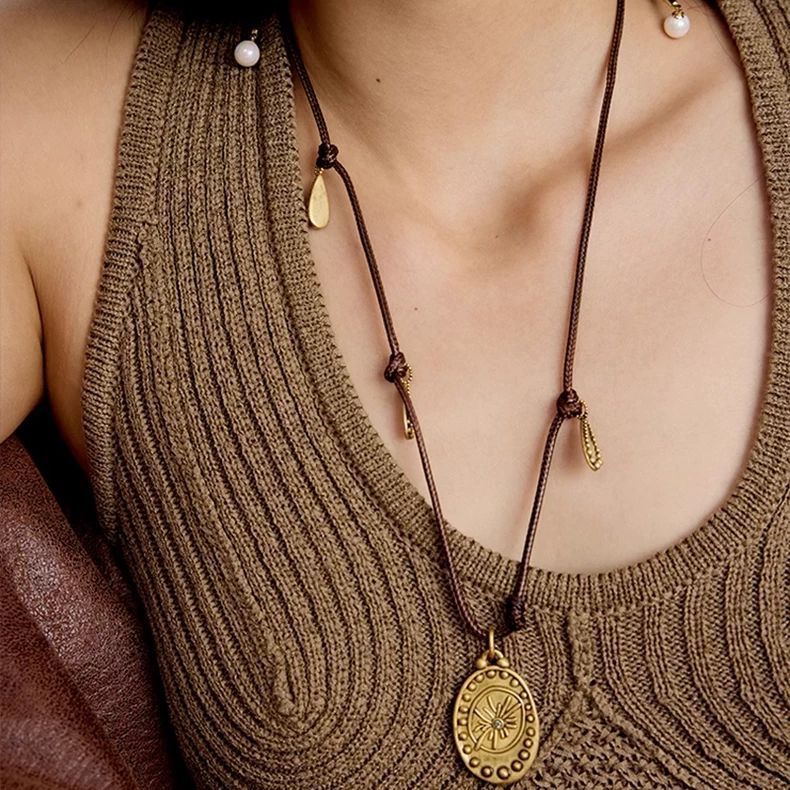 Bohemian Stylish Vintage Gold Versatile Sweater Chain Necklace with Round Pendant
