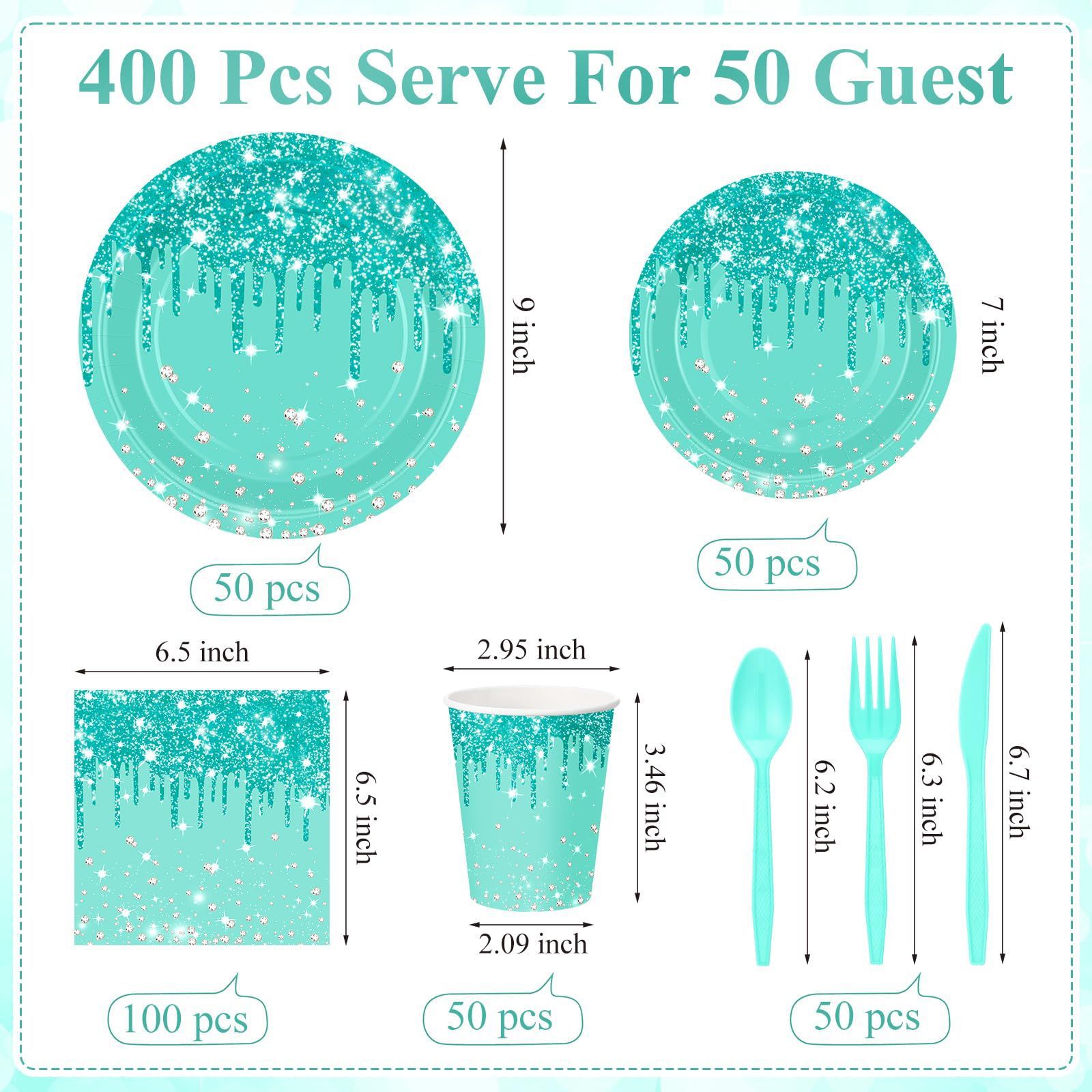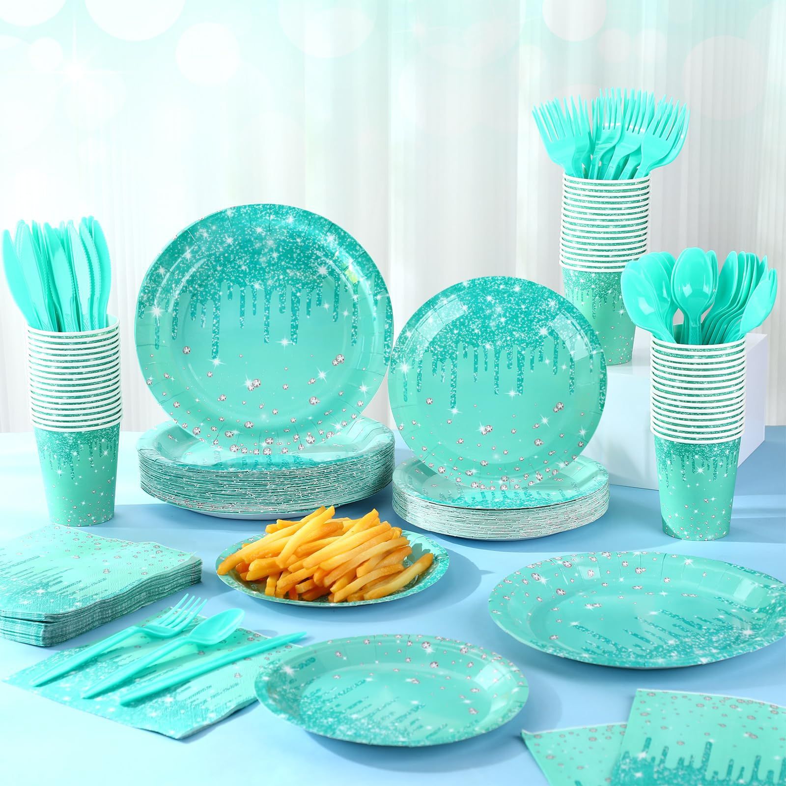 Cross-Border Disposable Party Paper Plates Blue-Green Glitter Diamond Ladies Birthday Disposable Party Tableware Set