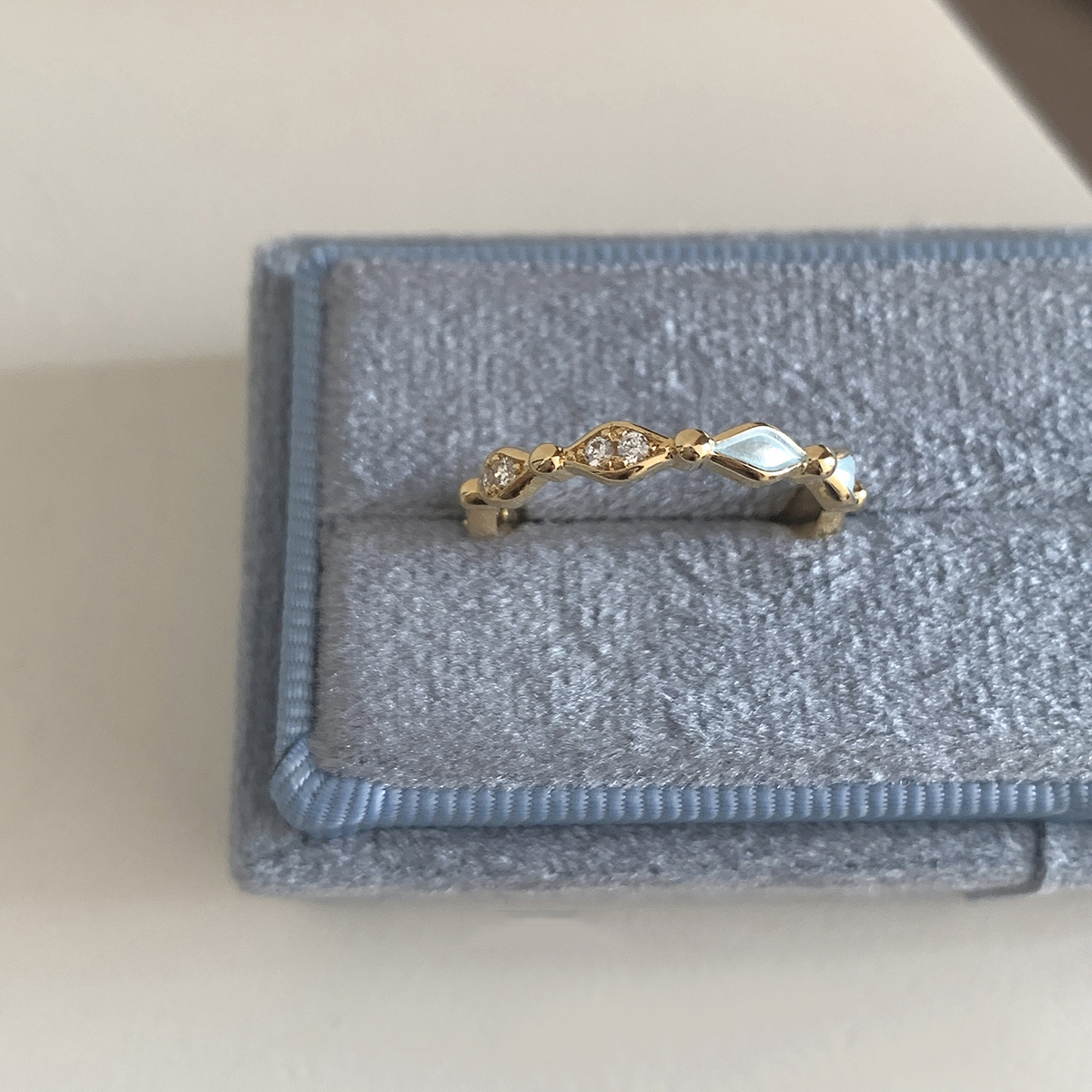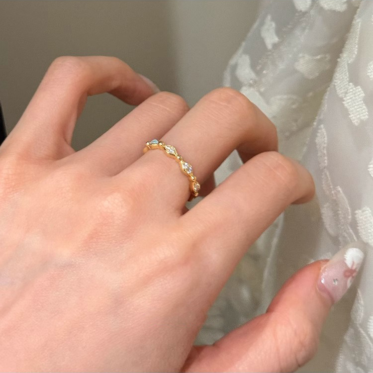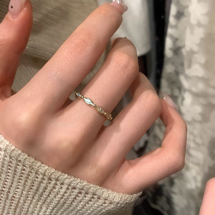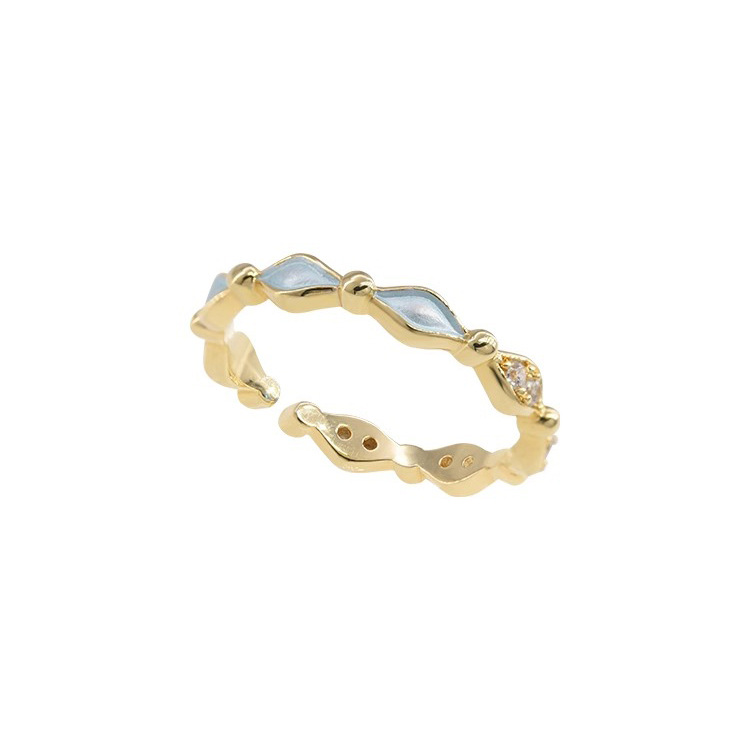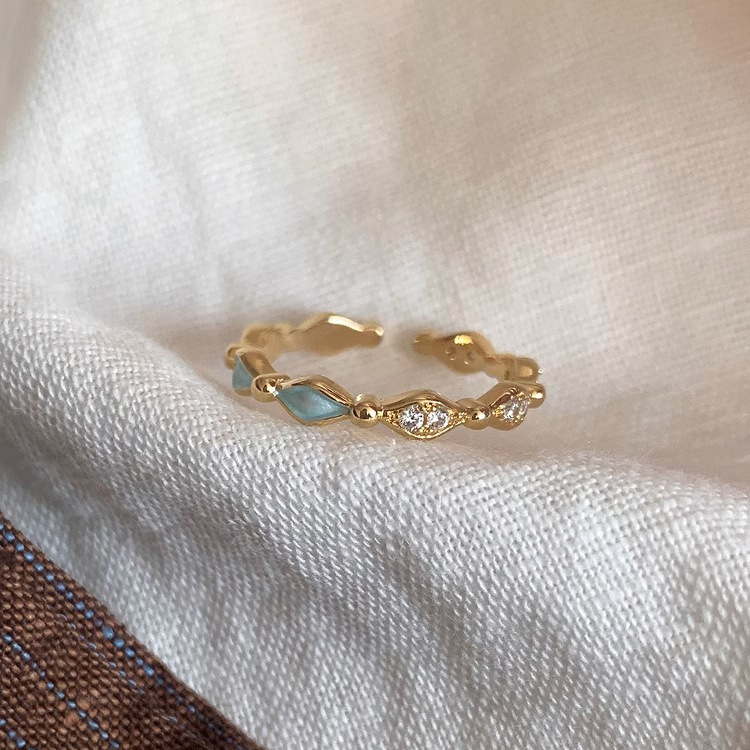 New Chinese Style Light Blue Drip Glaze Diamond Ring for Women Retro Light Luxury High-End Index Finger Ring Opening Adjustable New Hand Jewelry
