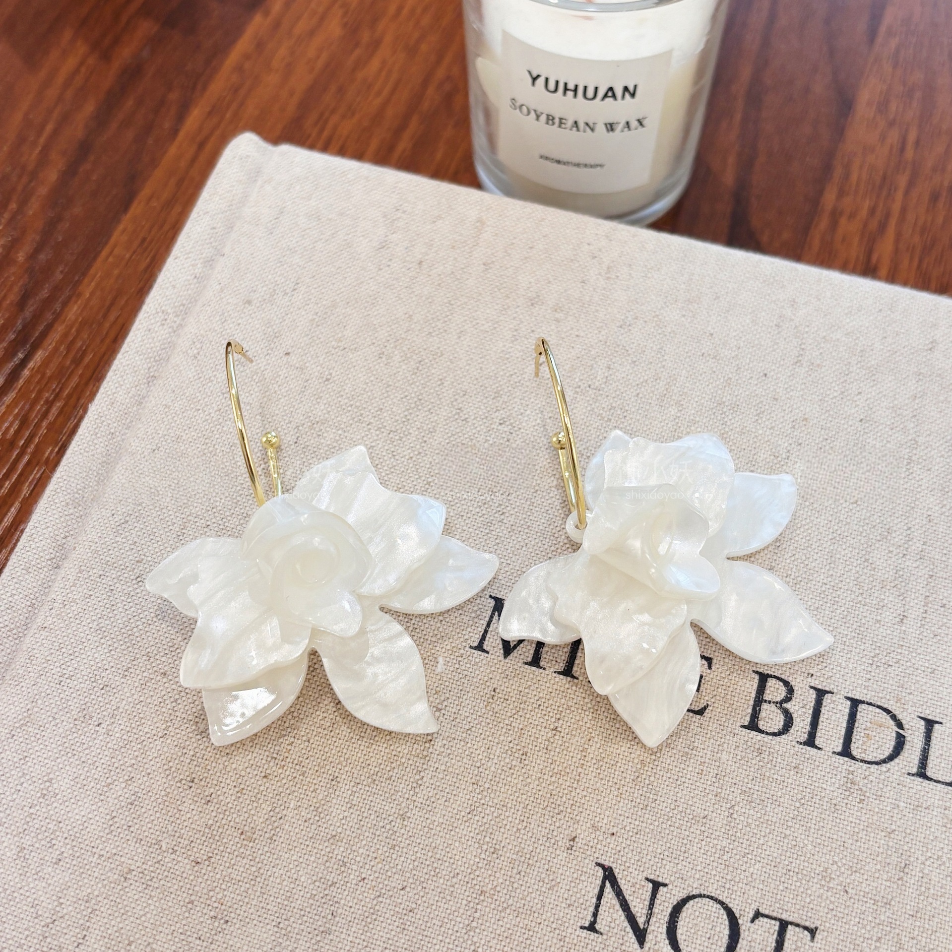 Acetate Shell Flower Earrings for Women 2025 New French Exaggerated Petal Earrings Niche High-End Elegant Earrings