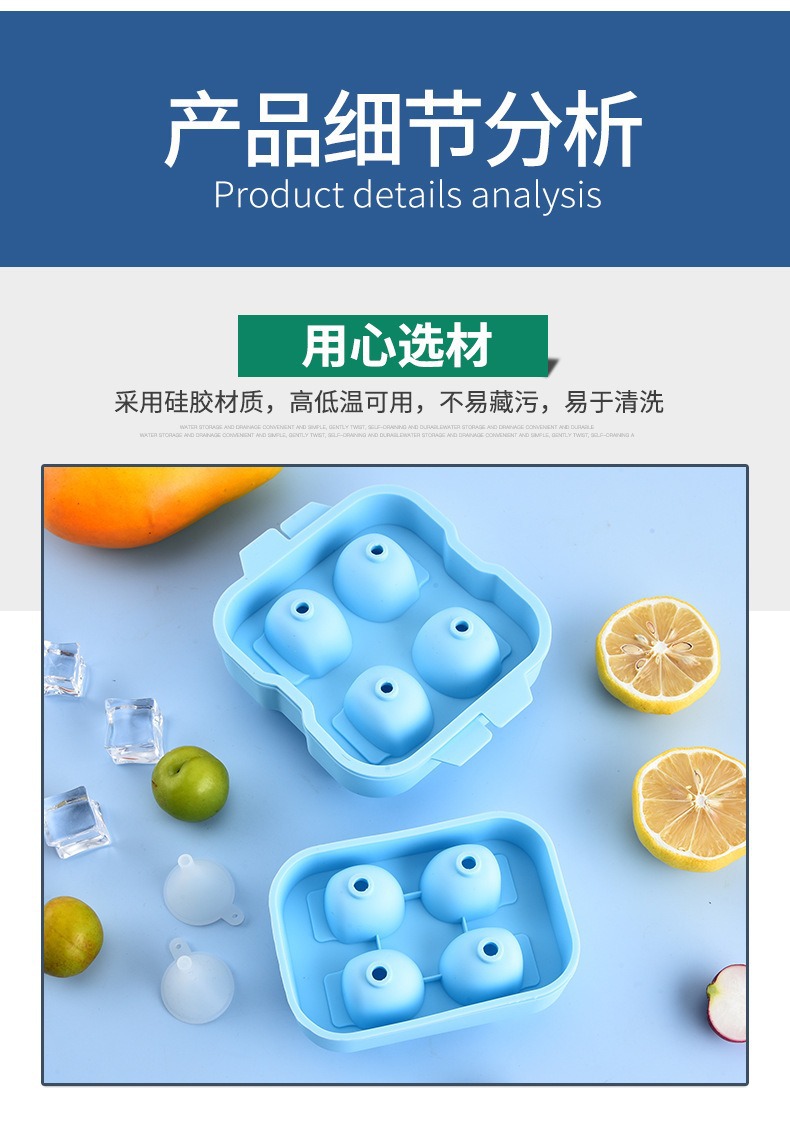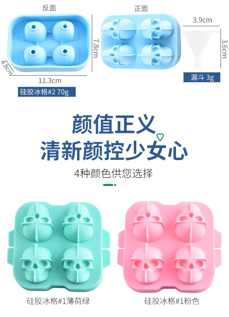 Silicone Ice Tray with Lid, Skull Ice Ball, Home-Made Ice Box Storage Box, Ice Maker, Ice Cube Mold with Funnel