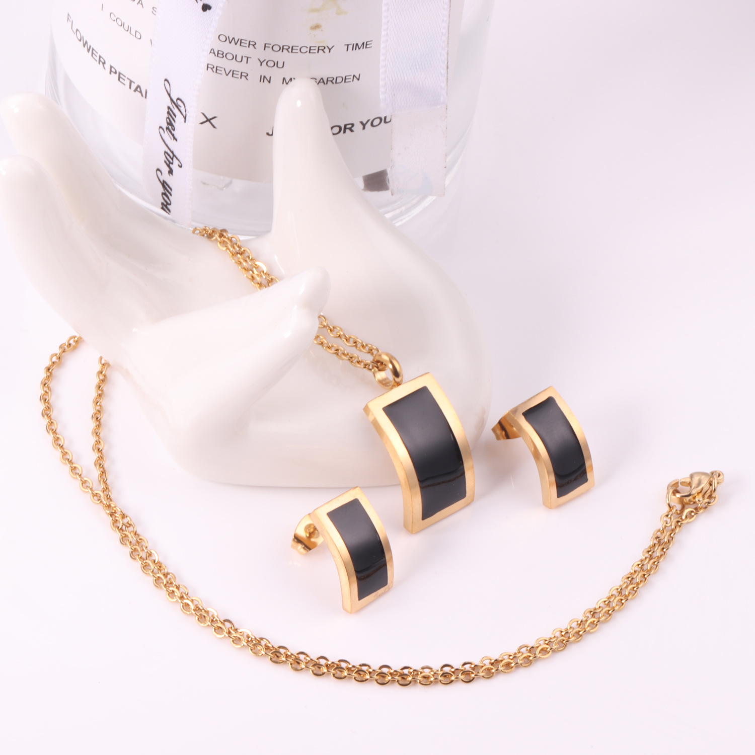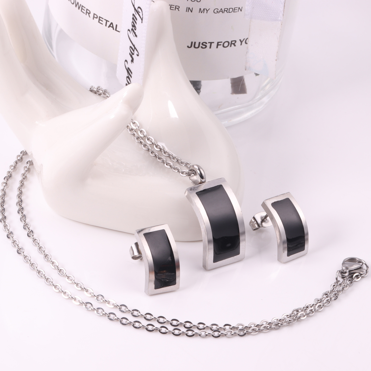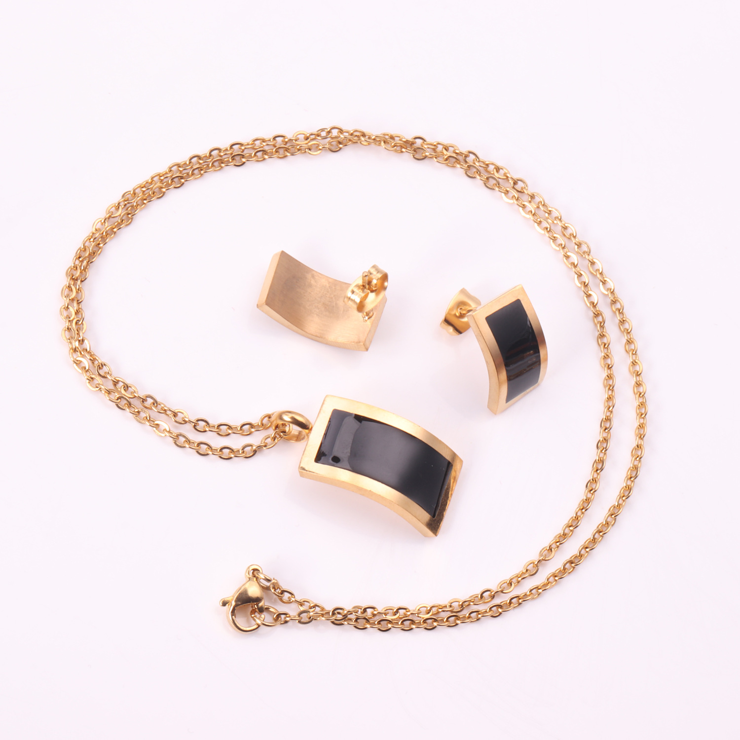 Cross-Border Hot-Selling Geometric Jewelry Set, Fashionable and Simple Black Shell Pendant Necklace, Earrings, Stainless Steel Jewelry Set