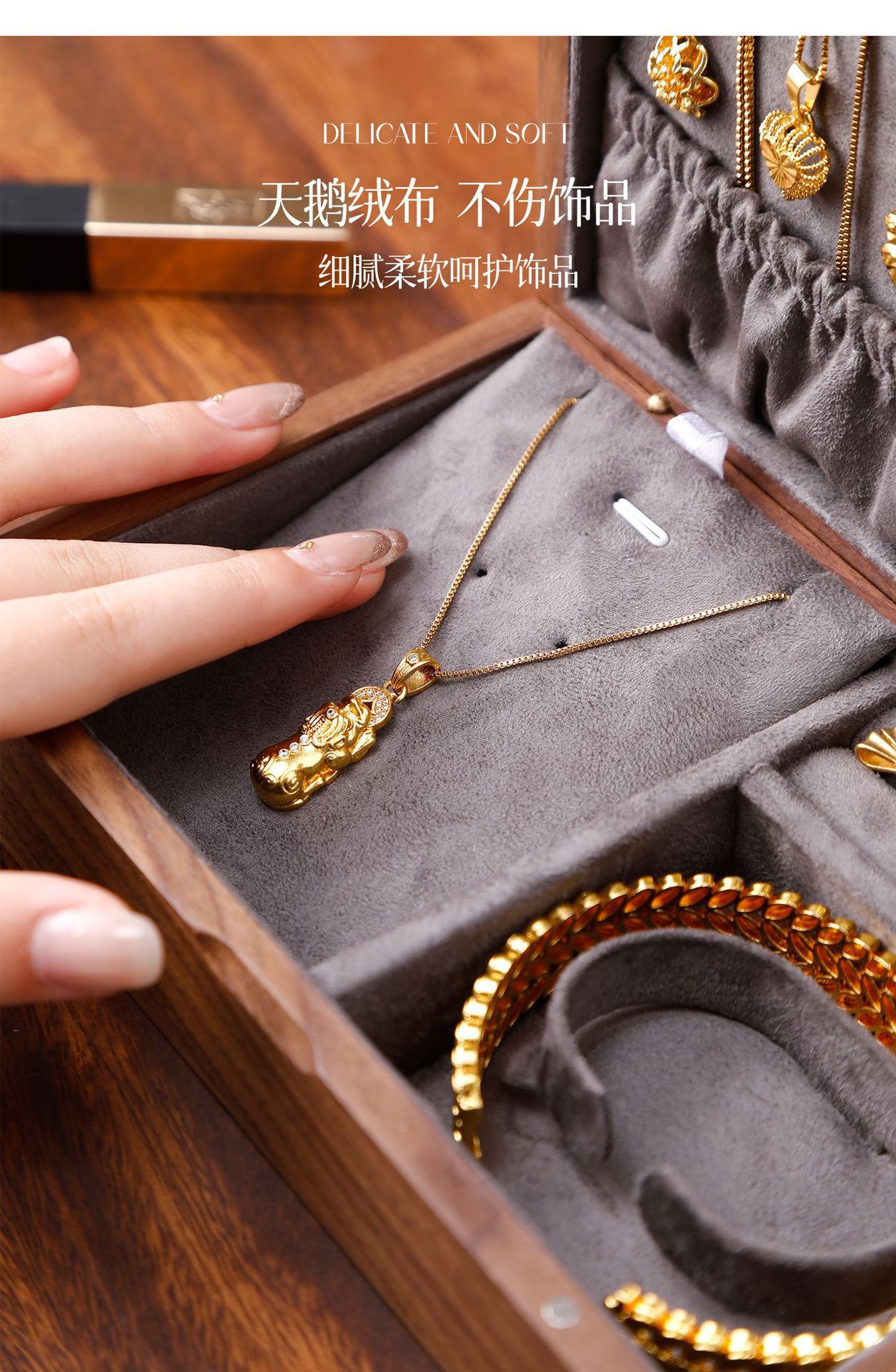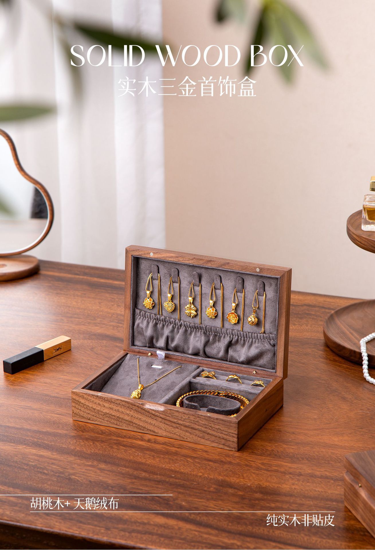 Color: Solid wood jewelry box—sealed and anti-oxidation [walnut light gray velvet]