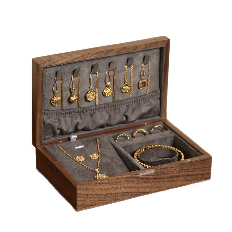 Color: Solid wood jewelry box—sealed and anti-oxidation [walnut dark gray velvet]