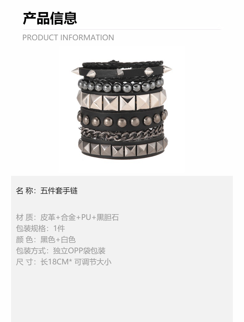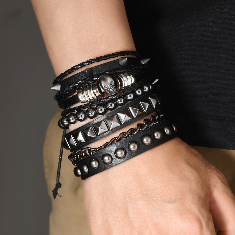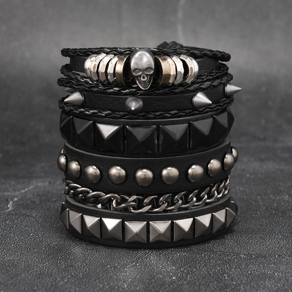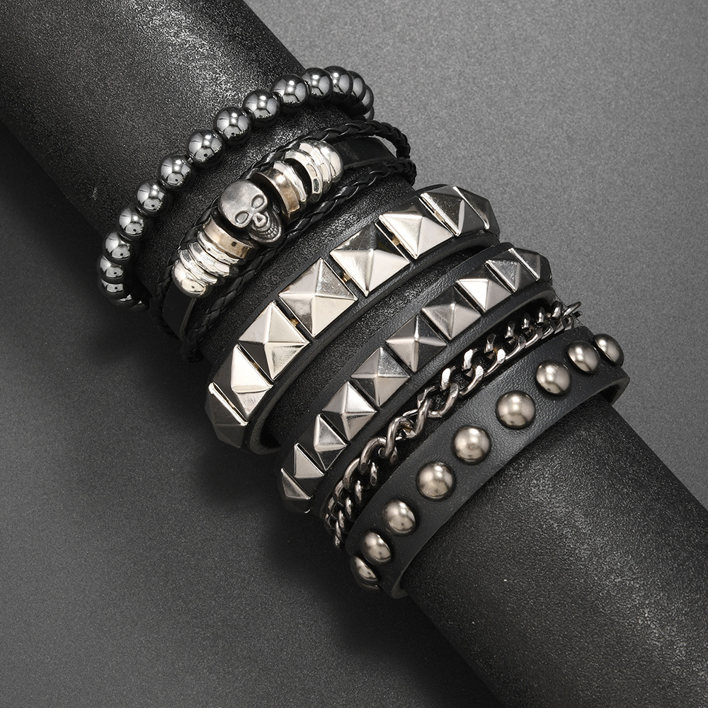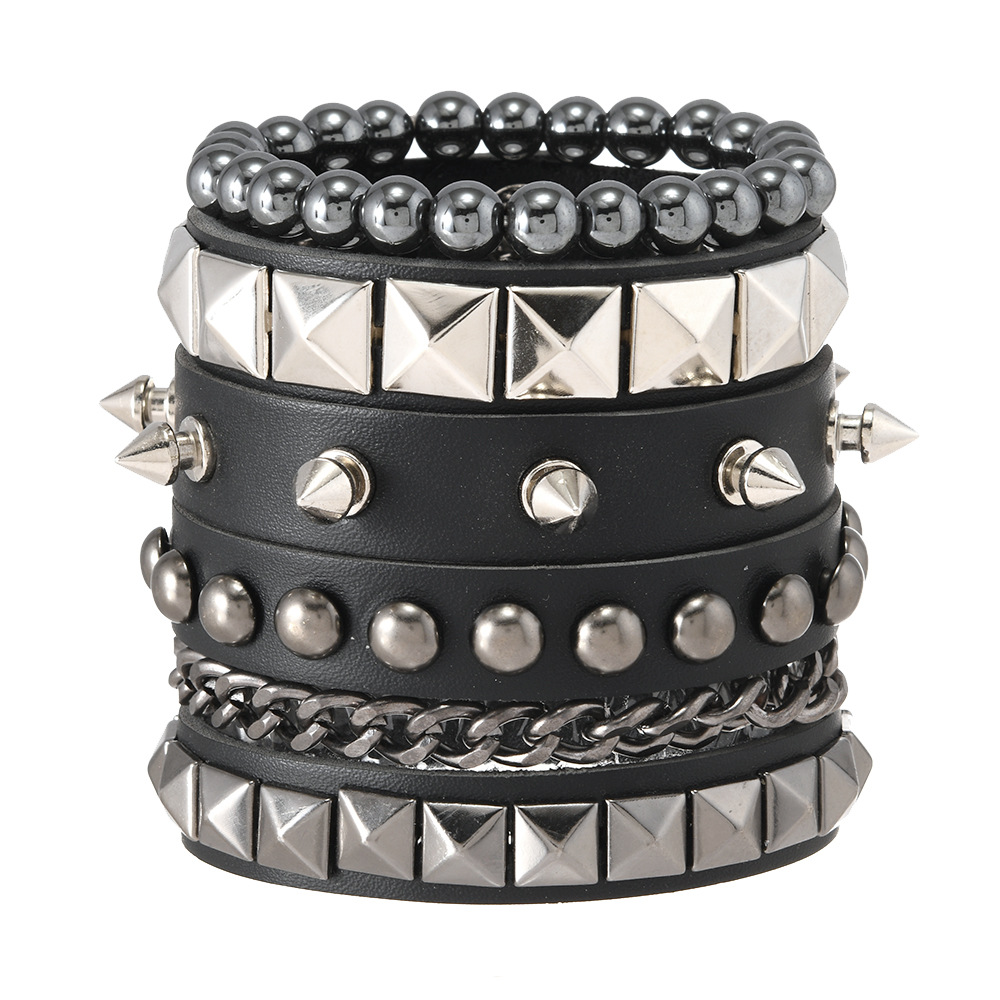 European and American New Multi-layer Punk Style Chain Bracelet Men's Personality Bracelet Hip-hop Rivet Jewelry Accessories