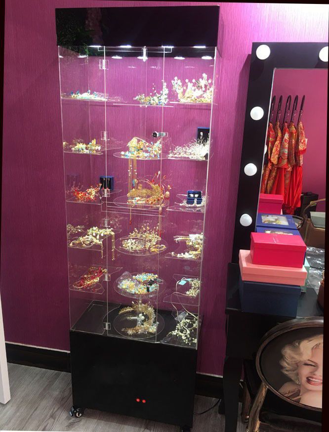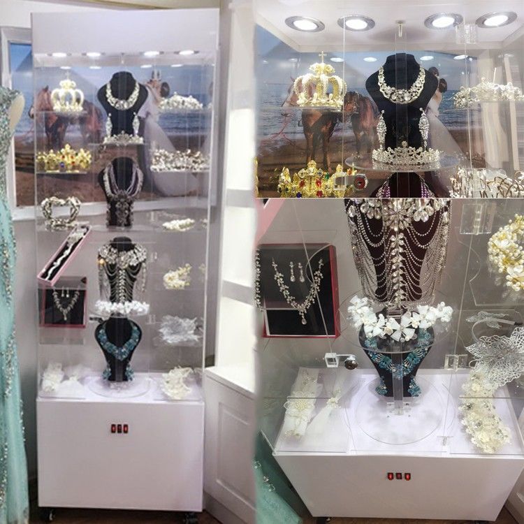 Acrylic Rotating Jewelry Accessories Mobile Phone Sample Glass Display Cabinet Cosmetic Gift Boutique Dental Display Cabinet