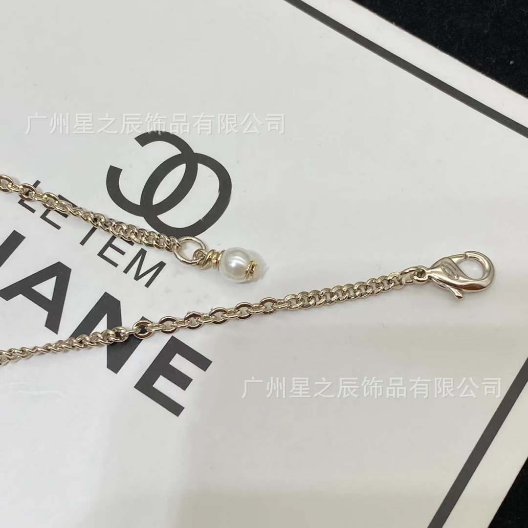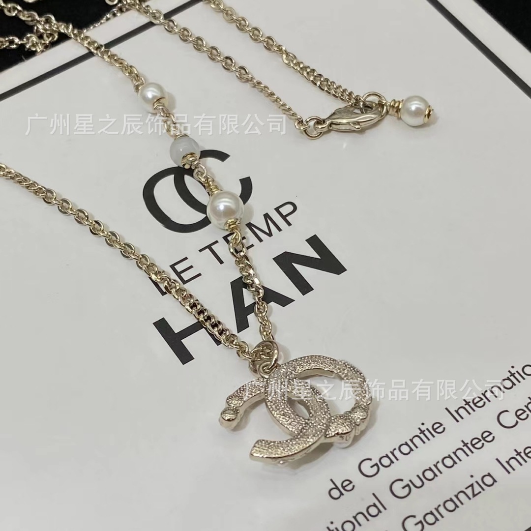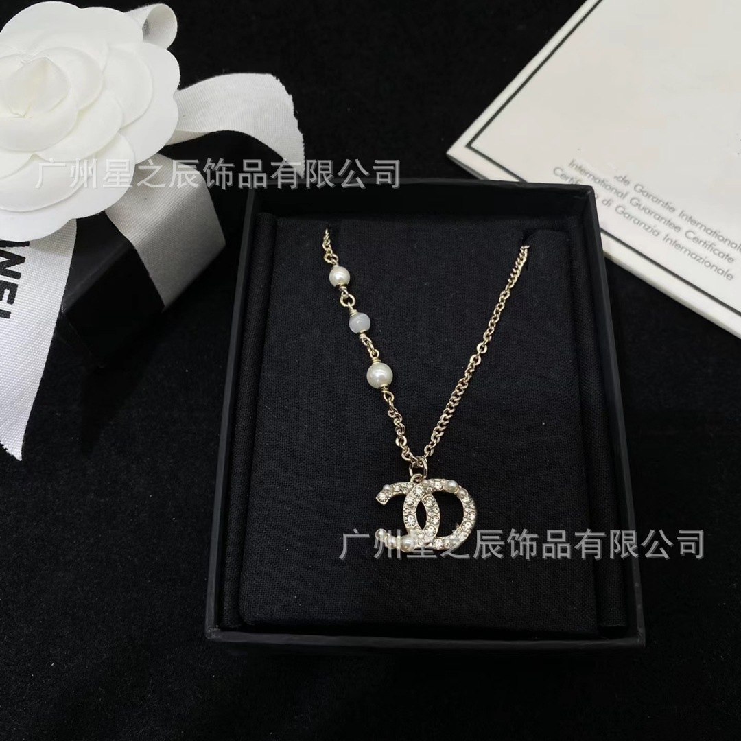 Real Shot of Xiangjia's Double C Size Pearl Necklace with Label, Female Fragrance Grandma Full Diamond Clavicle Chain, Female Factory Wholesale