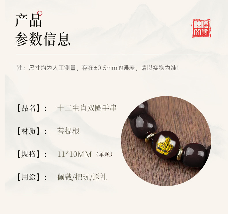 [Fushun] Bodhi Bracelet Douyin New Hot Style Zodiac Double Circle Bodhi Buddha Beads Rosary Bracelet for Men and Women