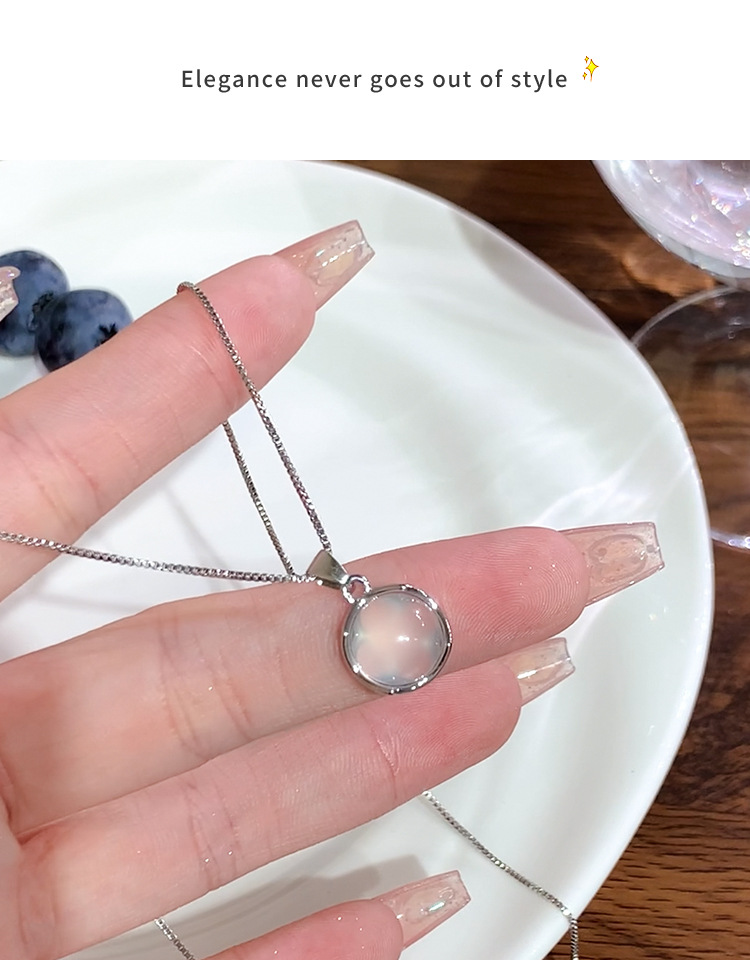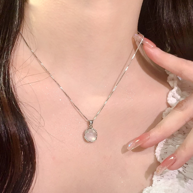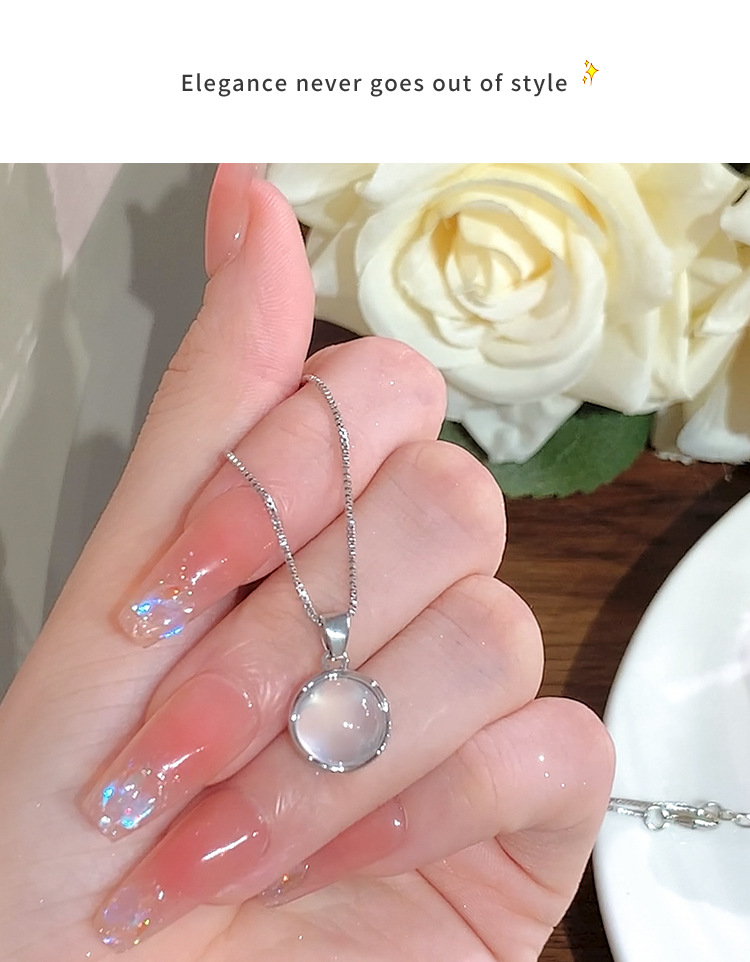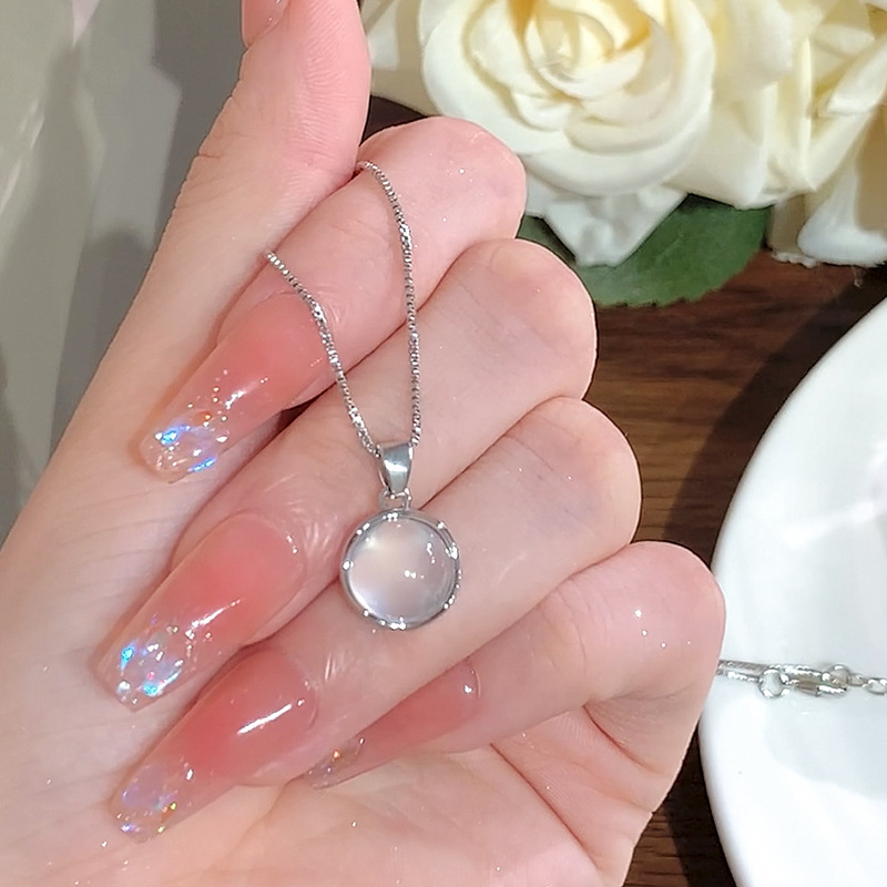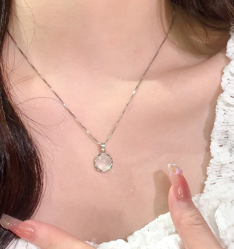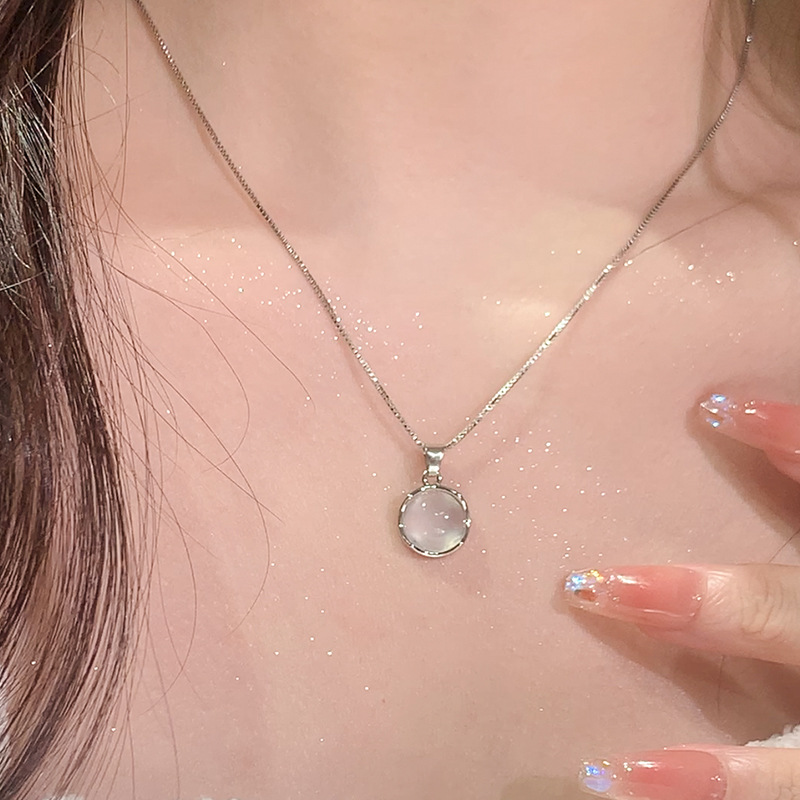 Silver Town Round Opal Necklace Women's Summer All-match Light Luxury Niche Collarbone Chain Women's High-end Pendant Jewelry