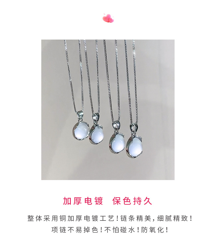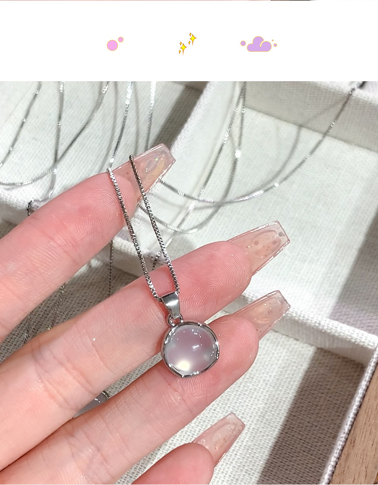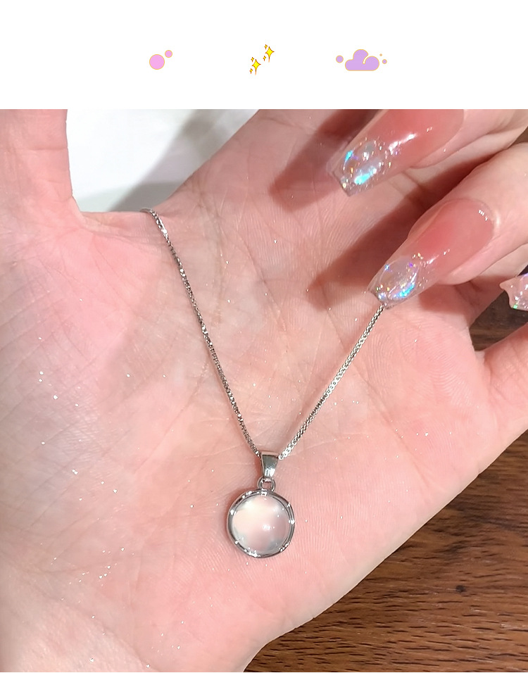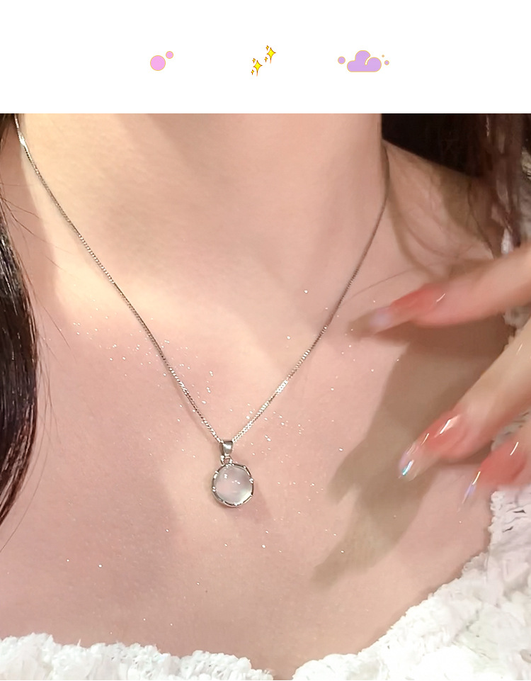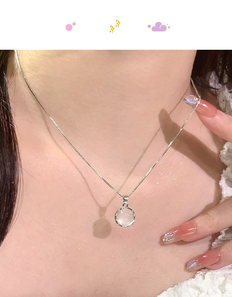 Silver Town Round Opal Necklace Women's Summer All-match Light Luxury Niche Collarbone Chain Women's High-end Pendant Jewelry