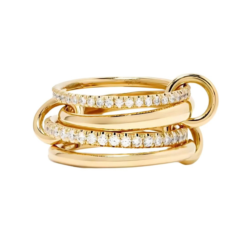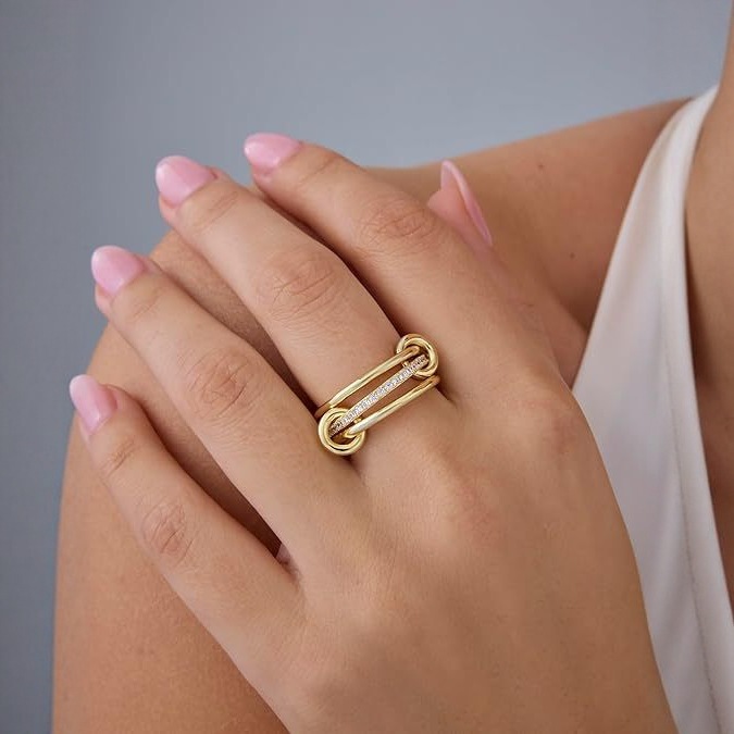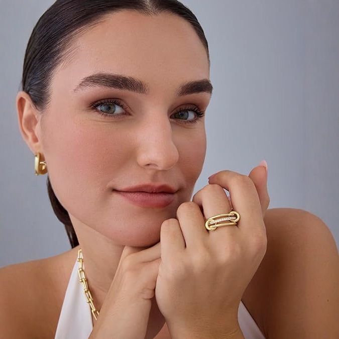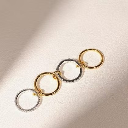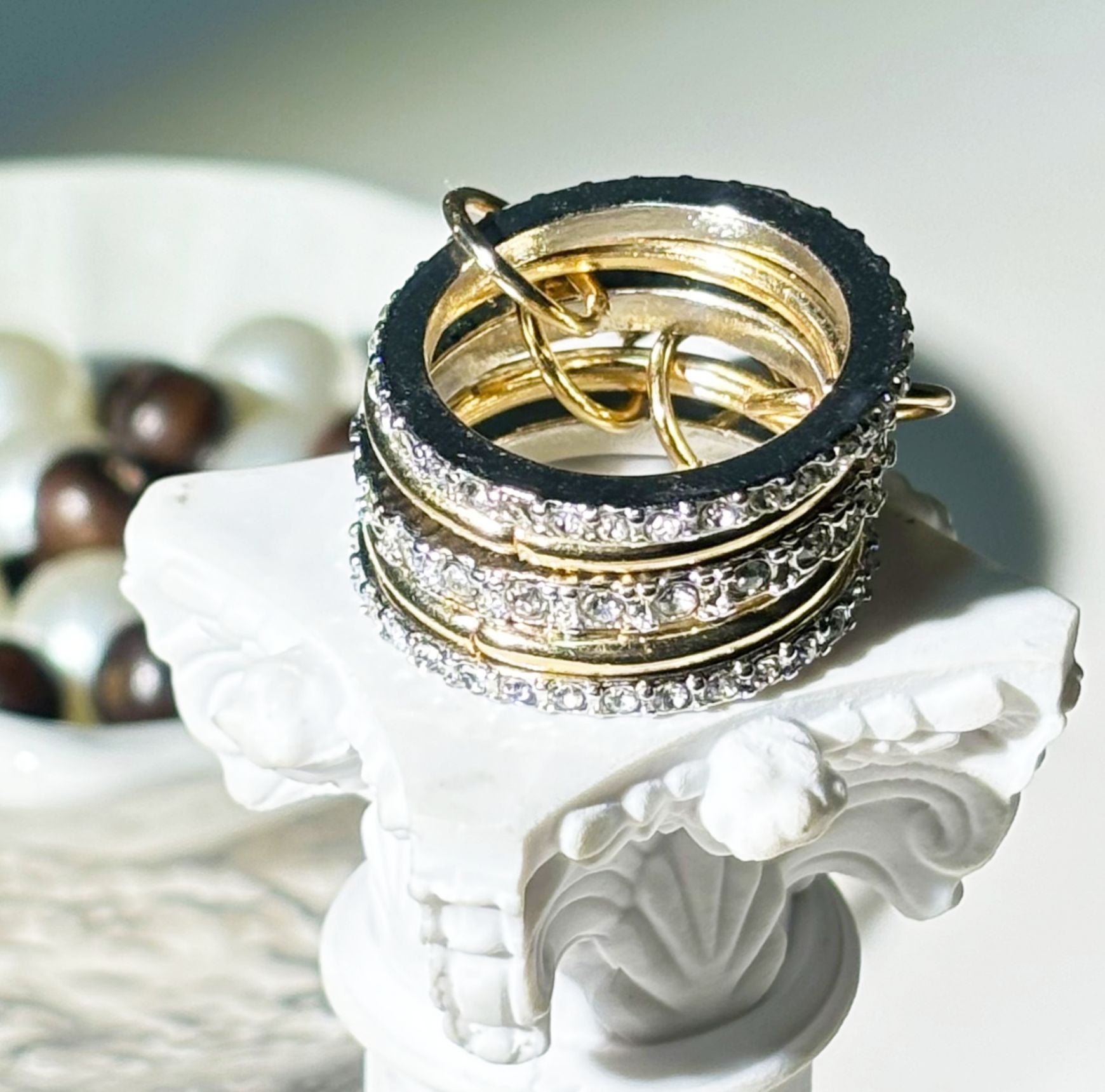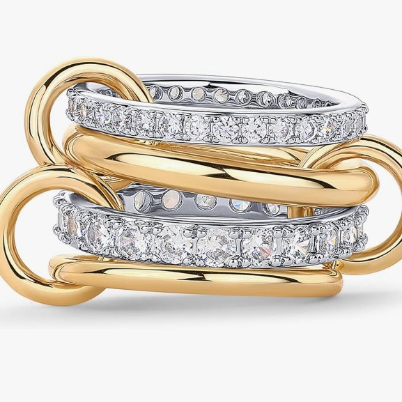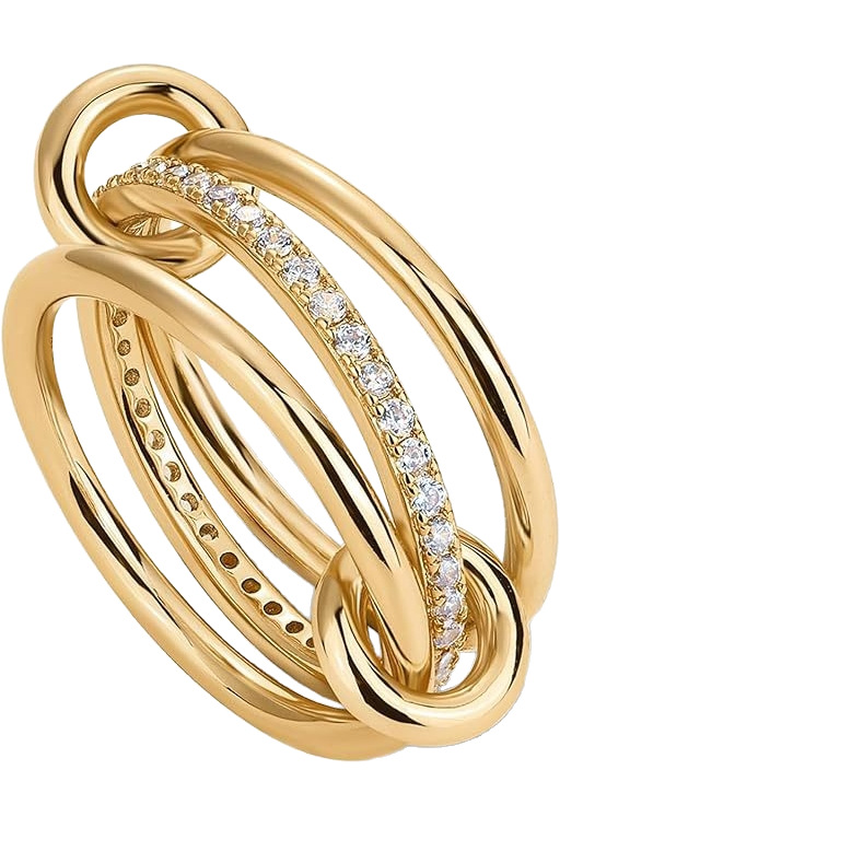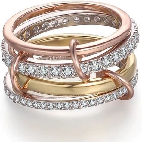 Amazon New Stacked Cubic Zirconia Ring 18K Gold Thick Glossy Gold and Silver Double Ring in stock
