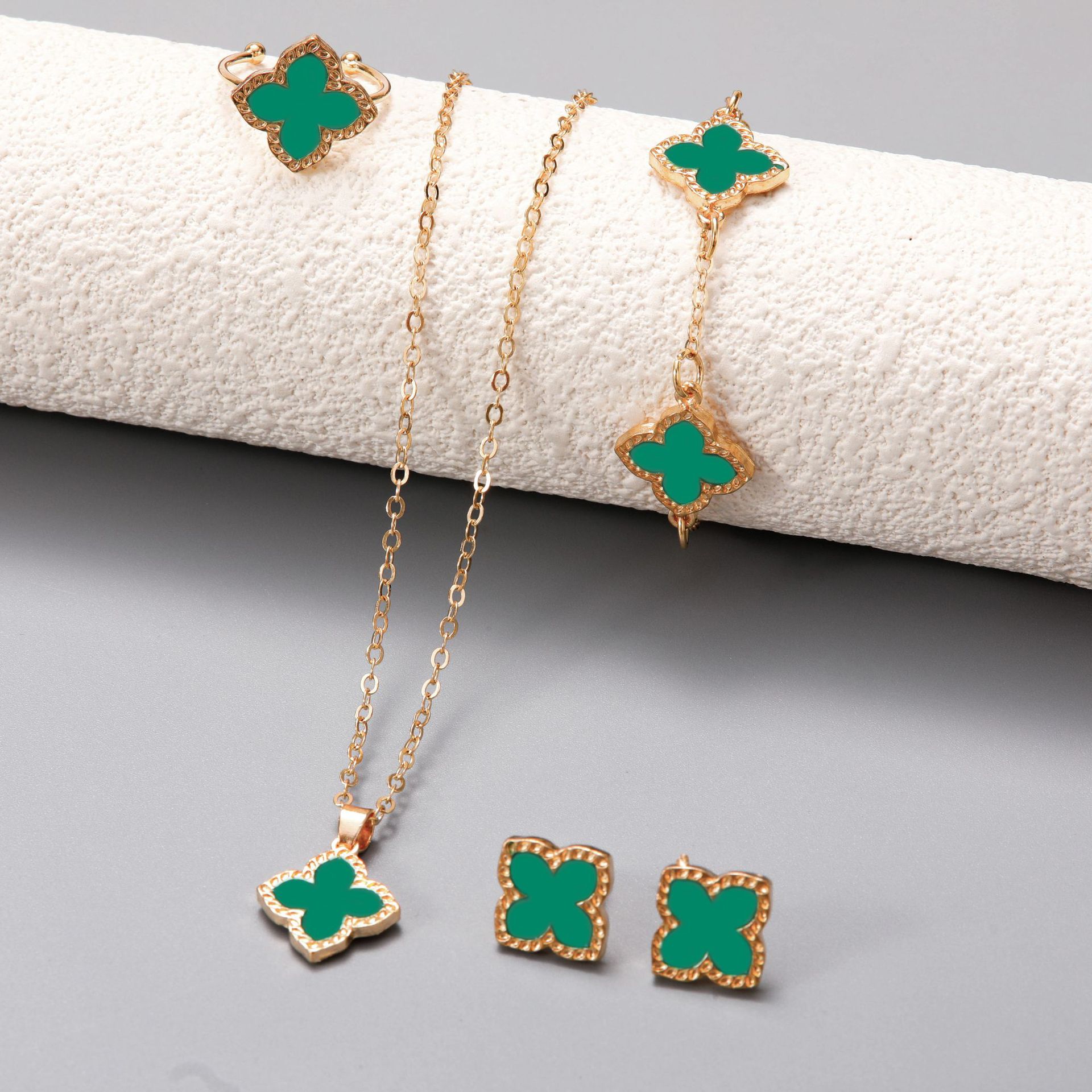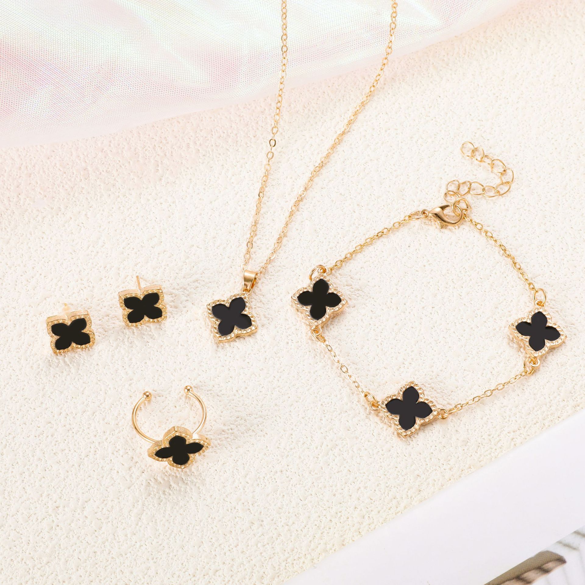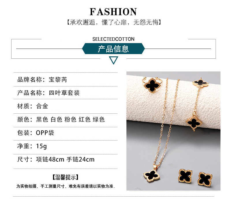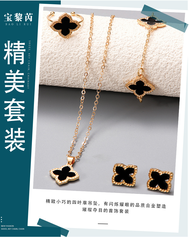 Korean Style Small Fresh Four-Leaf Clover Jewelry Set Cross-Border High-End Light Luxury Temperament Clover Necklace Bracelet Jewelry