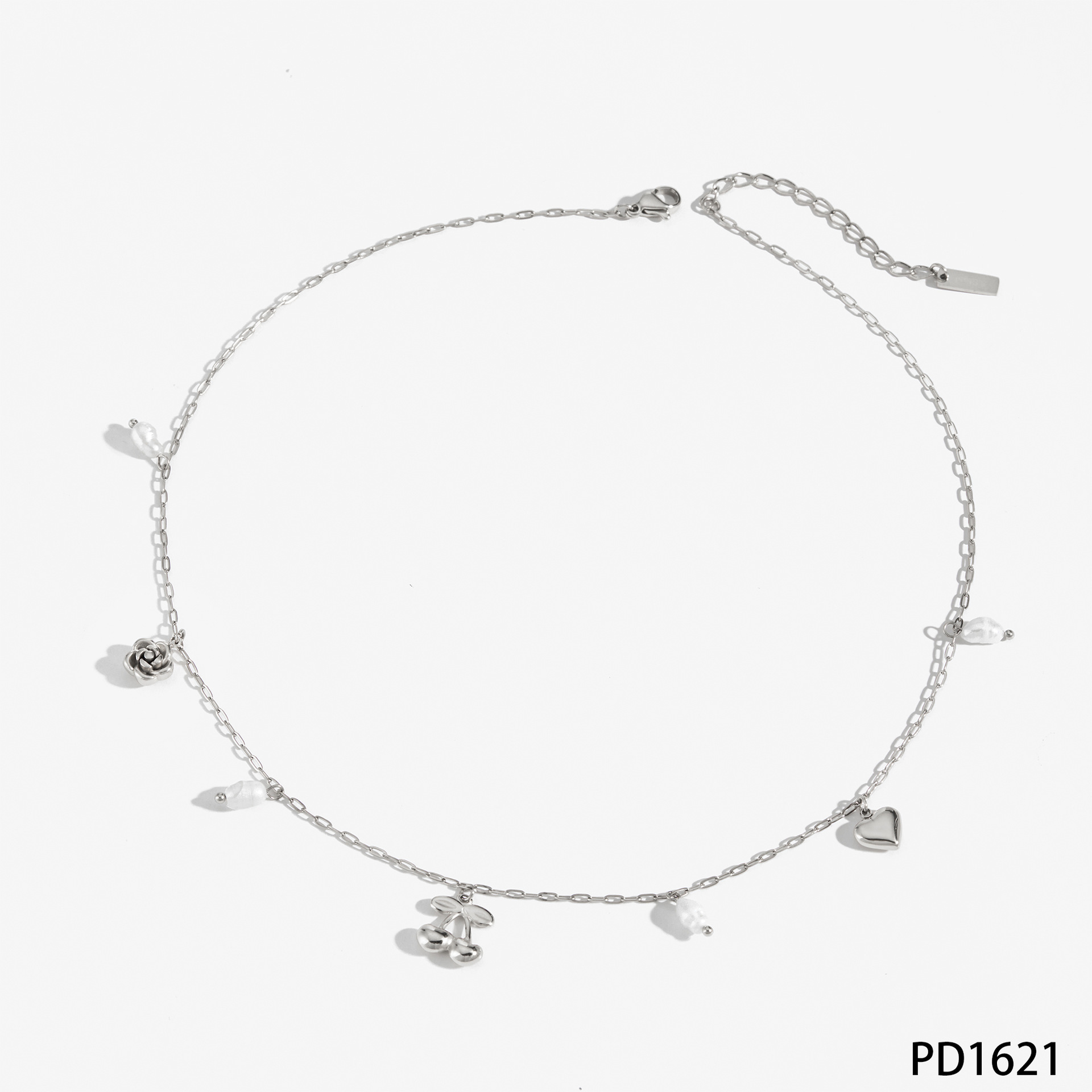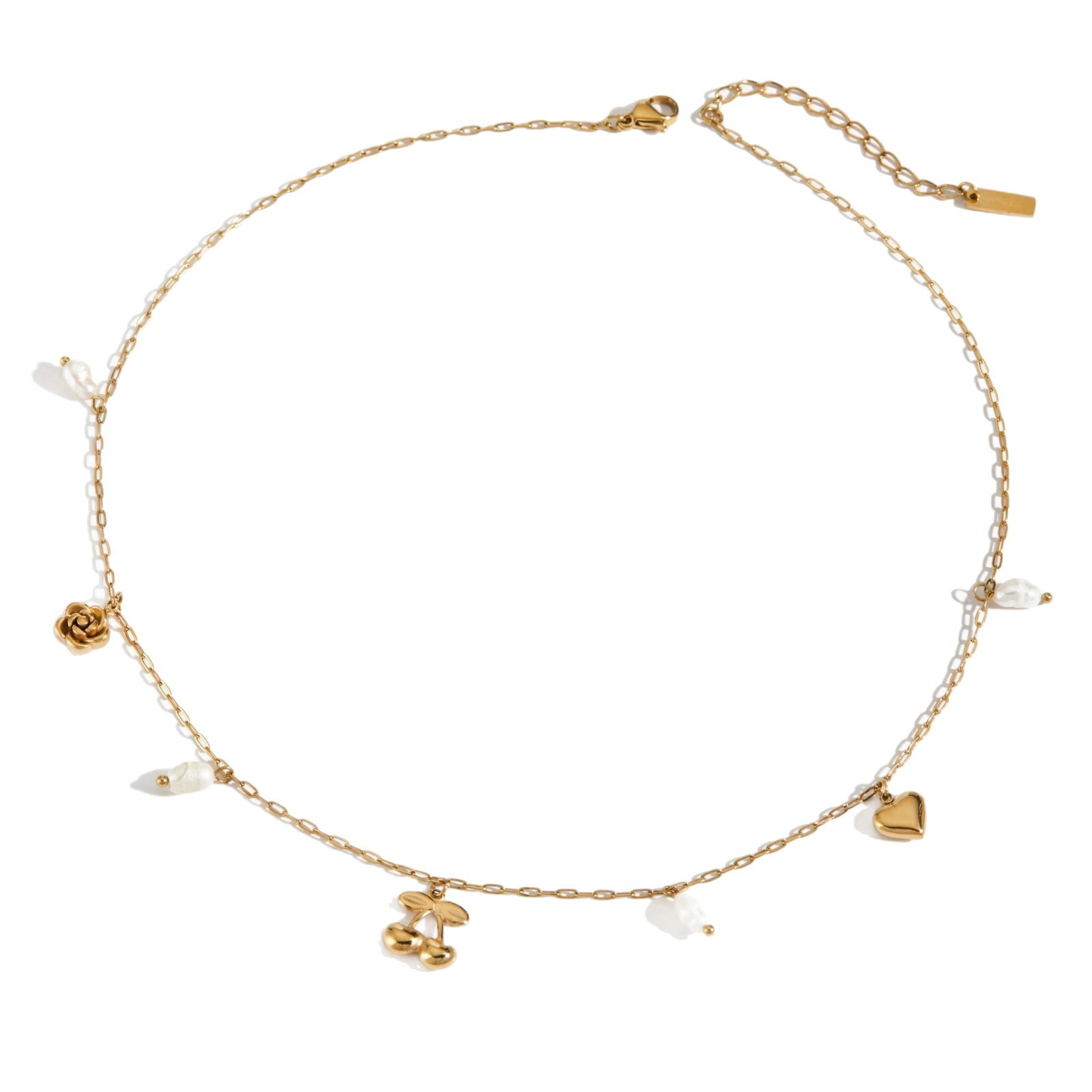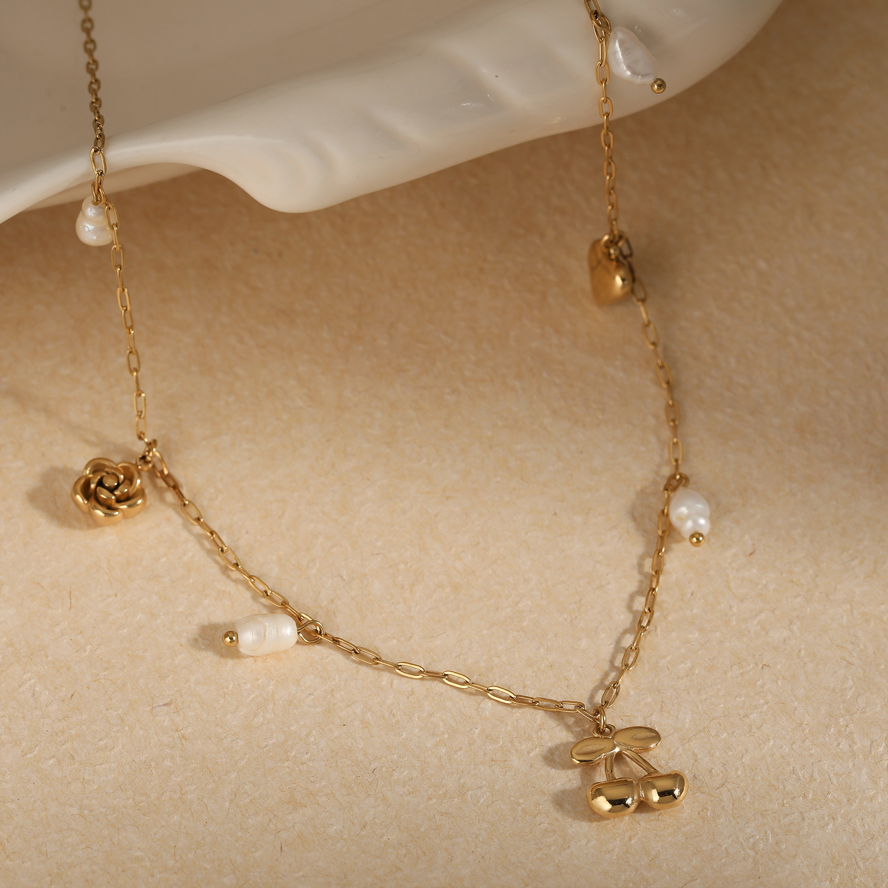 Stainless steel high-grade necklace cross-border best selling creative cherry love pearl flower tassel pendant necklace wholesale