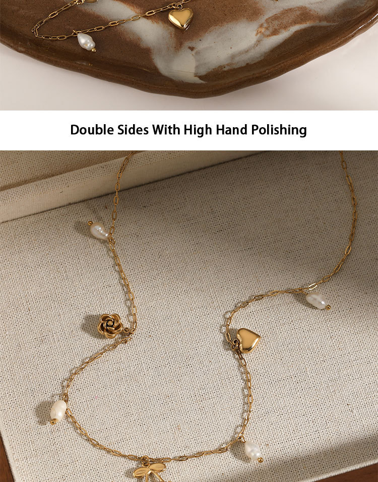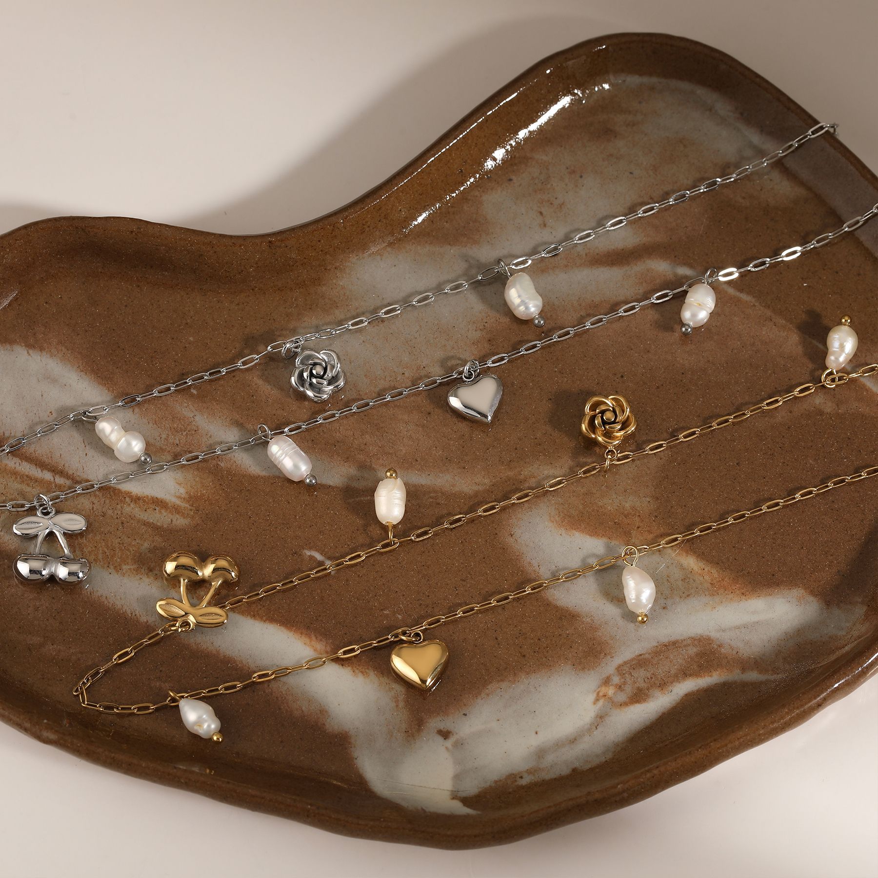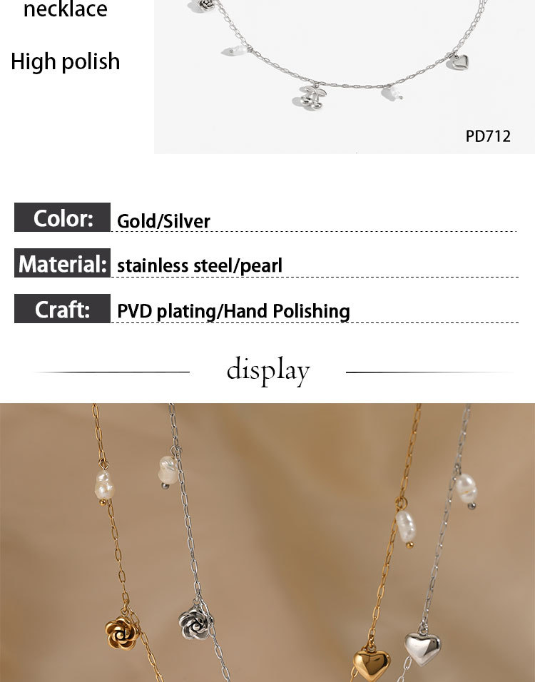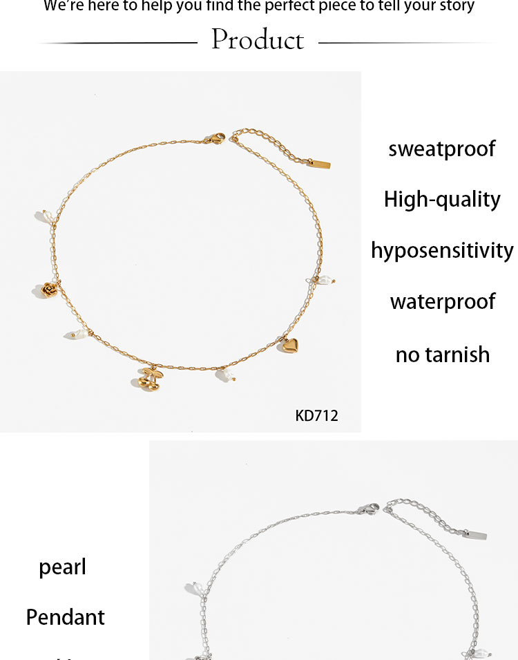 Stainless steel high-grade necklace cross-border best selling creative cherry love pearl flower tassel pendant necklace wholesale
