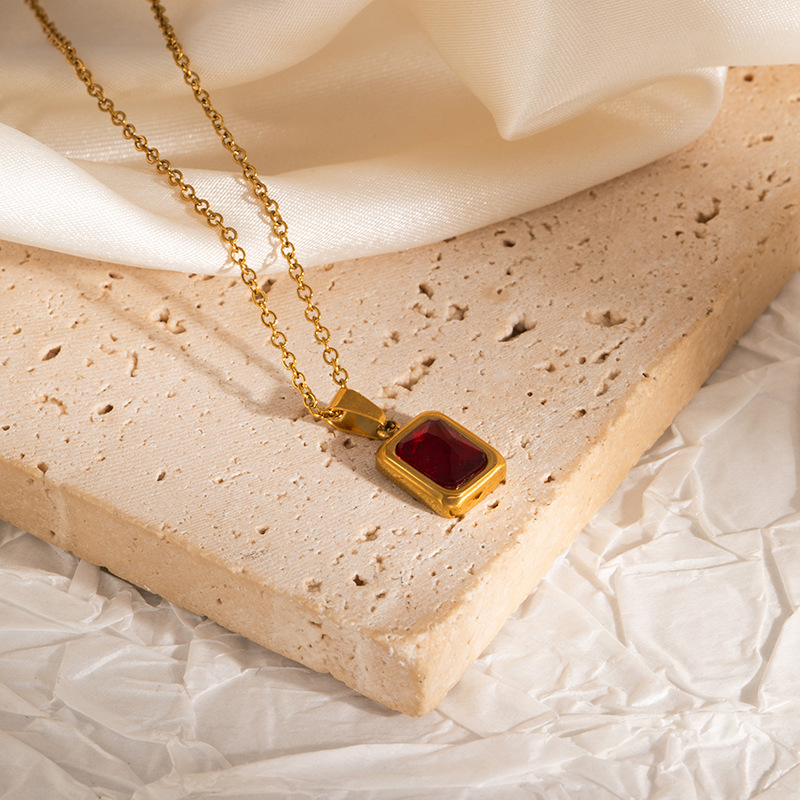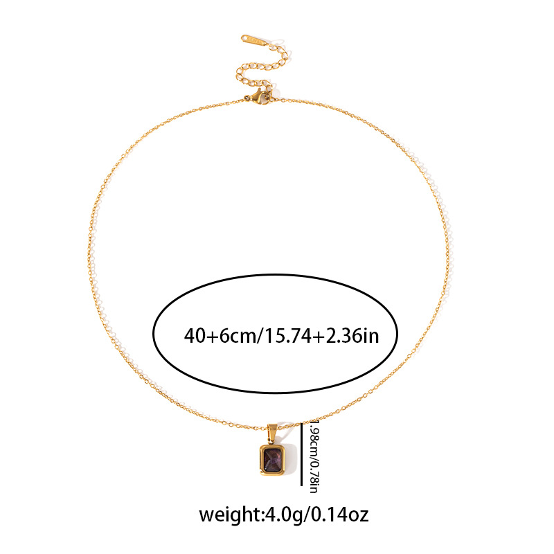 Cross-Border Gold Stainless Steel Multi-Color Square Pendant Necklace for Women, Non-Fading, High-End, Light Luxury, Versatile and Fashionable Necklace