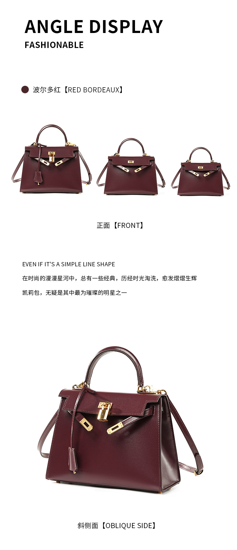Color: Bordeaux red (gold buckle)