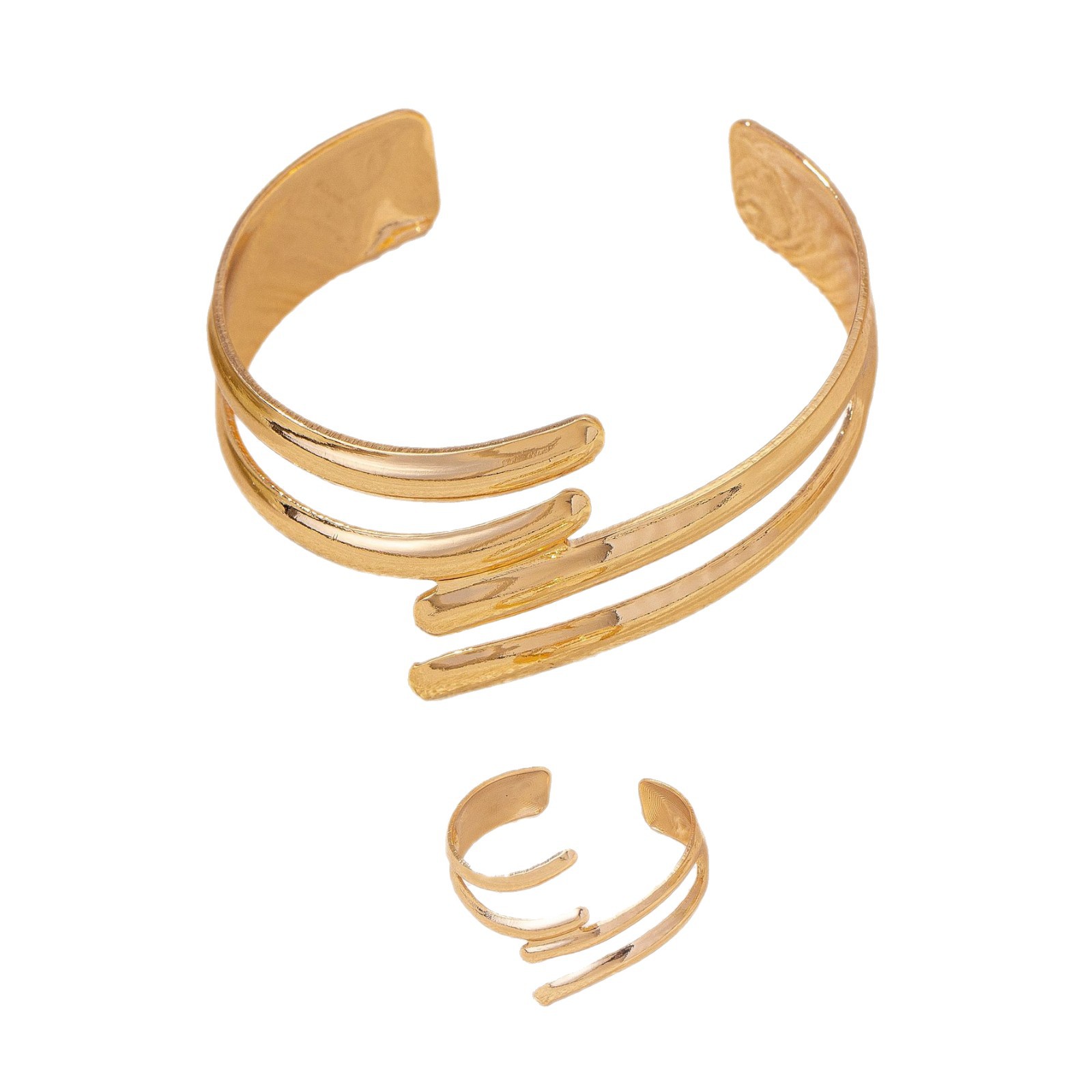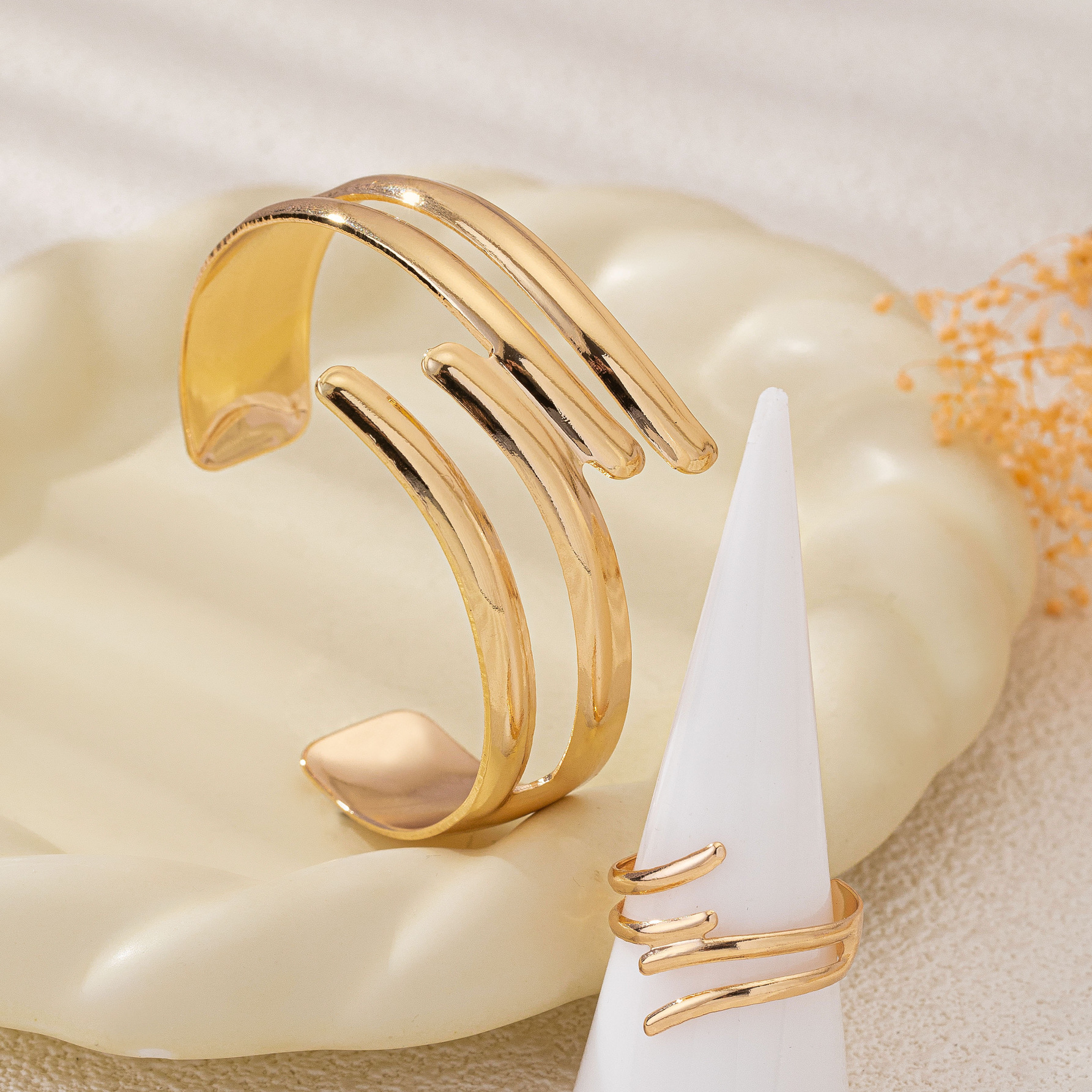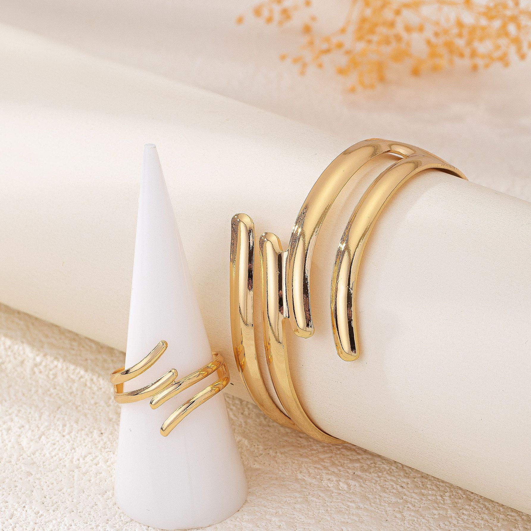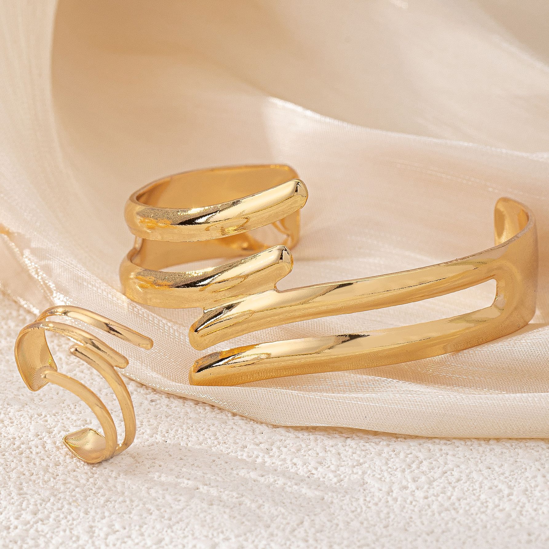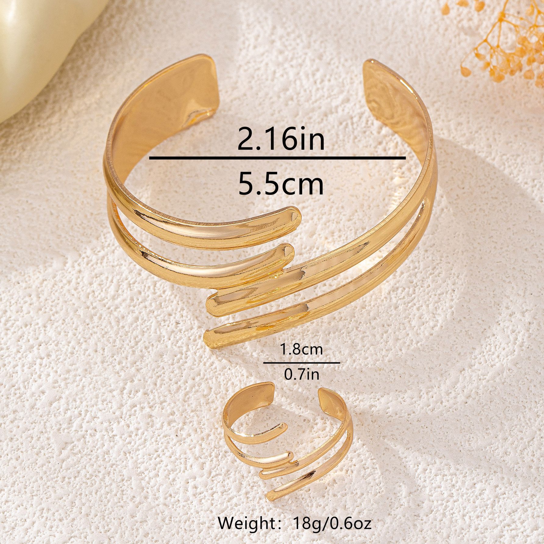 Cross-Border Hot Selling Personalized Exaggerated Geometric Line Bracelet Ring Set Suitable for Women to Wear at Daily Parties