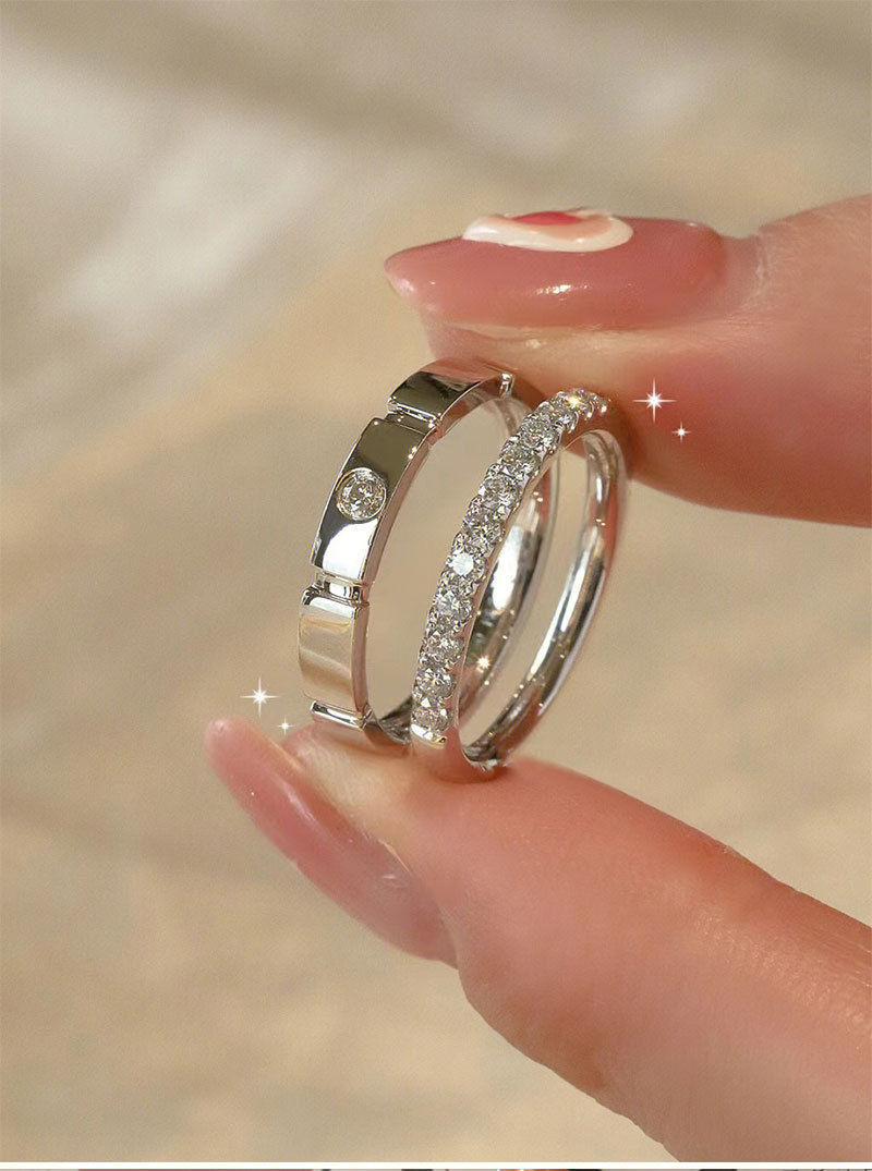 Xiaohongshu's Same Style S925 Sterling Silver Sparkling Niche Gemstone Couple Wedding Ring Row Ring Moissanite Diamond Ring Versatile