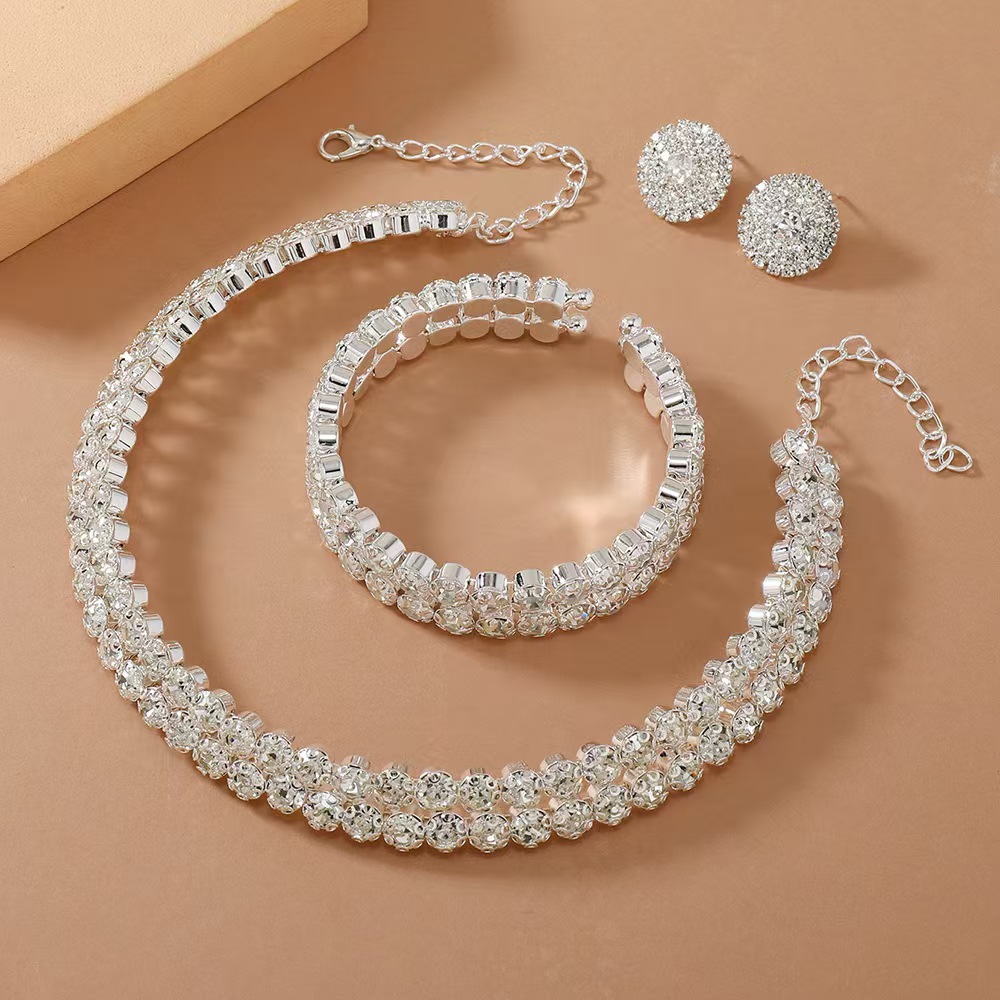 Fashion Hot-Selling Open Bracelet Necklace Earrings Three-Piece Set Temperament Commuting Suit Women Factory Direct Sales Wholesale
