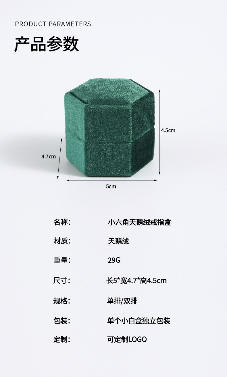 Specifications and models: Is37; small hexagonal single ring box 5*4.7*4.5cm
