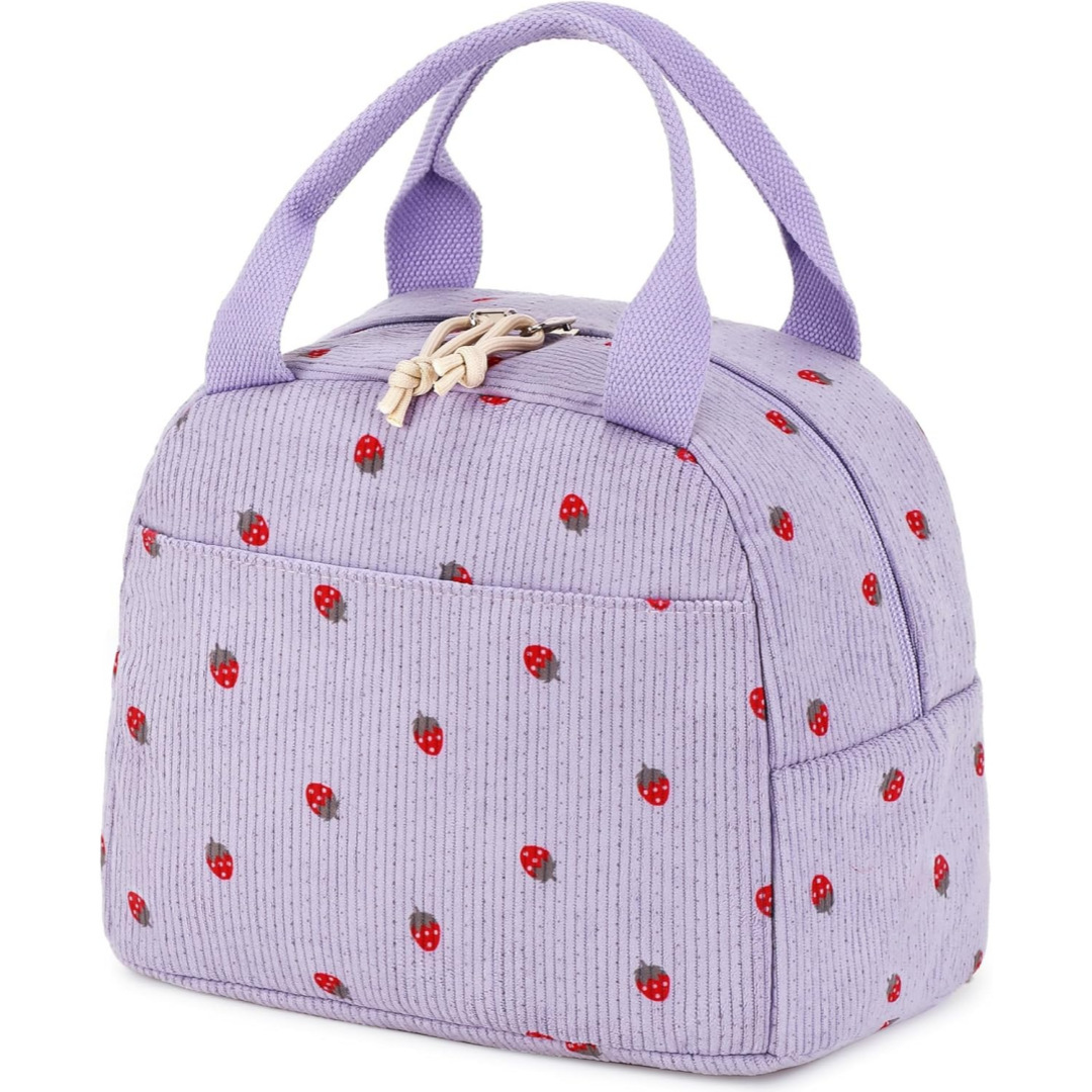 Cross-Border New Product Corduroy Printed Portable Lunch Bag Large Capacity Travel Picnic Ice Bag Work Insulation Bag