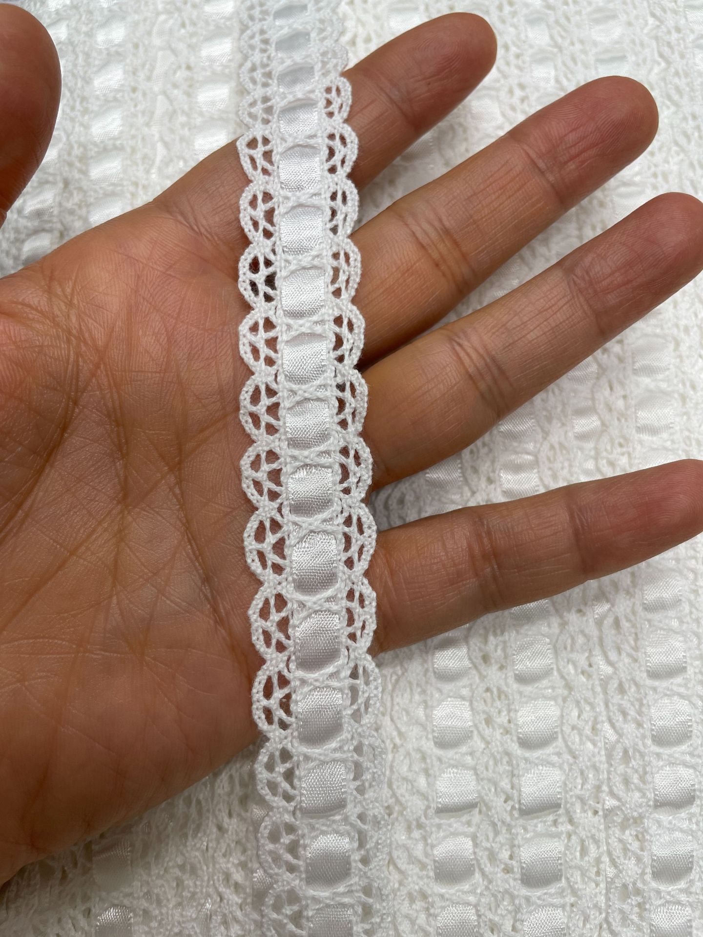 【用途】质量比较好的一款纯棉穿丝带花边。粉色有现货。可用在娃娃服饰、发卡、颈链、各类DIY手工上。