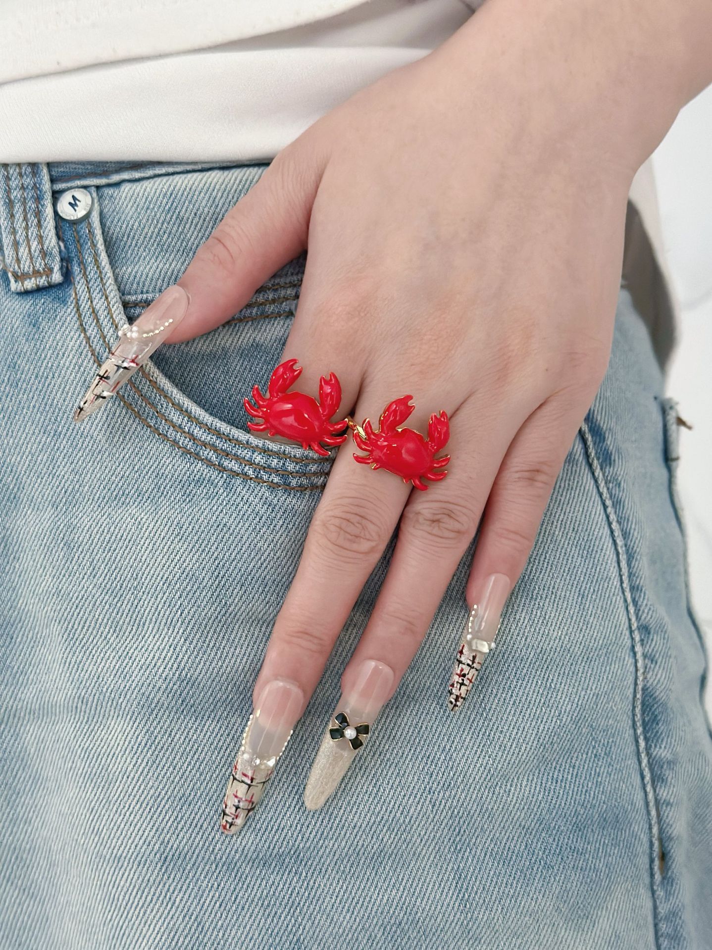 European and American Explosions Marine Elements Ring Hawaiian Wind Summer Red Oil Dropping Crab Ring Niche