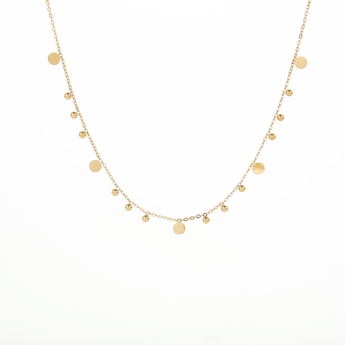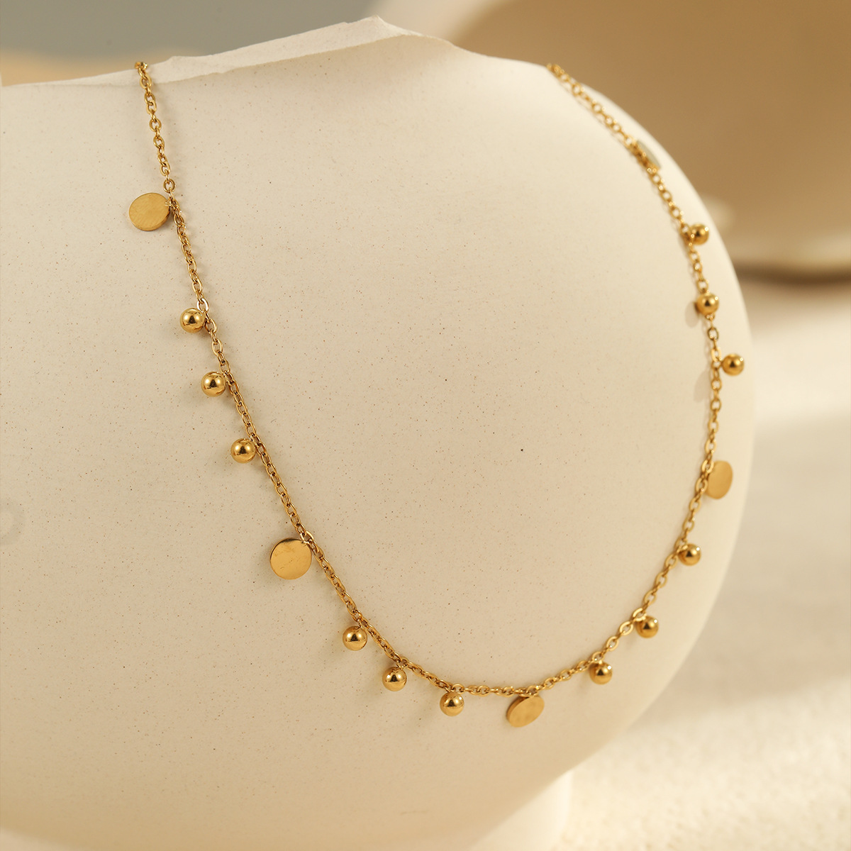 Cross-Border Simple European and American Style Titanium Steel Necklace Ins Niche High-End Metallic Disc Bead Stainless Steel Necklace
