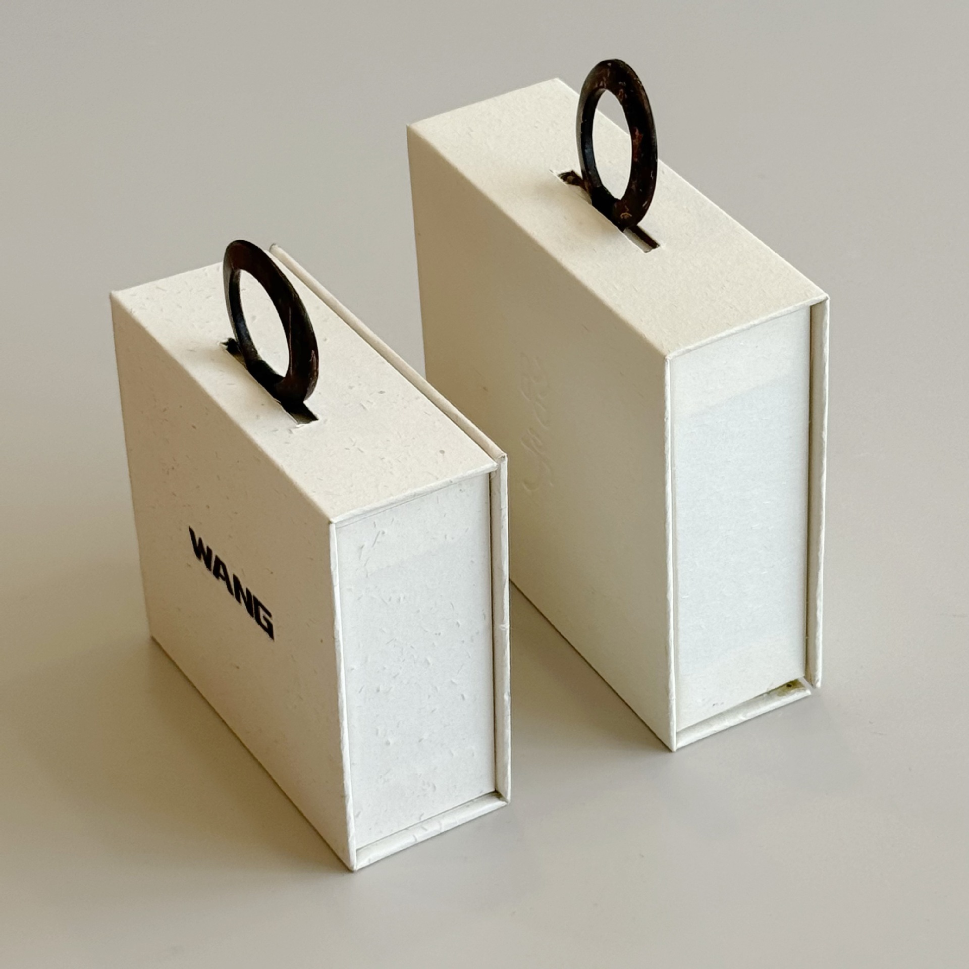 Color: Creamy white clamshell box with ring