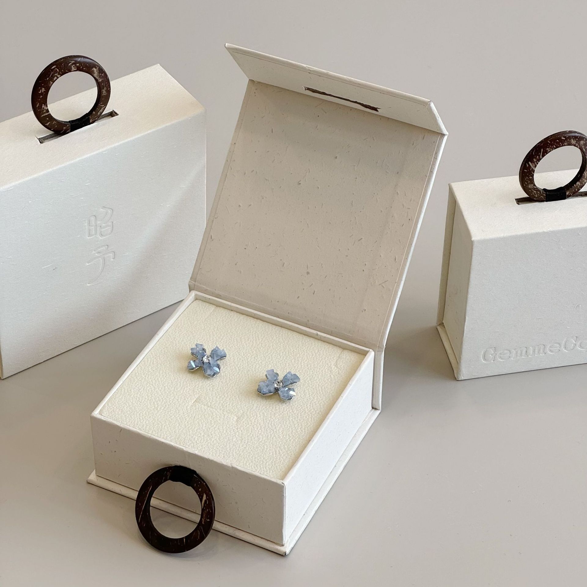 Ins Style Light Luxury Minimalist Jewelry Storage Packaging Box Wooden Ring Portable Paper Universal Flip Jewelry Jewelry Box