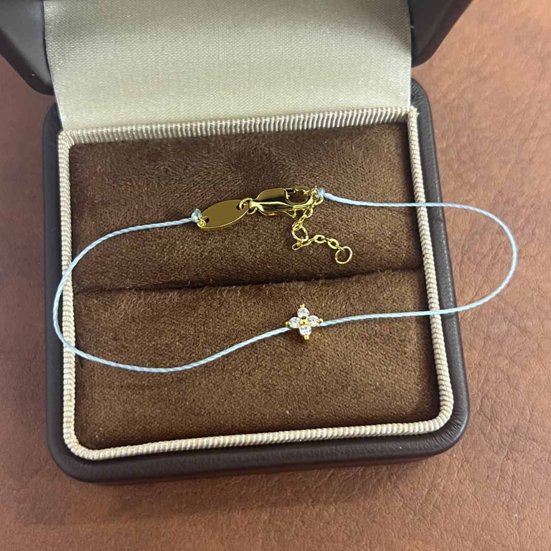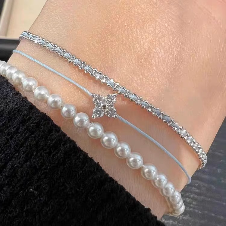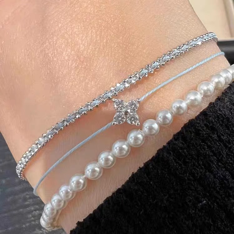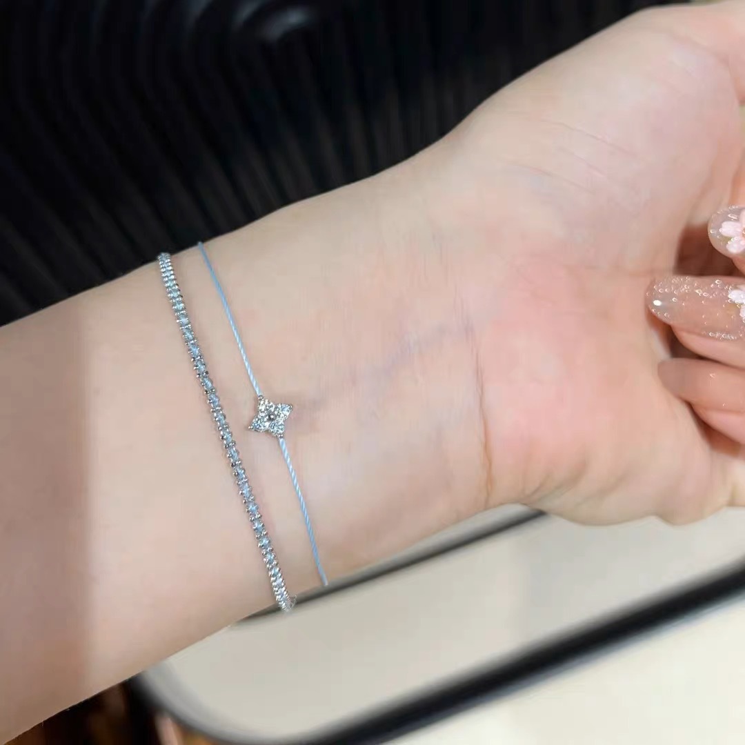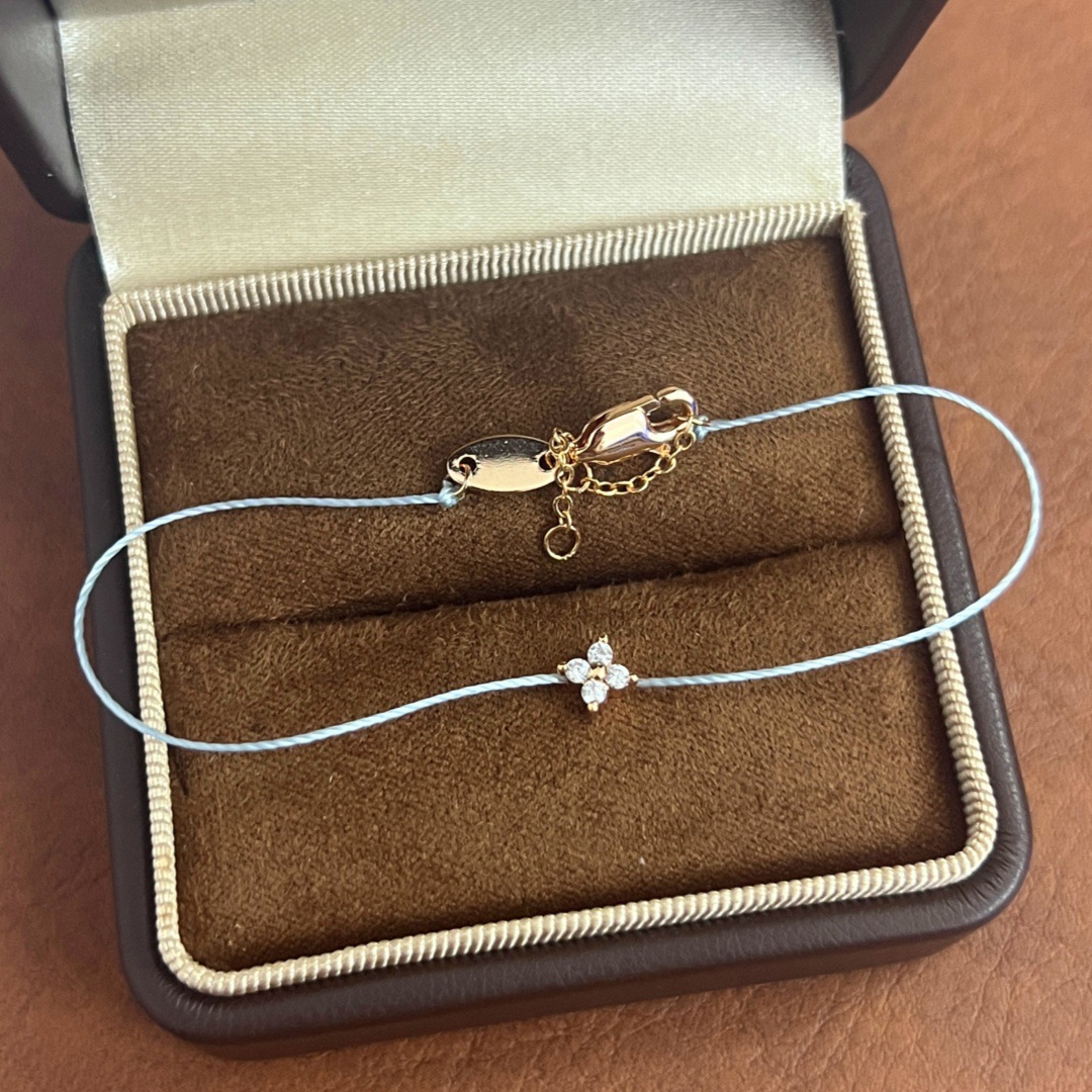 French Paris Small Red Rope Sky Blue Four-Leaf Clover Bracelet for Women Extremely Thin Mini High-End Niche Design Stacked Bracelet