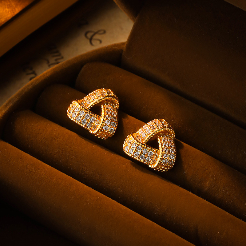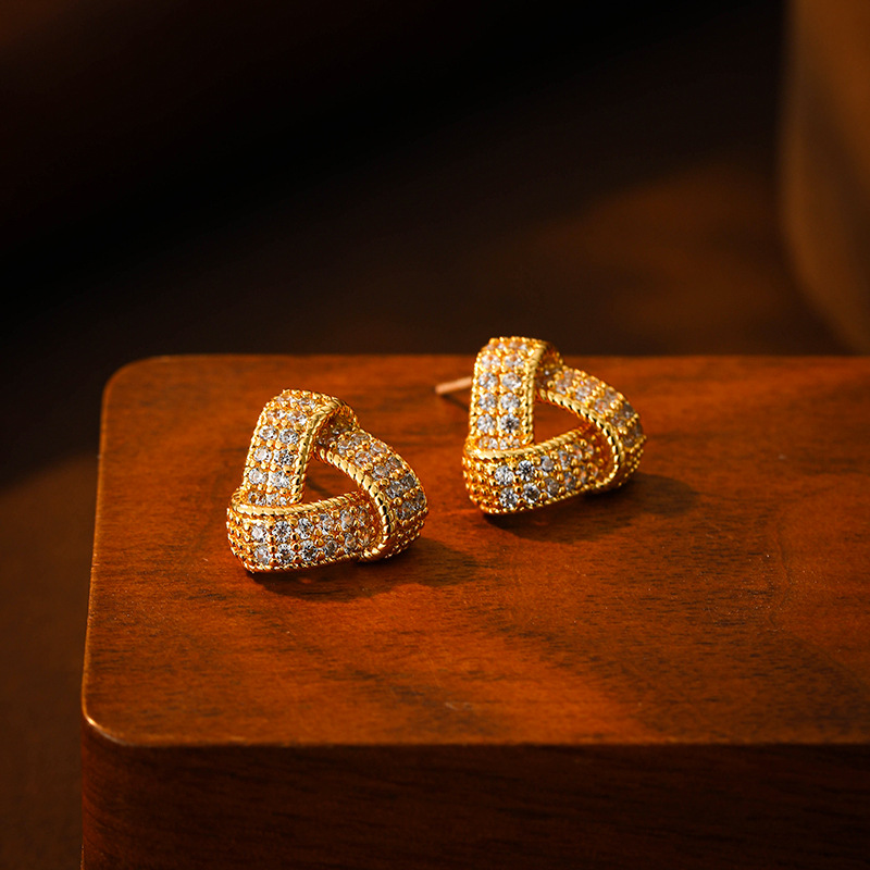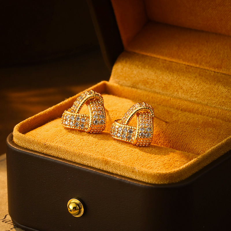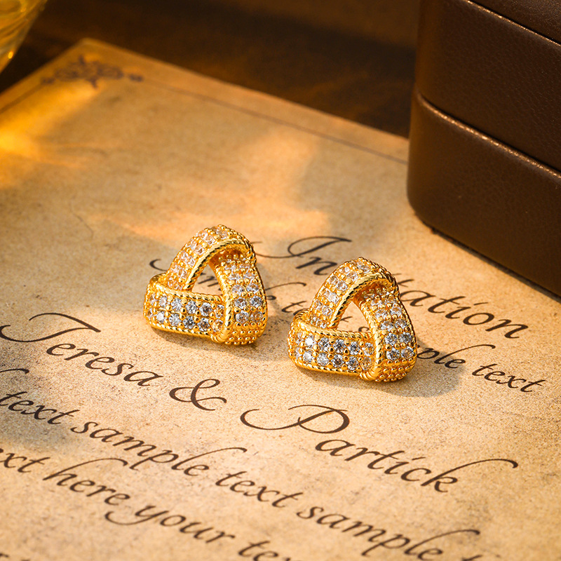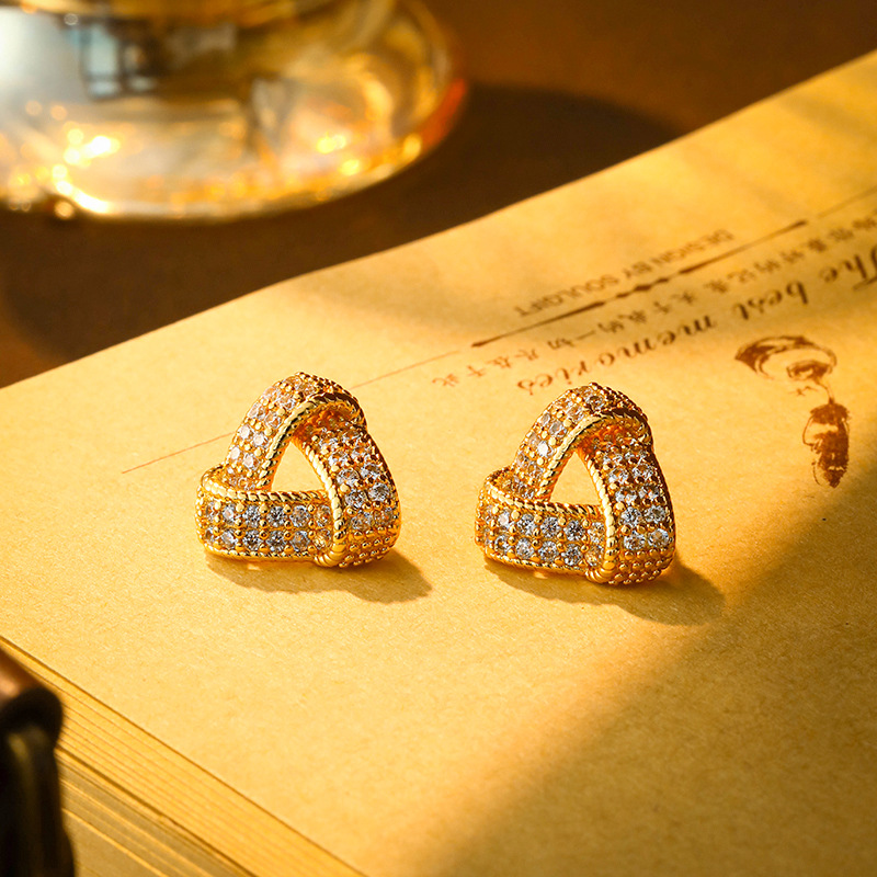 New Copper Inlaid Zircon Triangular Earrings, Fashionable Commuting, Exquisite and Versatile Earrings, Simple and High-End Temperament Earrings