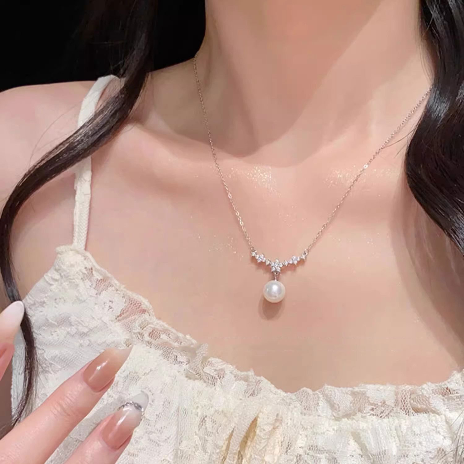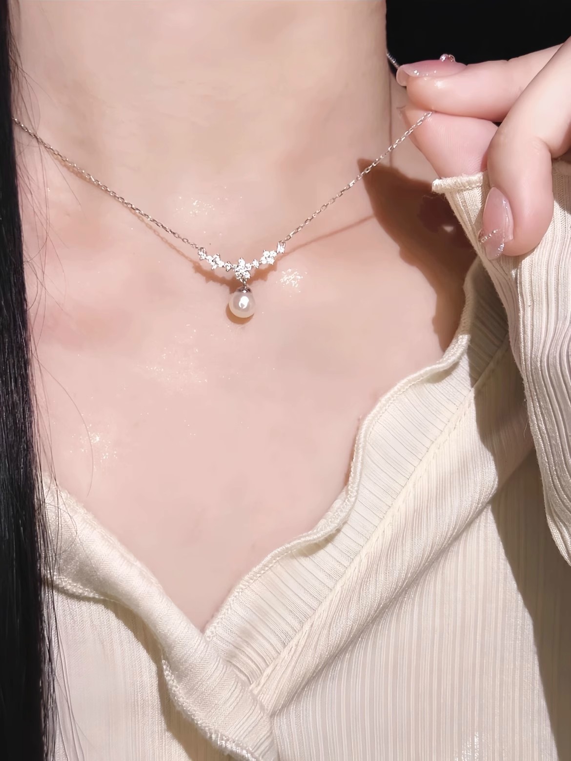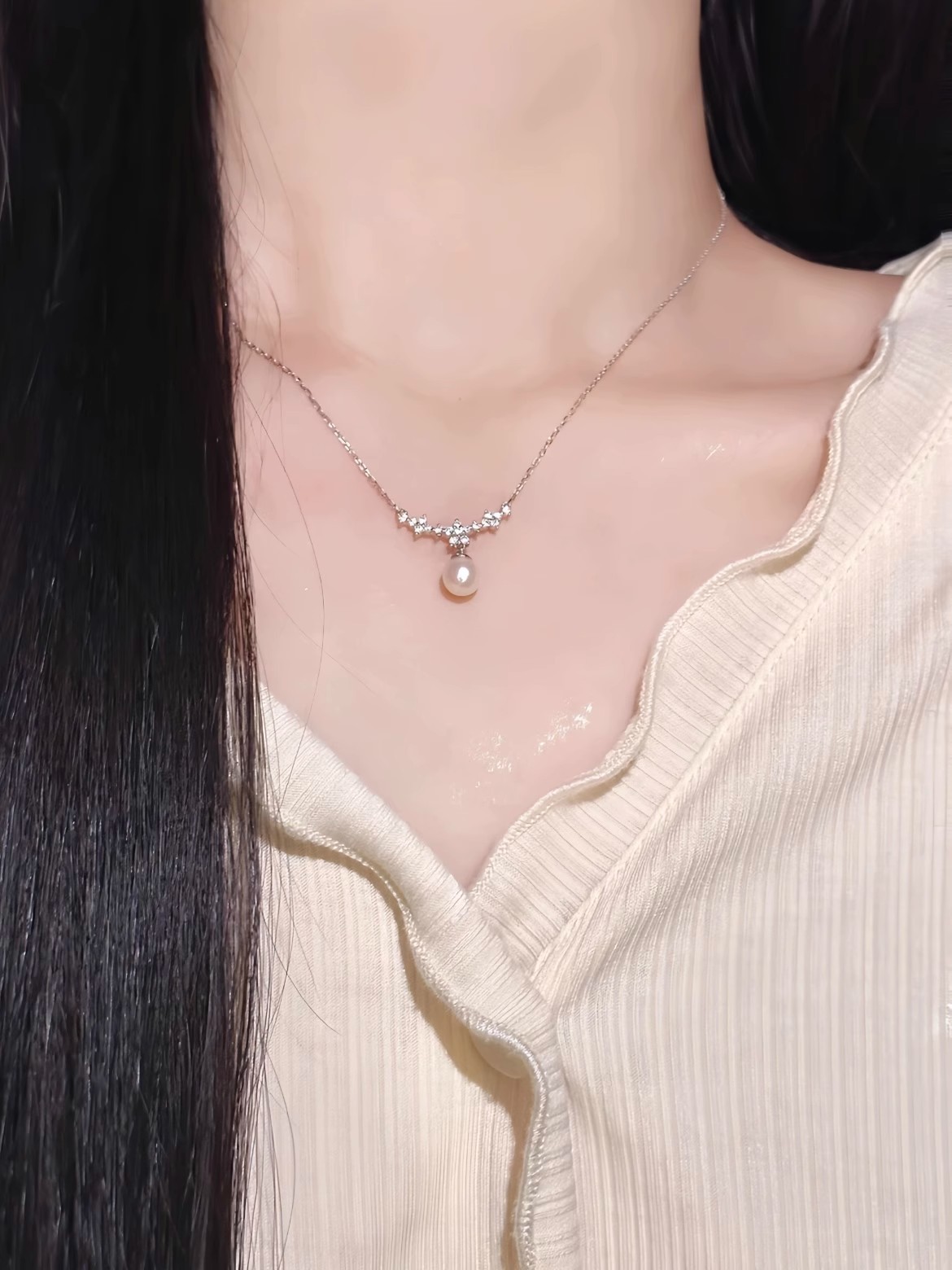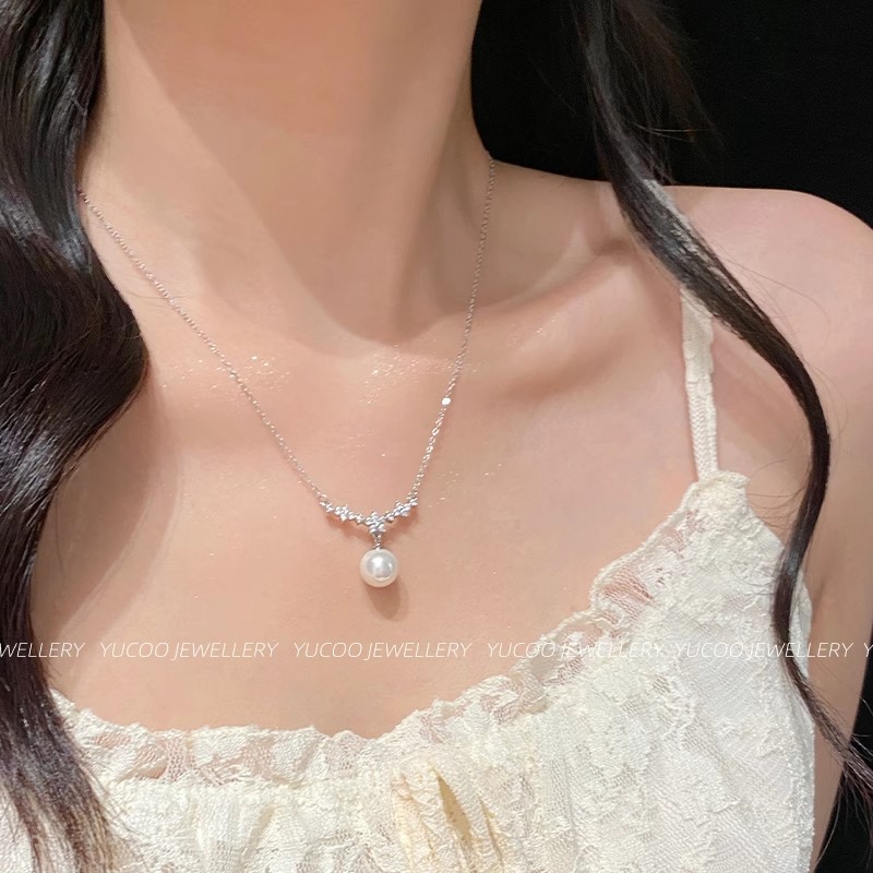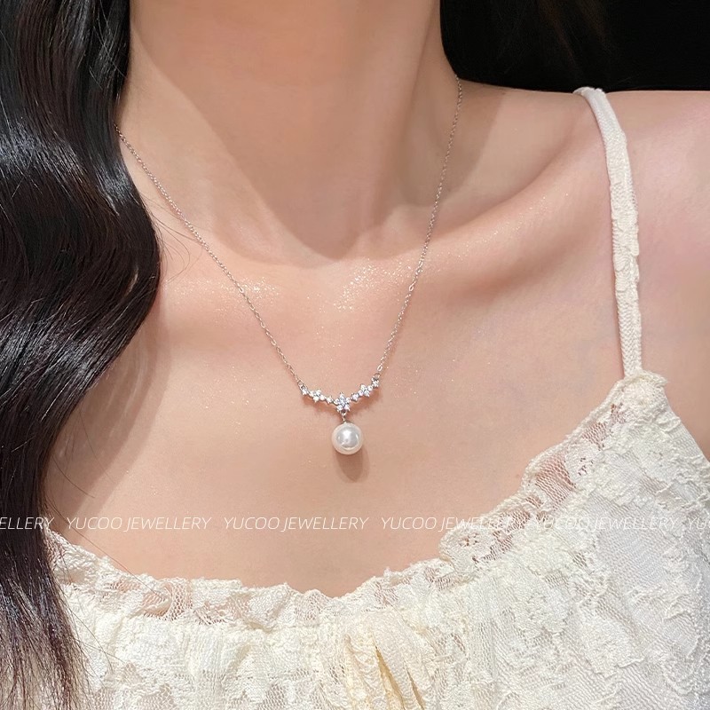 Titanium steel non-fading stars zircon pearl necklace women's light luxury niche clavicle chain high-end clavicle chain light luxury