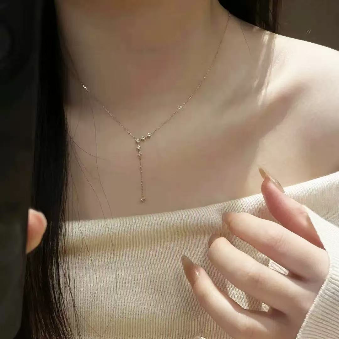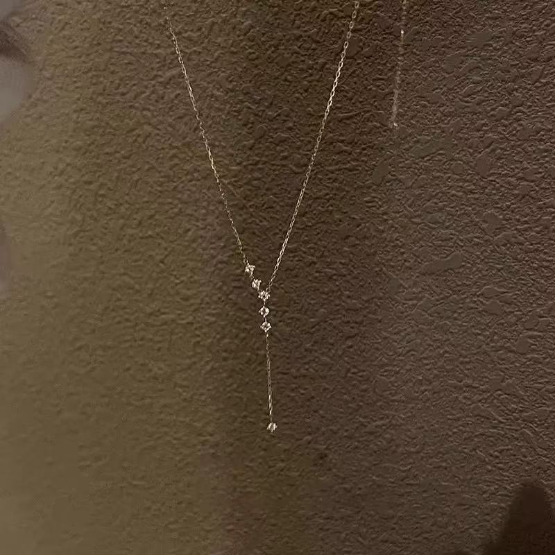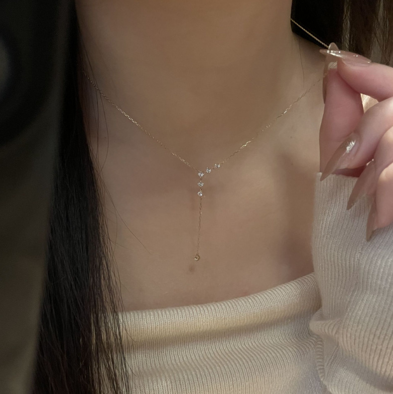 Xiaohongshu's Popular 2025 New Style Simple Ins Exquisite Cool Moonlight Flash Diamond Y-Shaped Tassel Necklace Women's Clavicle Chain