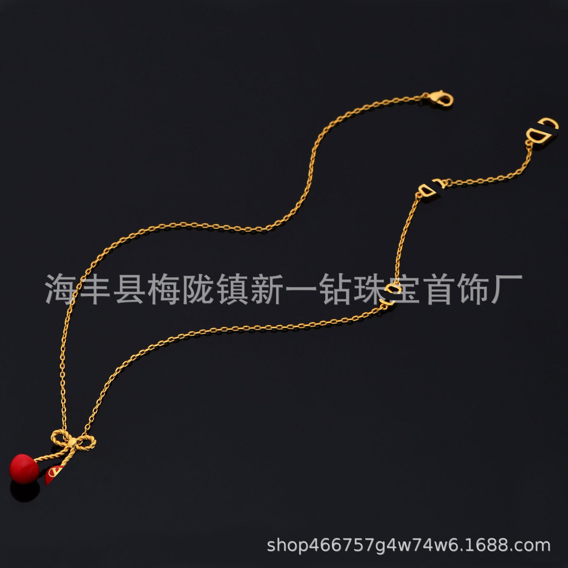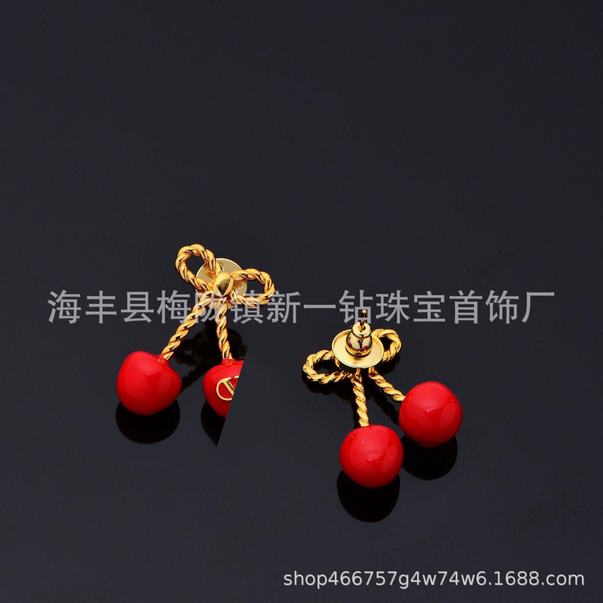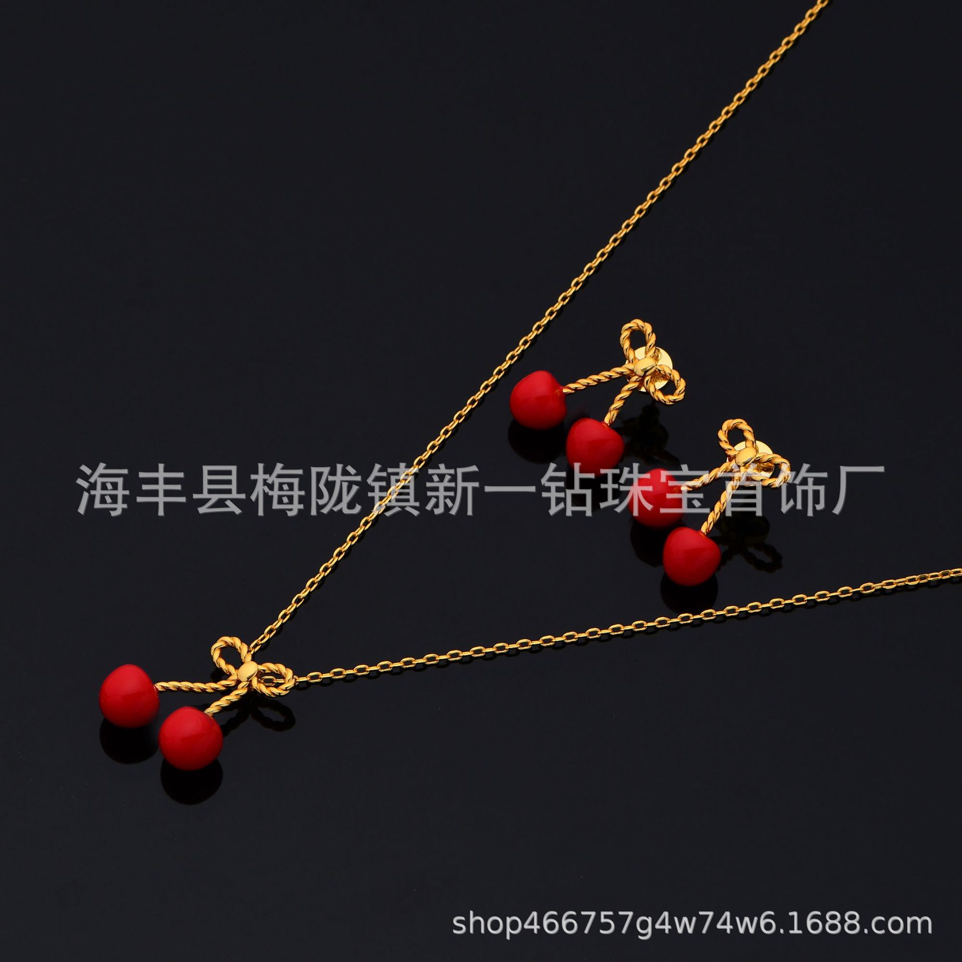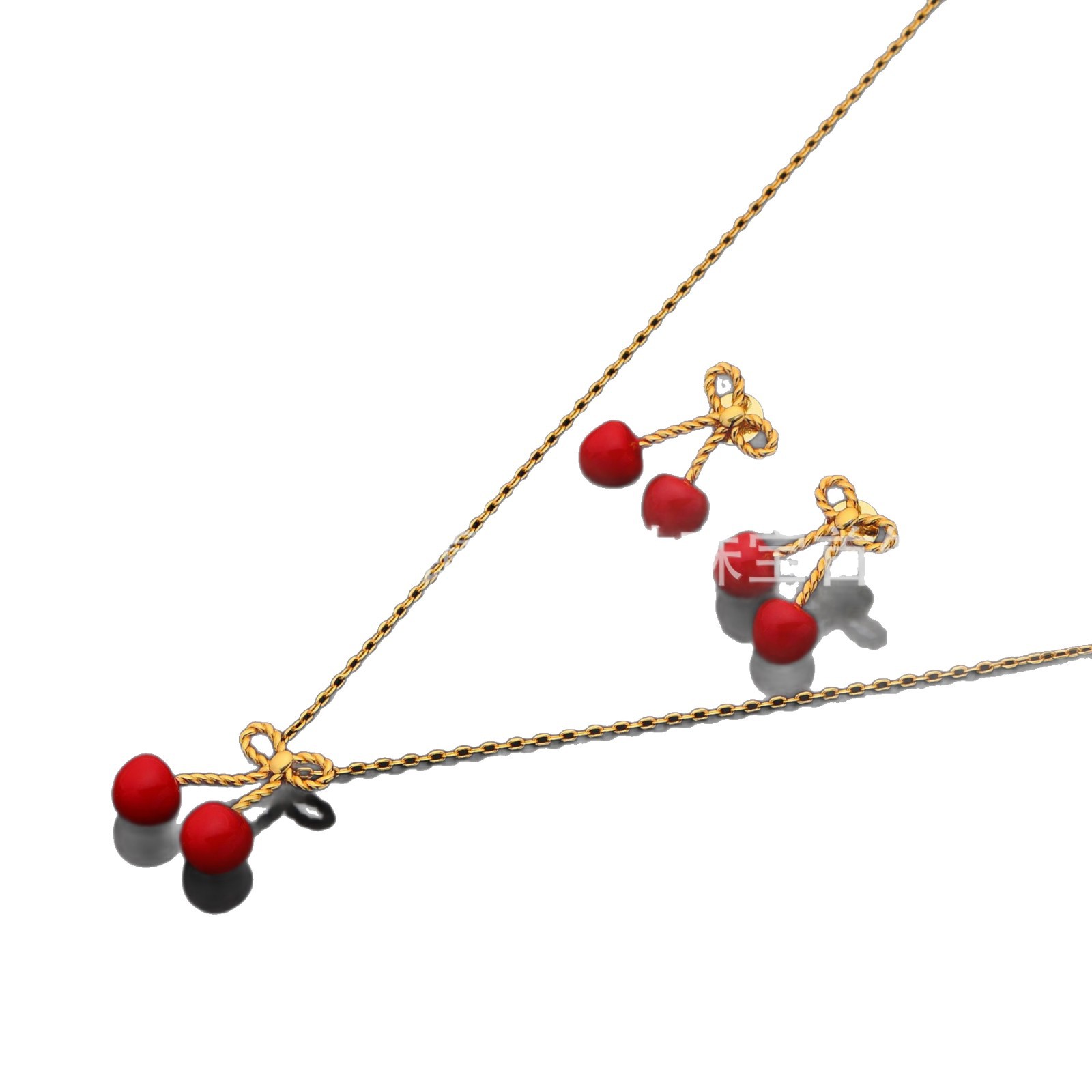 Warren Tianjia Simple Small Cherry New Necklace V-shaped Simple Explosions New Earrings suit Women Factory Outlet