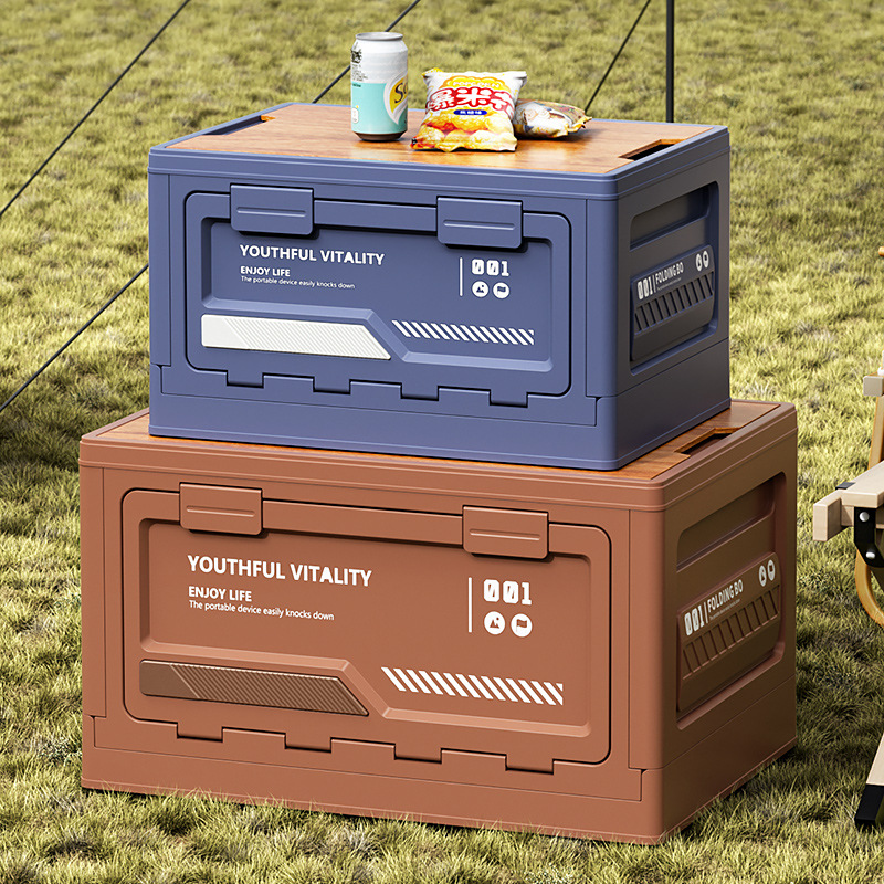 Outdoor Camping Storage Box Side Door Extra Large Camping Wooden Cover Folding Box Car Trunk Organizing Storage Box