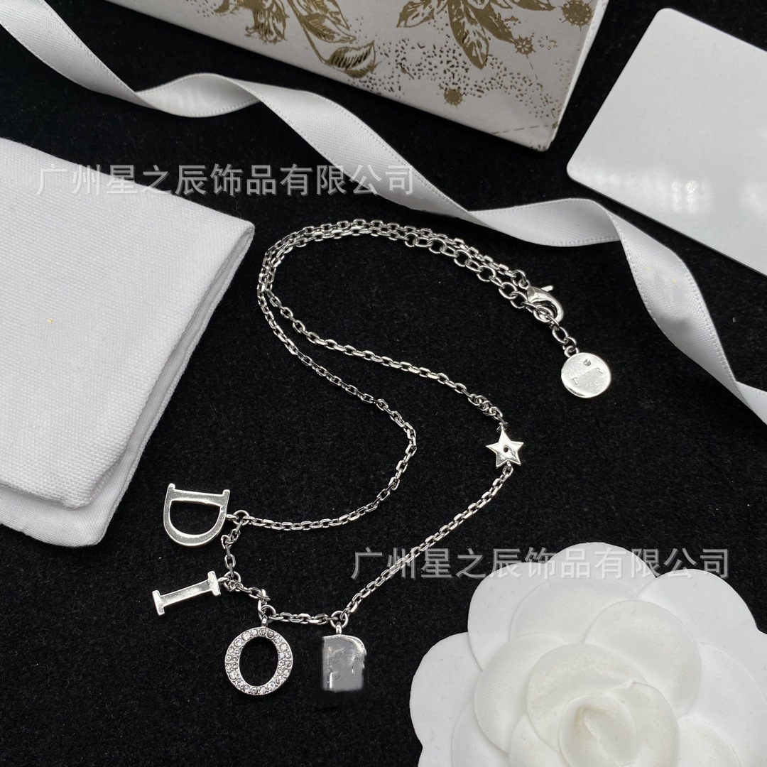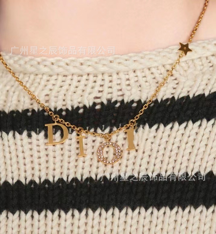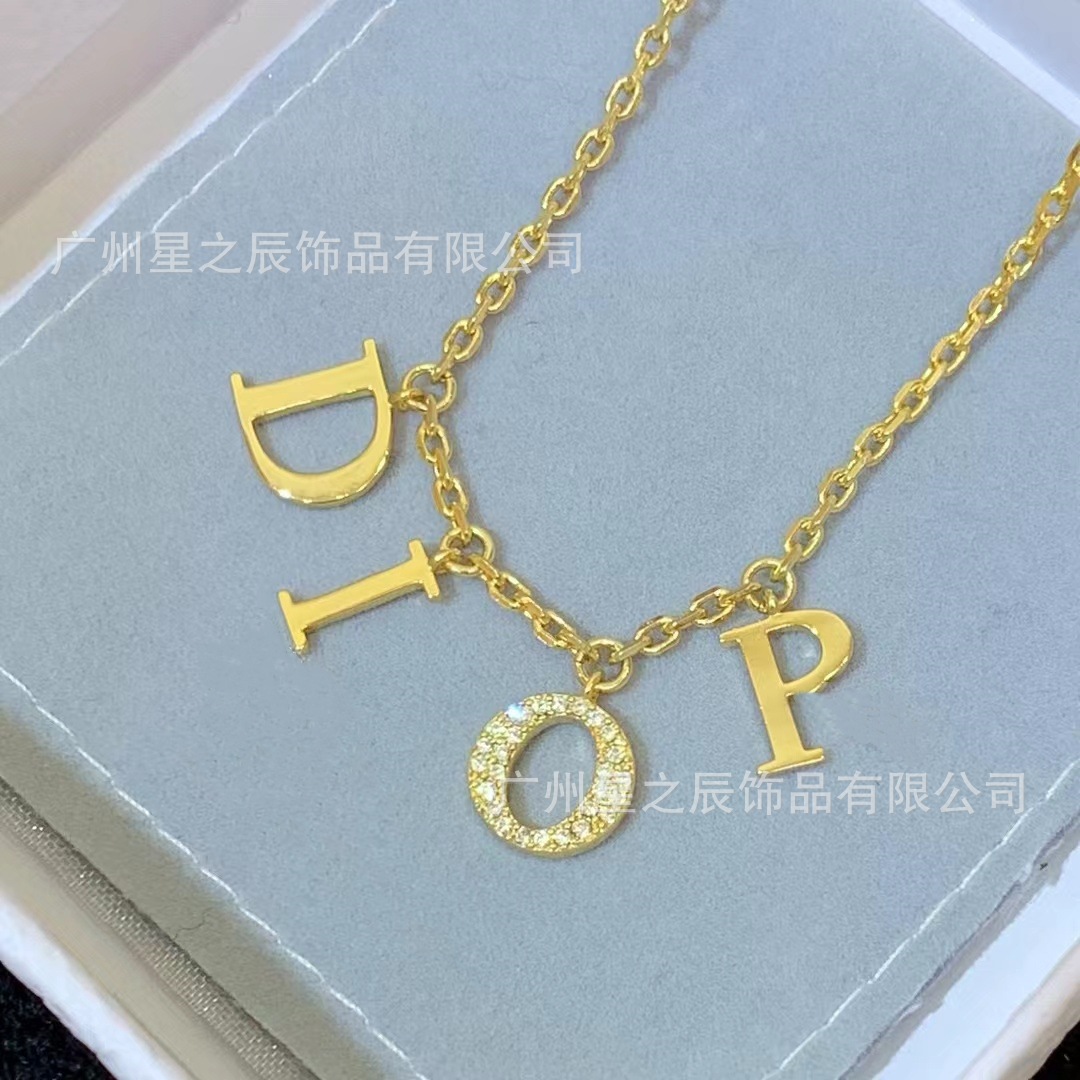 Real Shot of D-Brand Full Diamond O Letter Necklace for Women, Fashionable and Simple Collarbone Chain, Factory Wholesale
