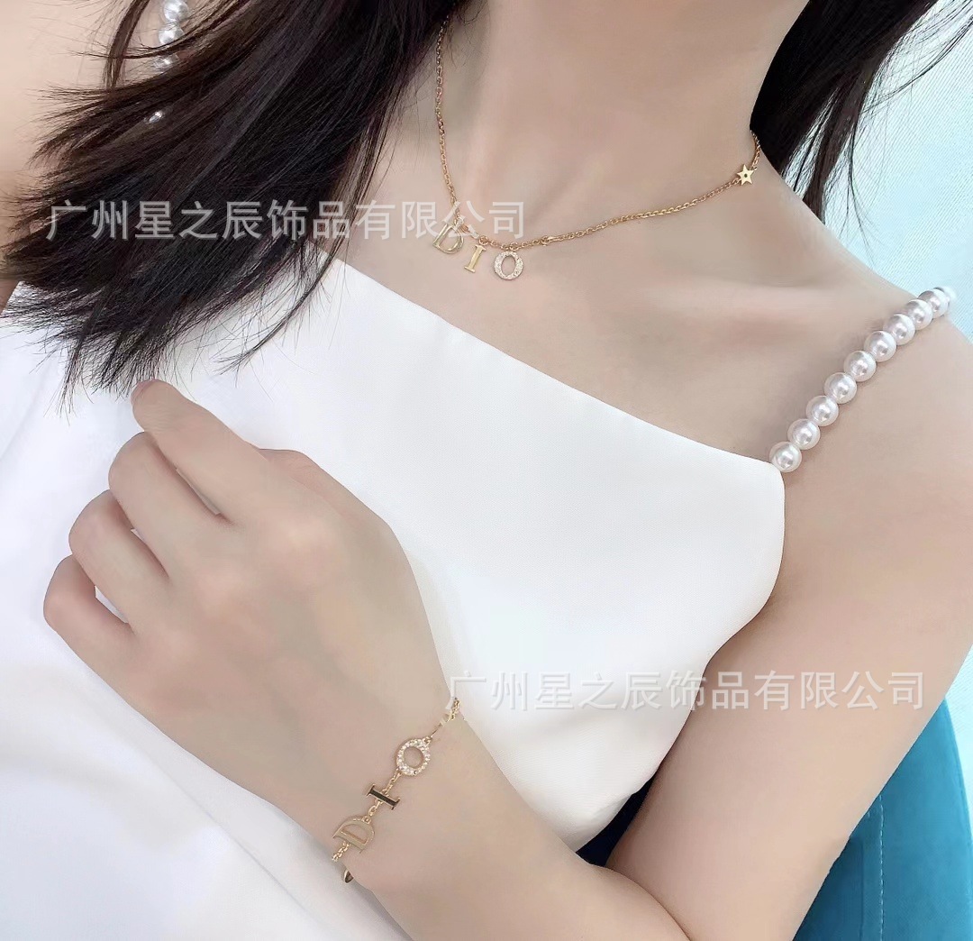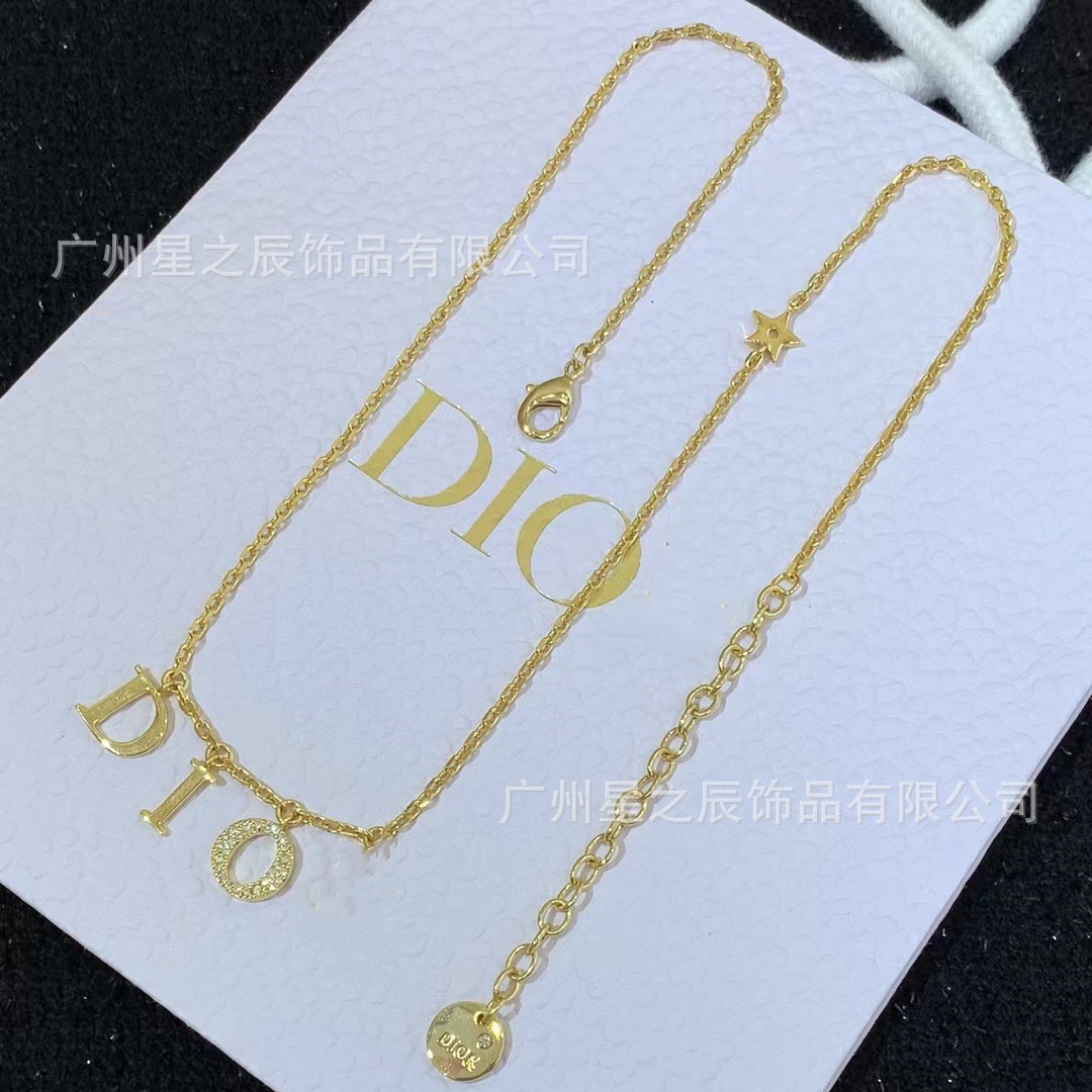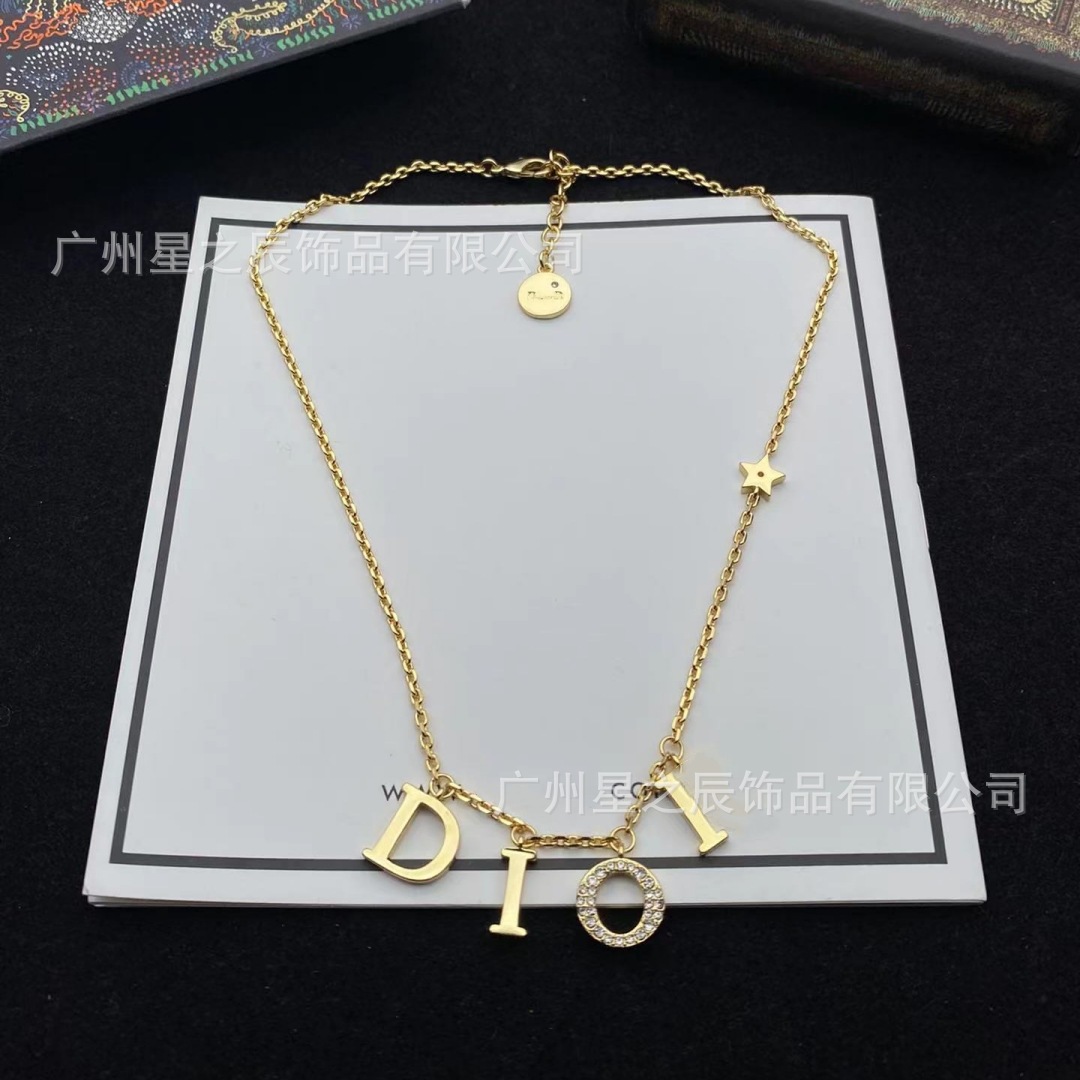 Real Shot of D-Brand Full Diamond O Letter Necklace for Women, Fashionable and Simple Collarbone Chain, Factory Wholesale