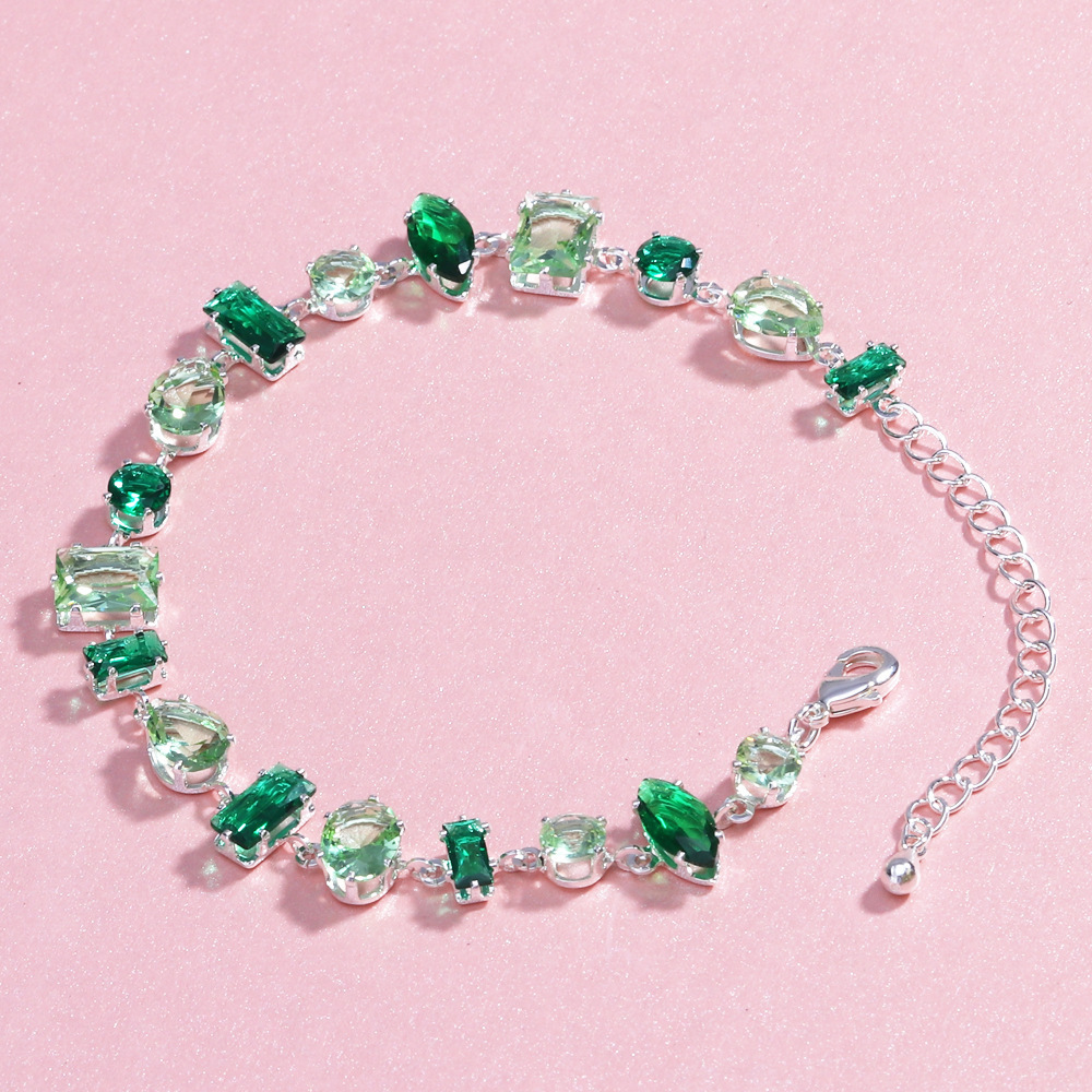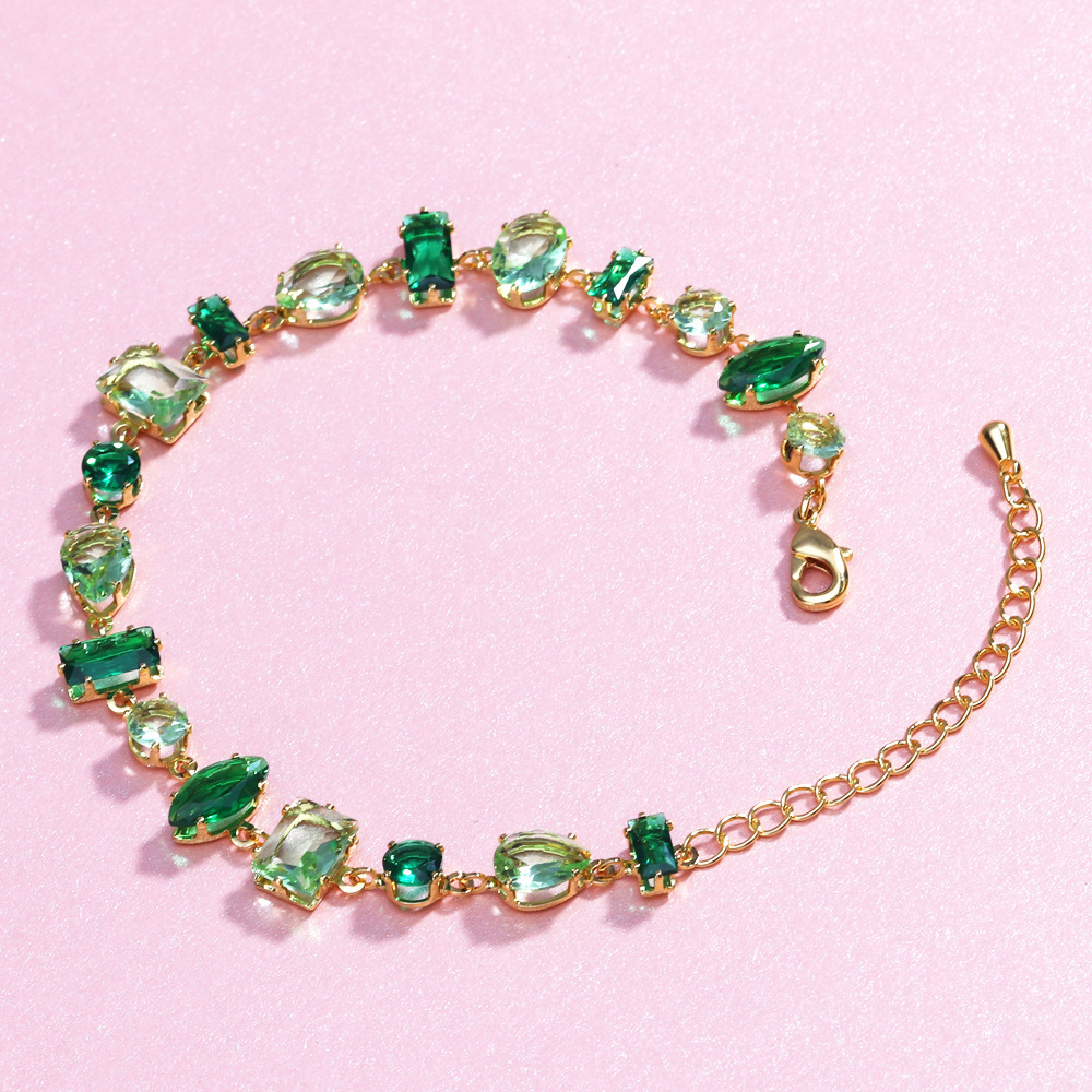 Colorful Cute 2025 Spring and Summer Small Candy Zircon Cross Border Green Bracelet Instagram Style Bracelet Fashion Clear