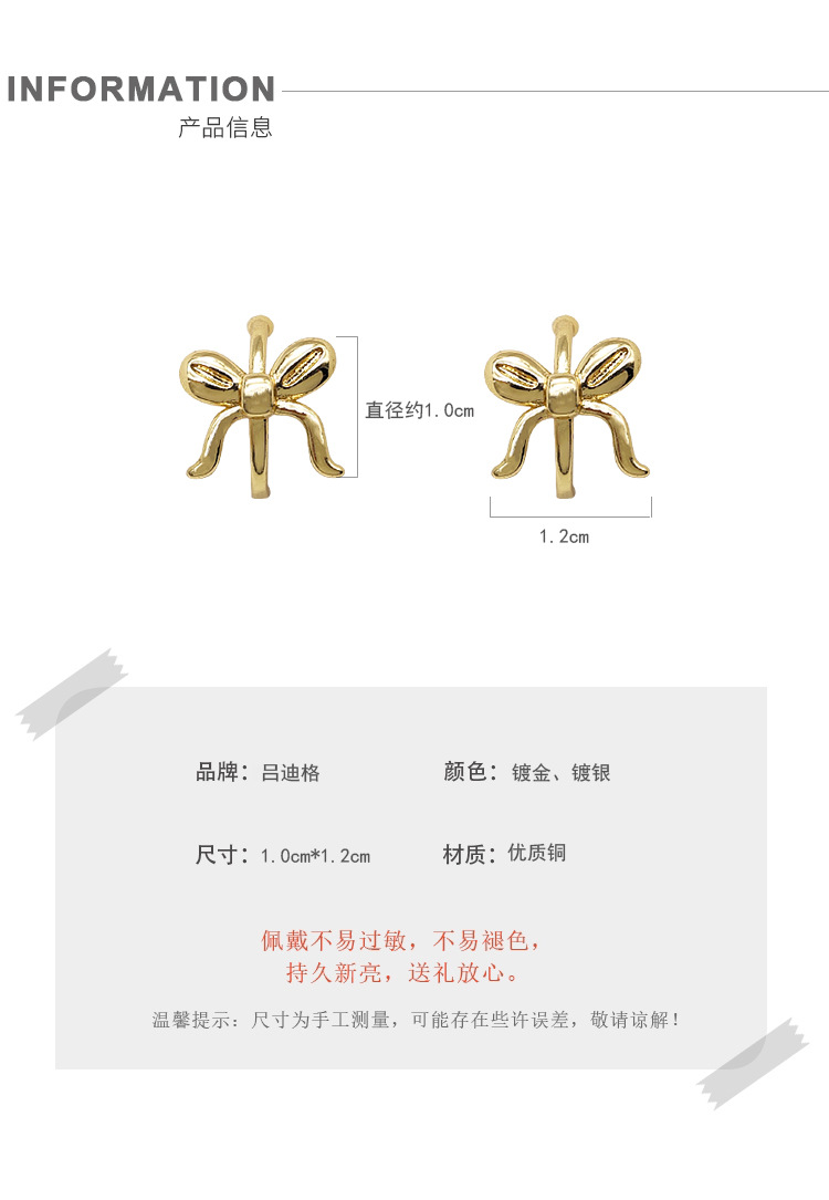 New Women's Versatile All-In-One Bow Mosquito Coil Ear Clip Japanese and Korean Design Earrings Simple Ear Jewelry Wholesale
