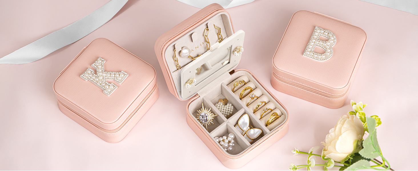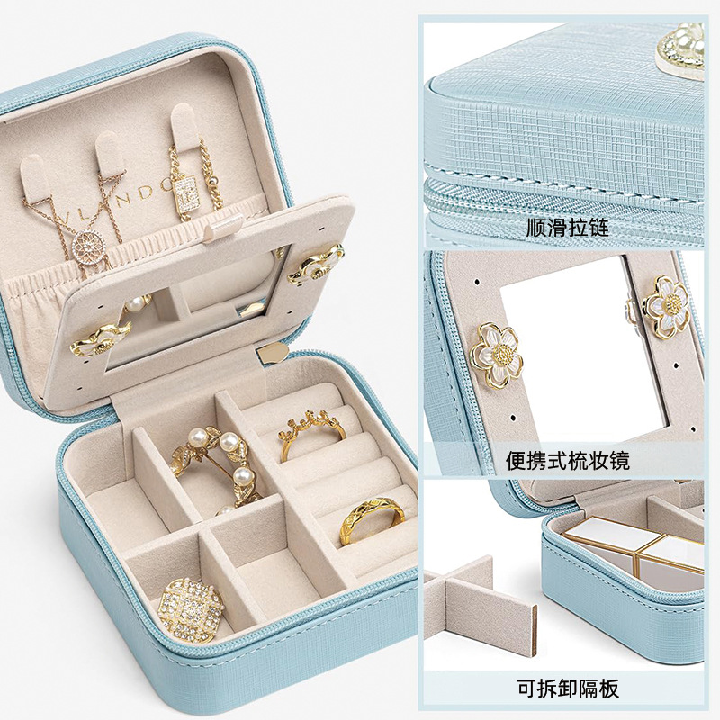 Factory Customized Cross-border Portable Simple Jewelry Box Earrings Ring Jewelry Storage Box Velvet Jewelry Packaging Box