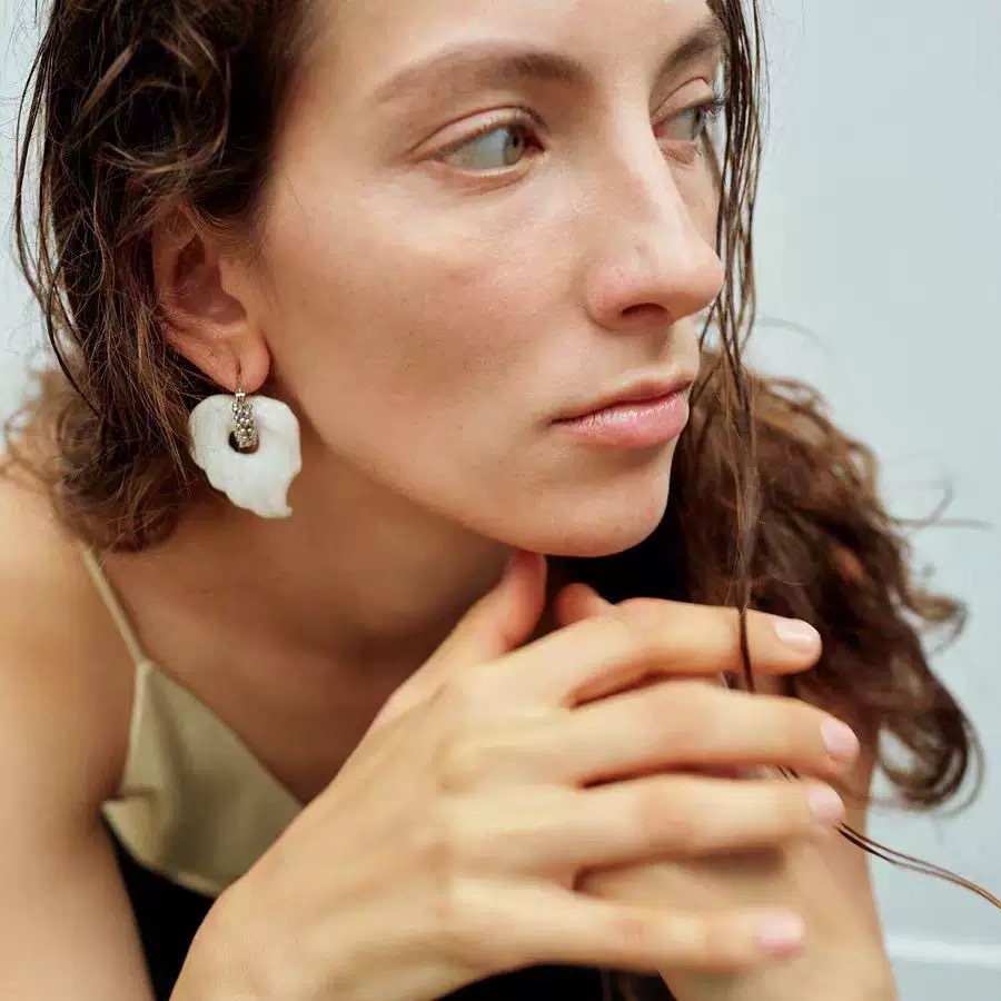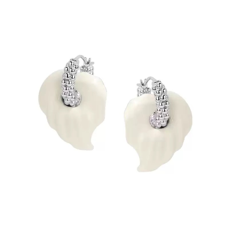Dong Jie's White Enamel Goose Palm Leaf Blooming Earrings Niche Design High-end Fashionable Elegant All-match Earrings