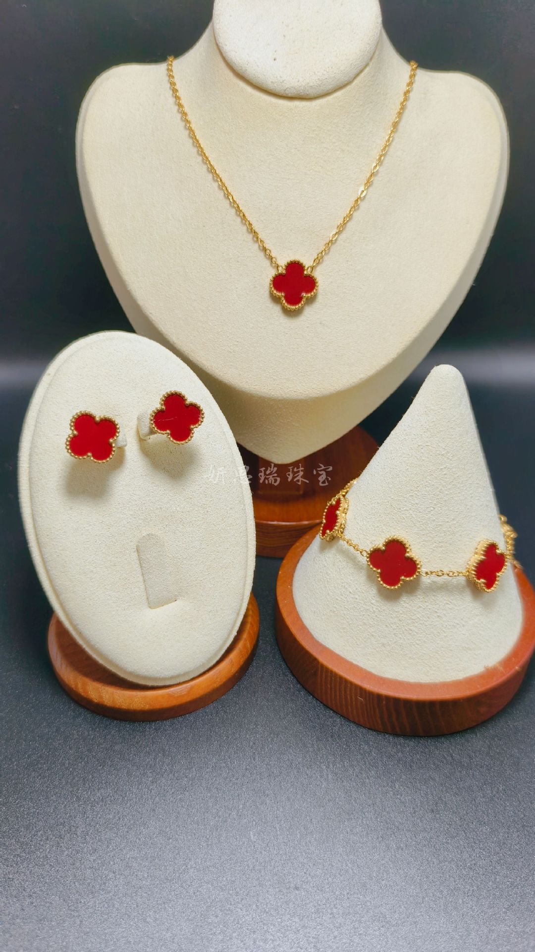 Popular Clover 15mm Double-Sided Groove Mother-Of-Pearl 18K Titanium Steel Jewelry Set Necklace Bracelet Earrings Versatile